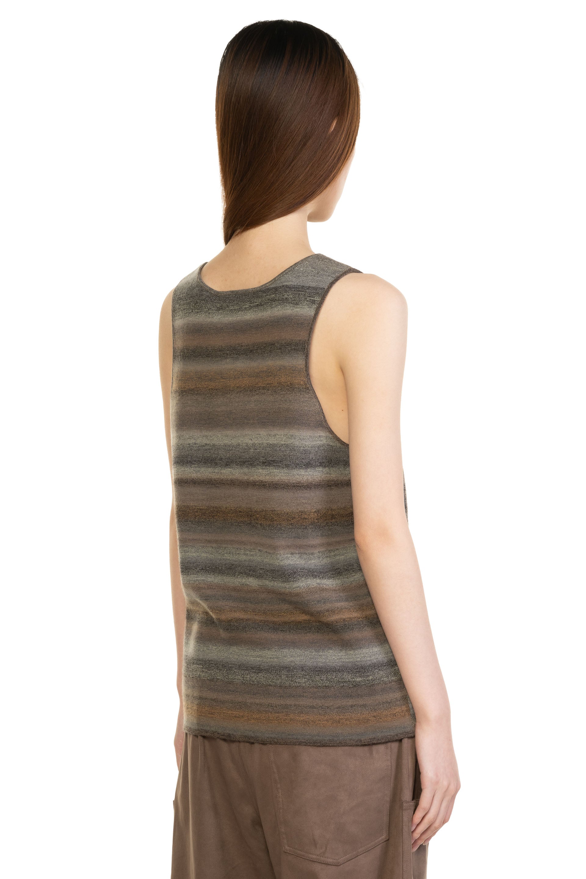 Swaying/knit Striped Wool Vest in Grey Brown. Sleeveless. Blurred stripes design. Soft knitted fabric.
