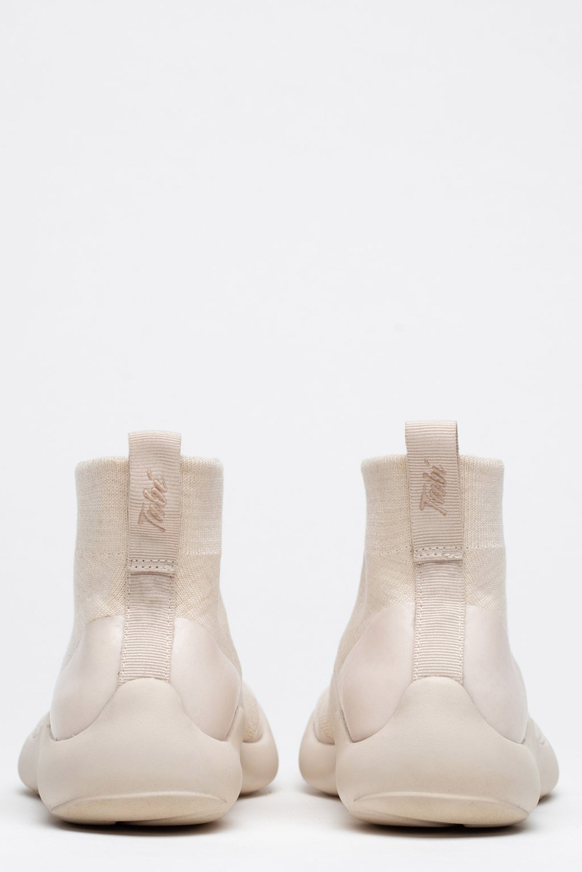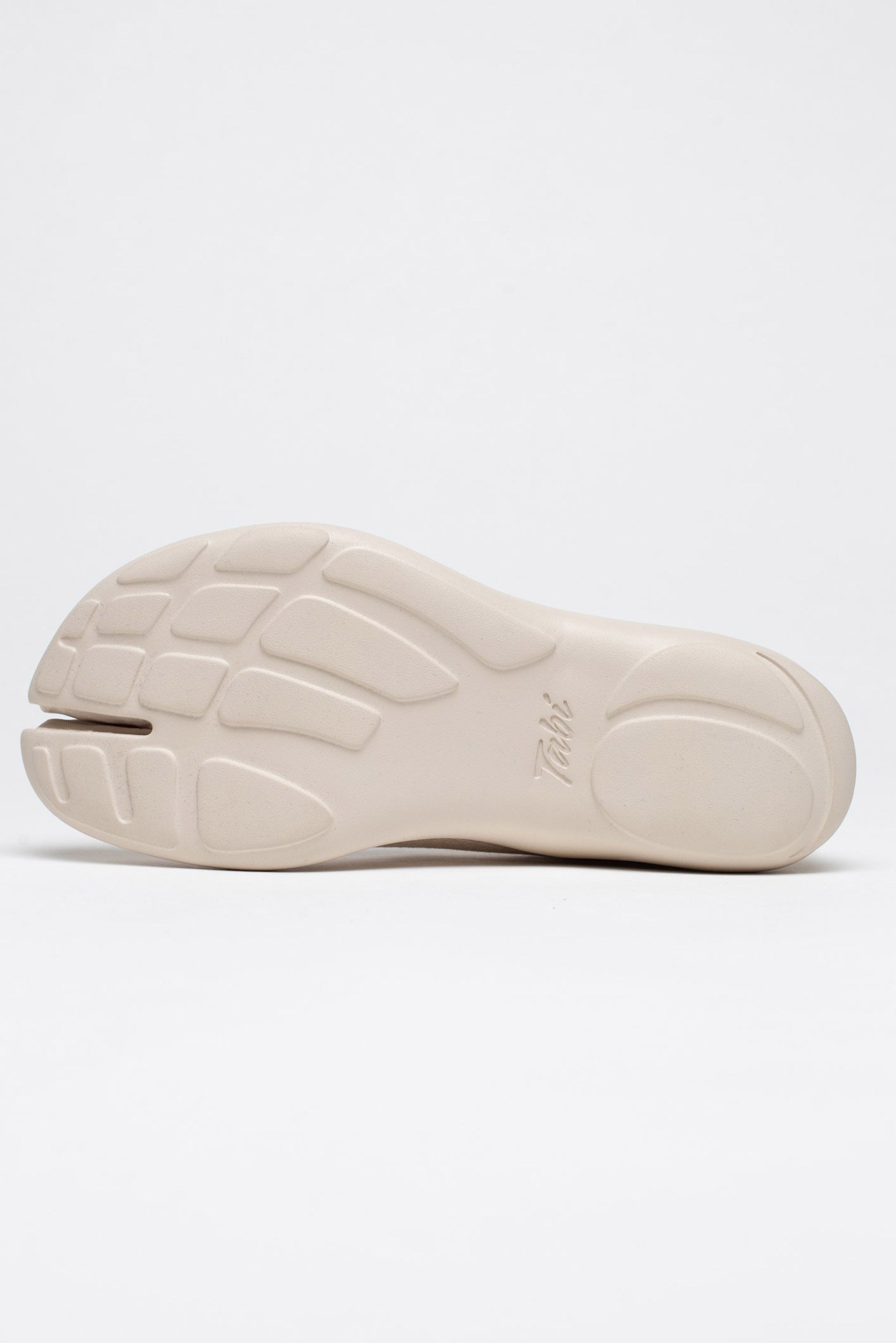 Tabi shoes feature a split between the big toe and the rest of the toes to promote balance and stability. Tabi hightop features comfortable textile upper with rubberised logo on the heel. Tabi uppers are made from Tencel Flyknit (tree fibres). Tabi injection EVA outsole are made of sugar cane. Tabi insoles are made from algae-based EVA foam.
