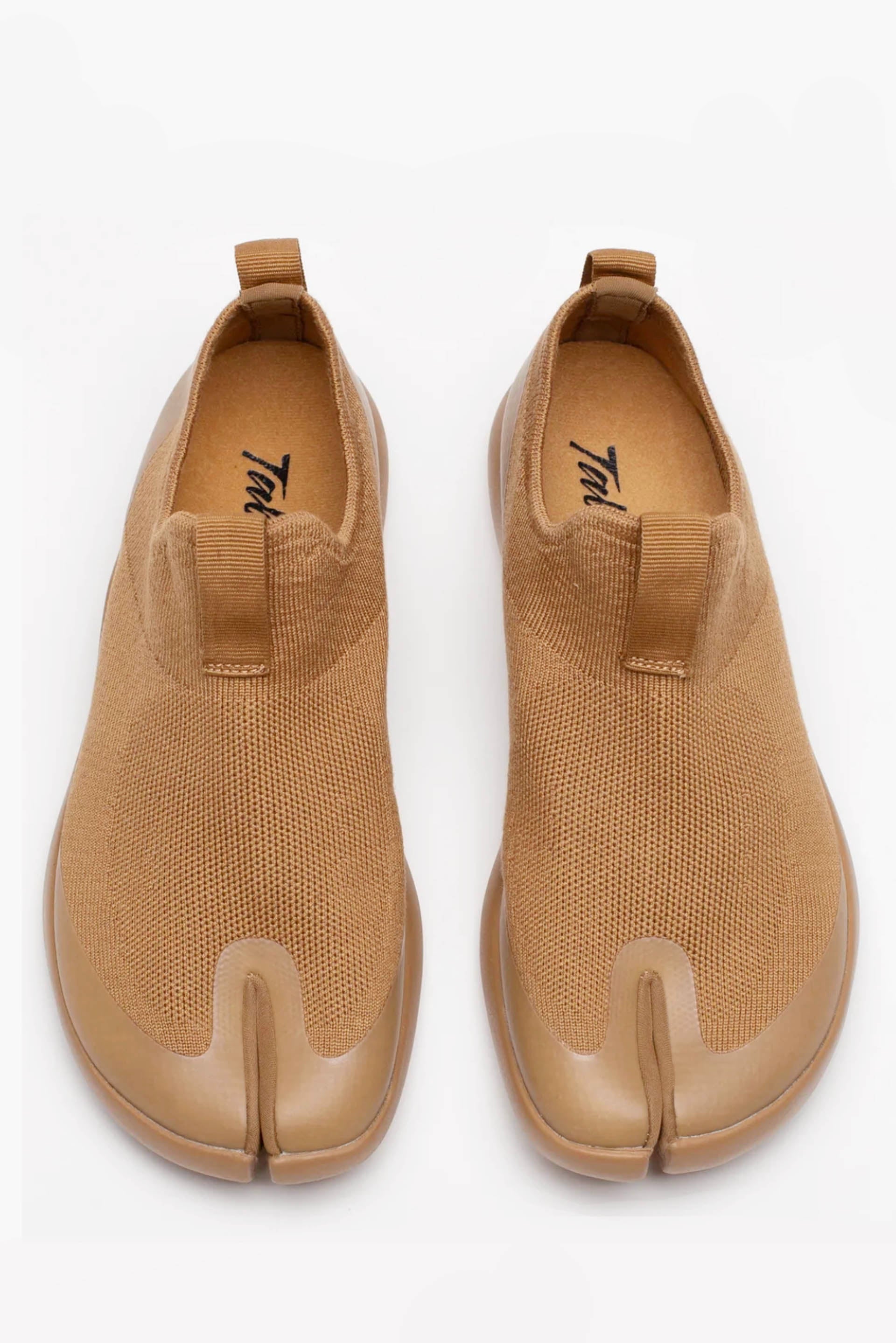 Tabi Footwear is a sustainable footwear brand finding new uses for materials that exist right in front of us. A concept of a split-toe shoe for natural movement of the feet. Tabi allows you to step more mindfully by sensing the ground you walk on as seen with the Tabi Shoe Brown.