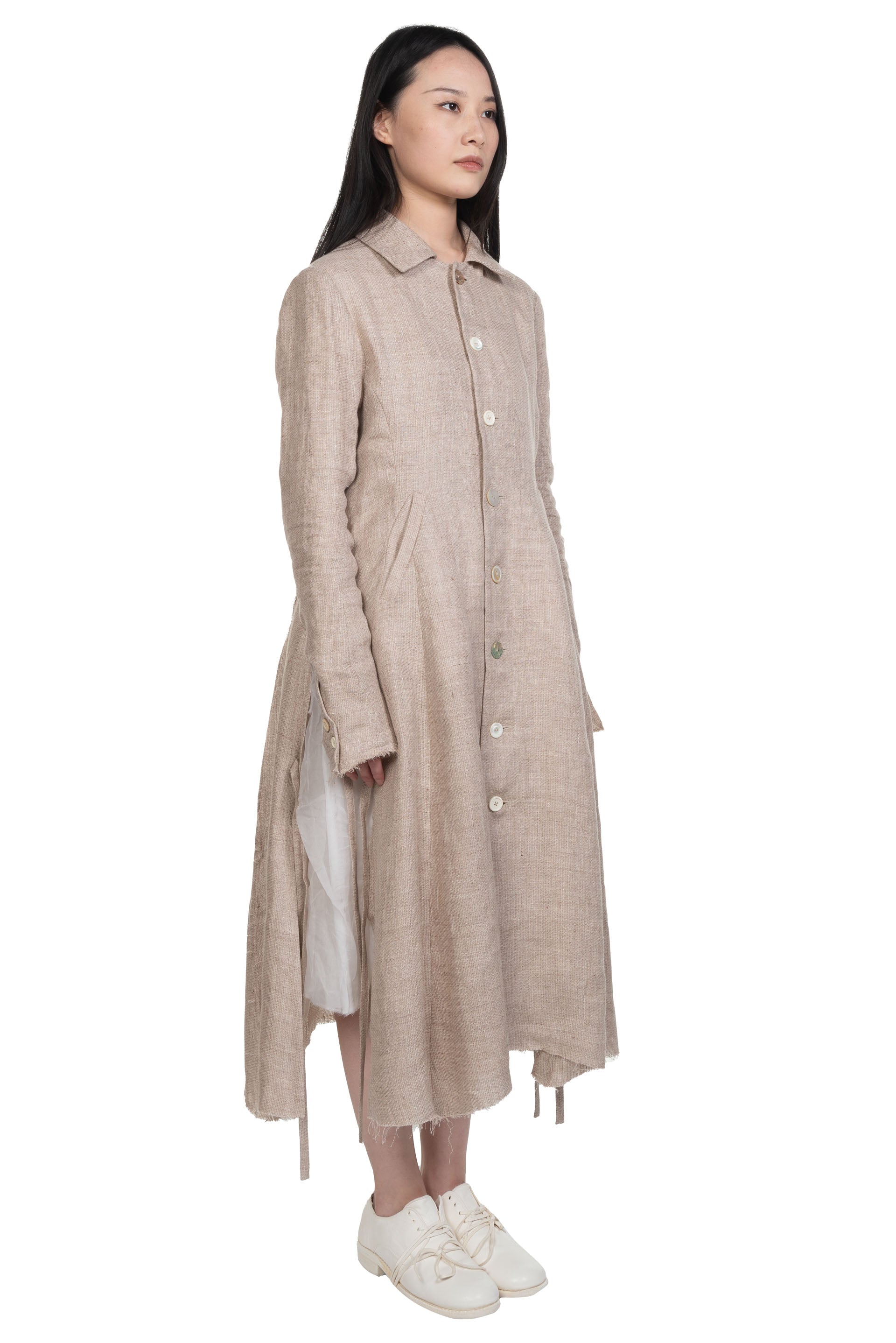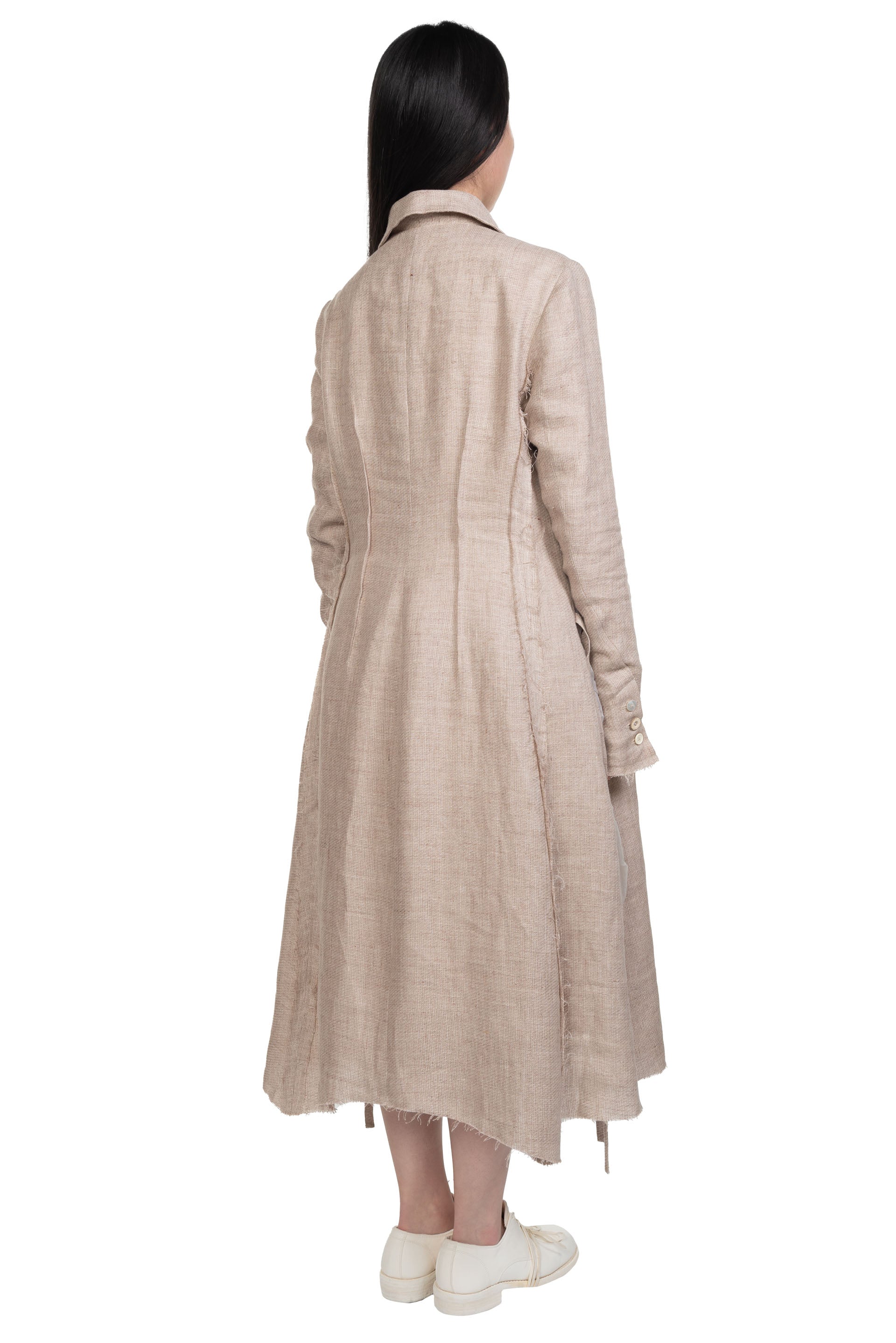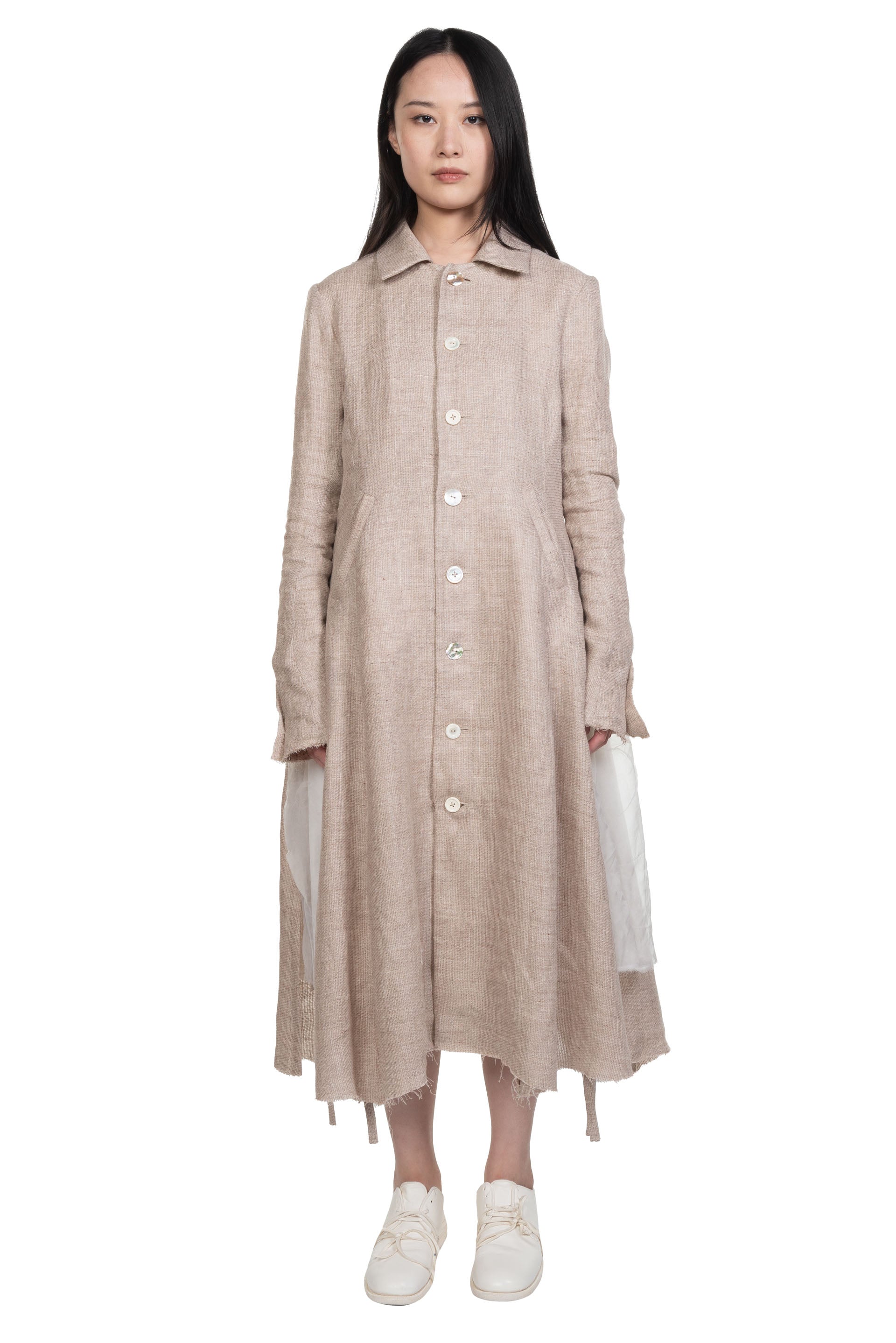 A Tentative Atelier aims to explore artistic handicraft elements and innovative forms and silhouettes on garments combining with neo-vintage effect. The label does not only focus on fashion, it is a platform to encourage and sustain the spirit and tradition in craftsmanship to create new form as seen with the Tailored Floral Coat.