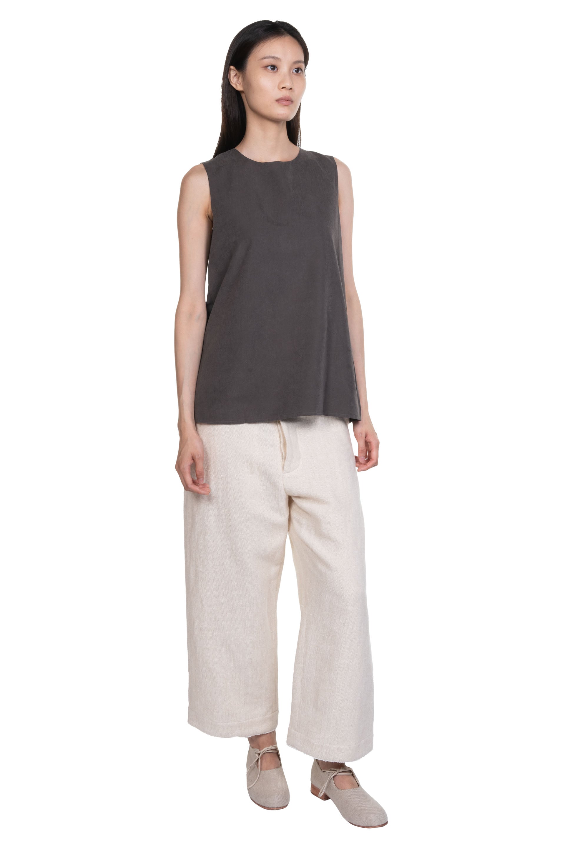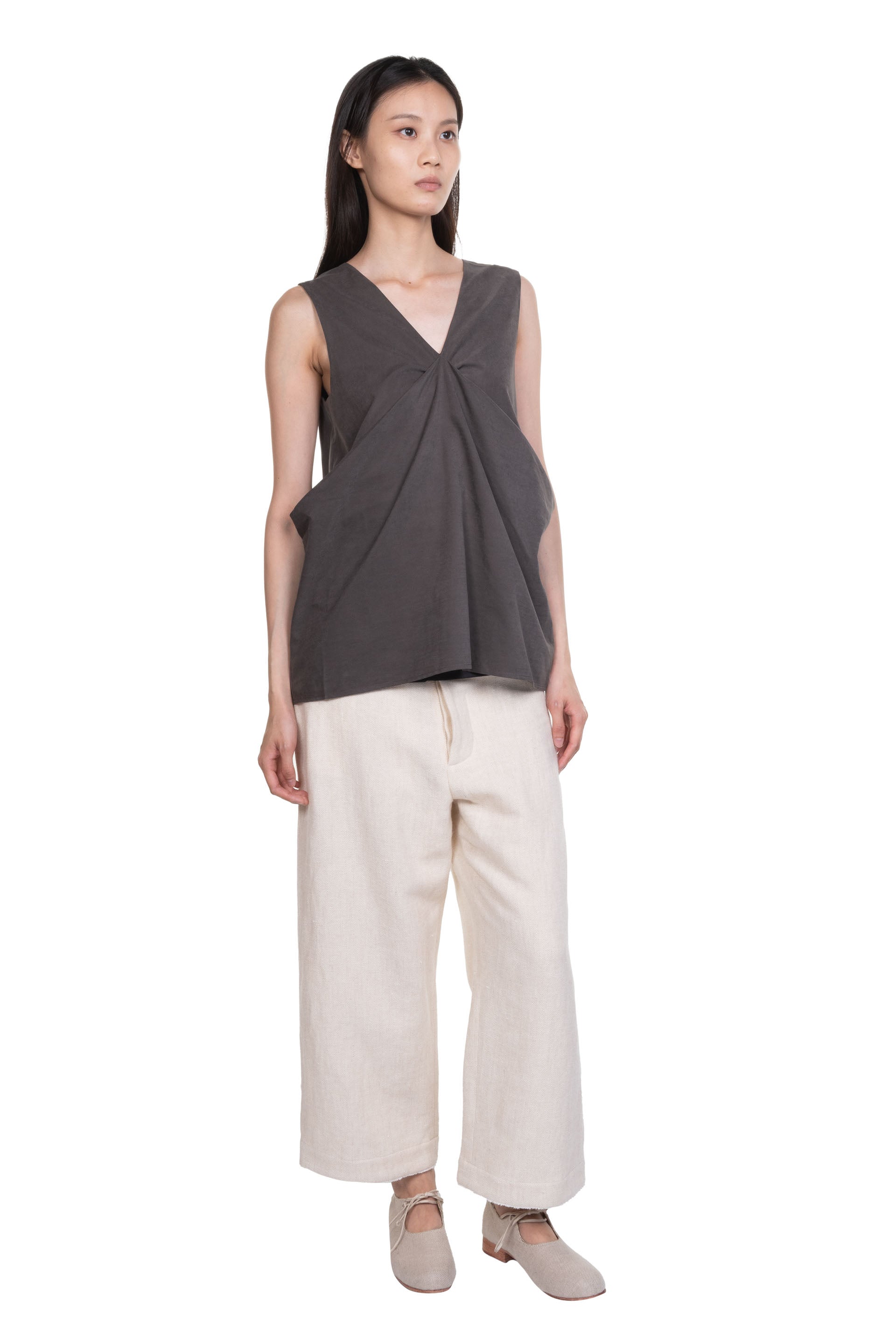 ii delivers a sense of originality, simplicity, spontaneity and a hint of childlike innocence pushing boundaries among ages to present qualitative collections with timeless touches designed for independent individuals as seen with the Taupe Drapery Top.