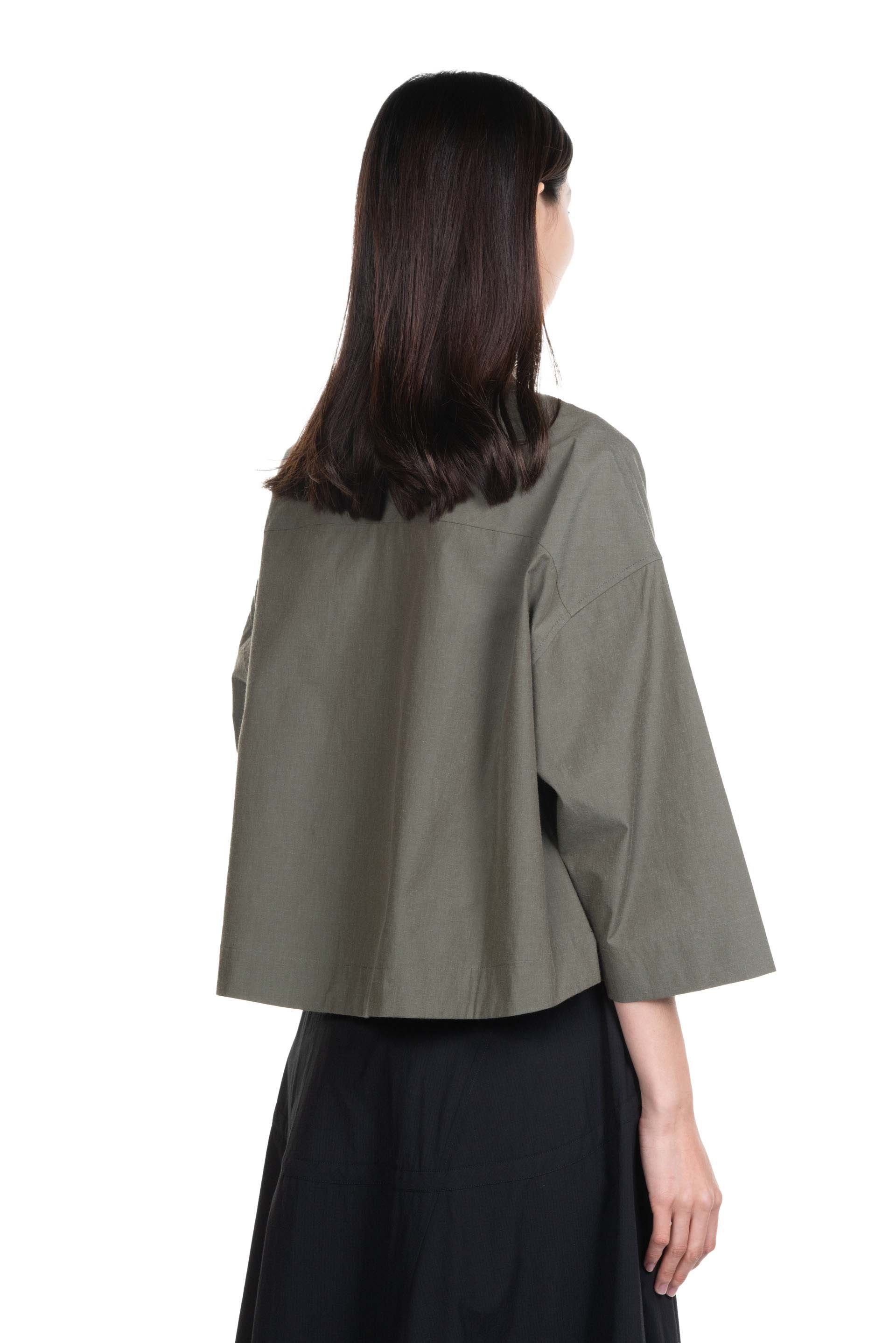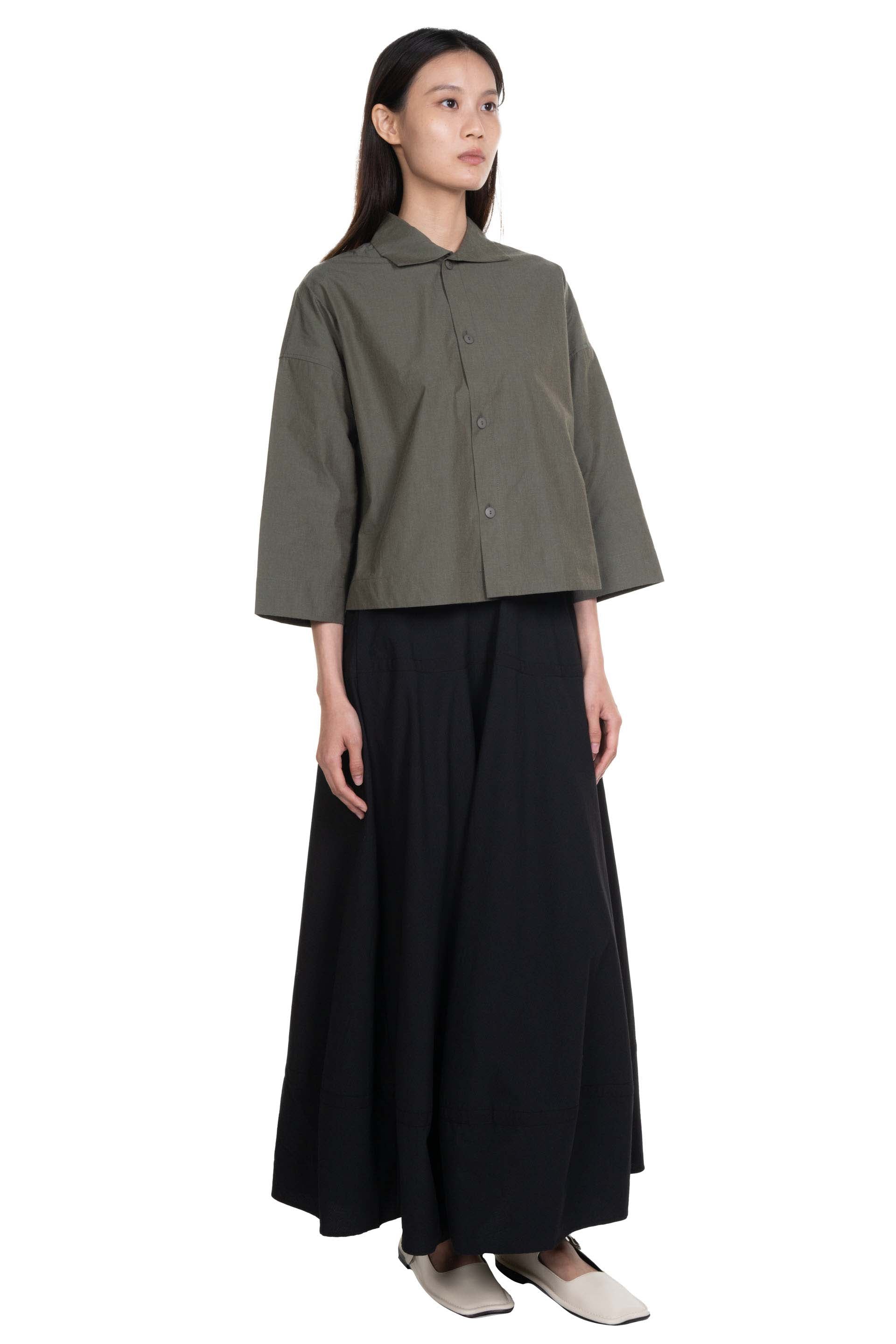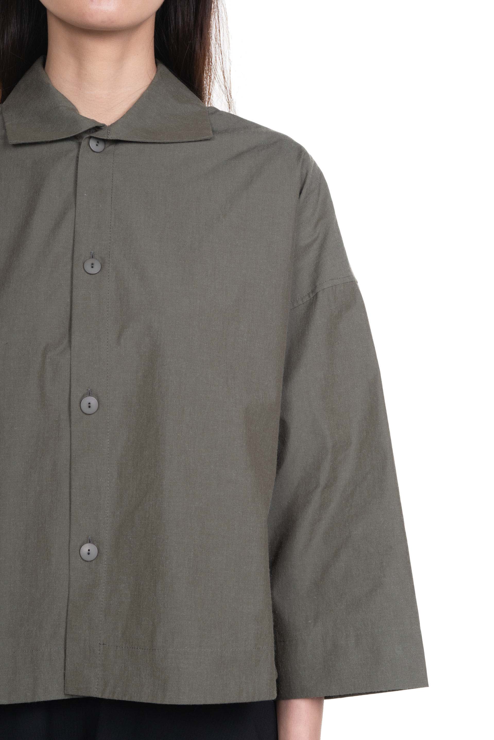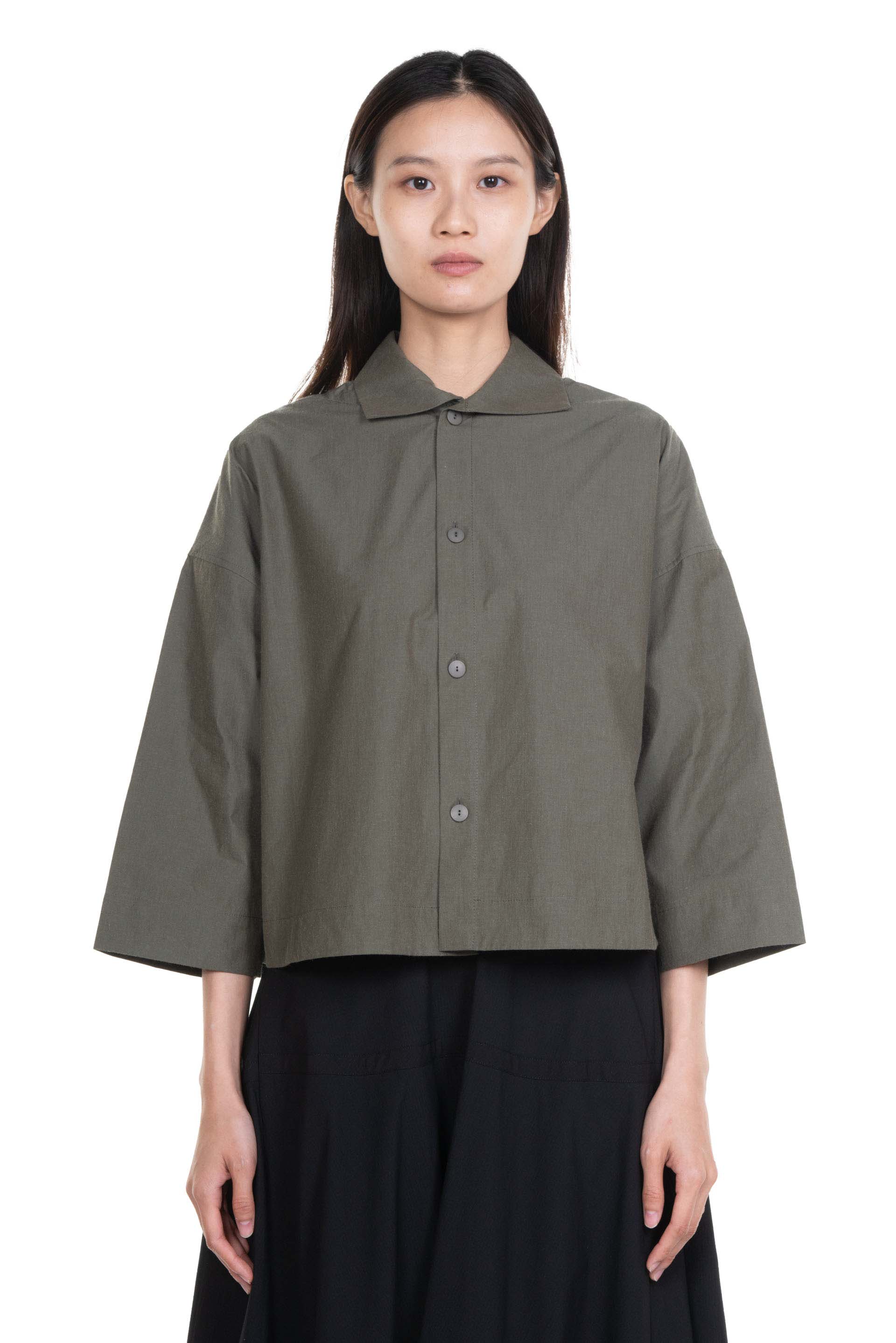 Toogood Camper shirt. Three quarter length sleeves. Button closure at front. Cropped and boxy fit. Classic collar.