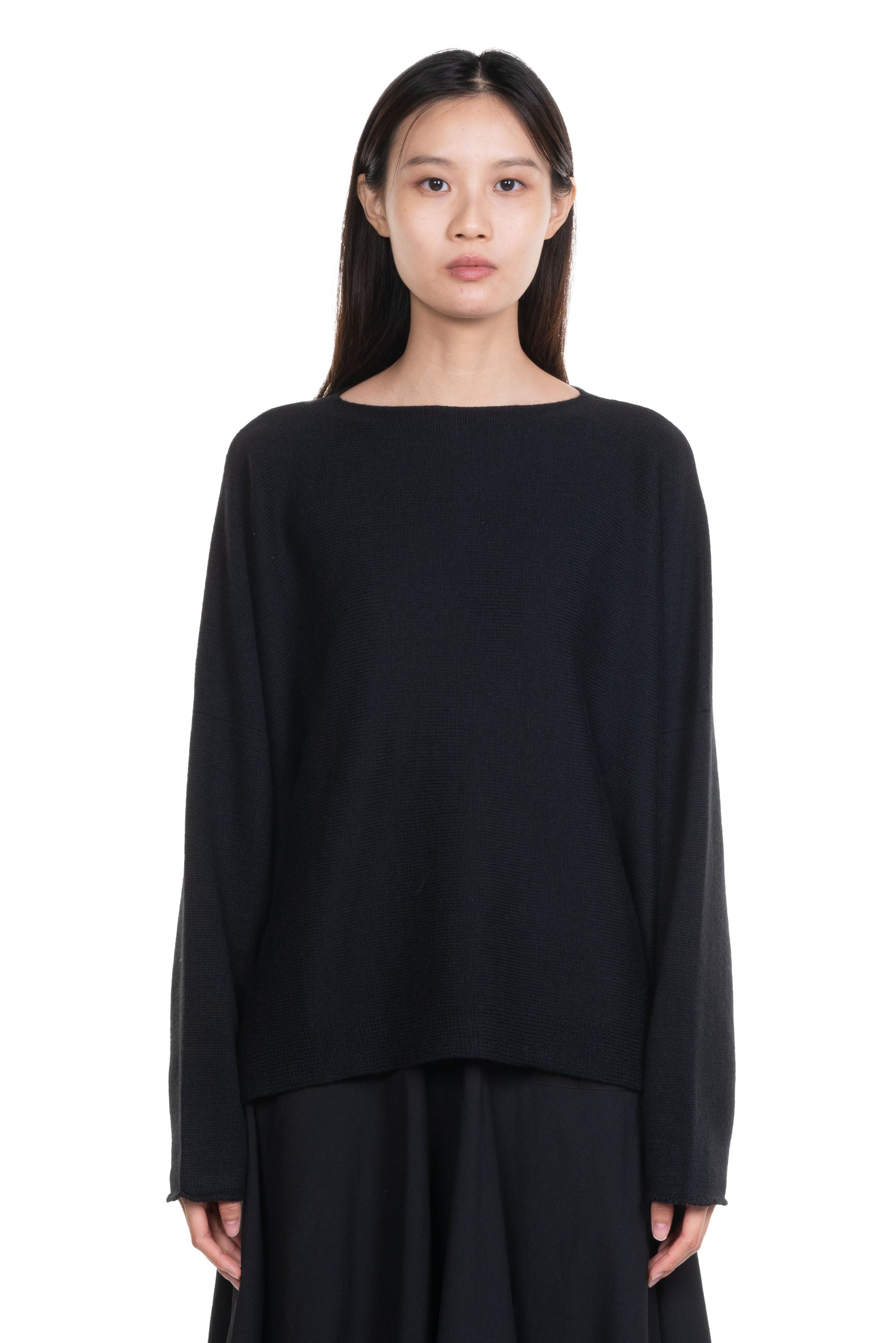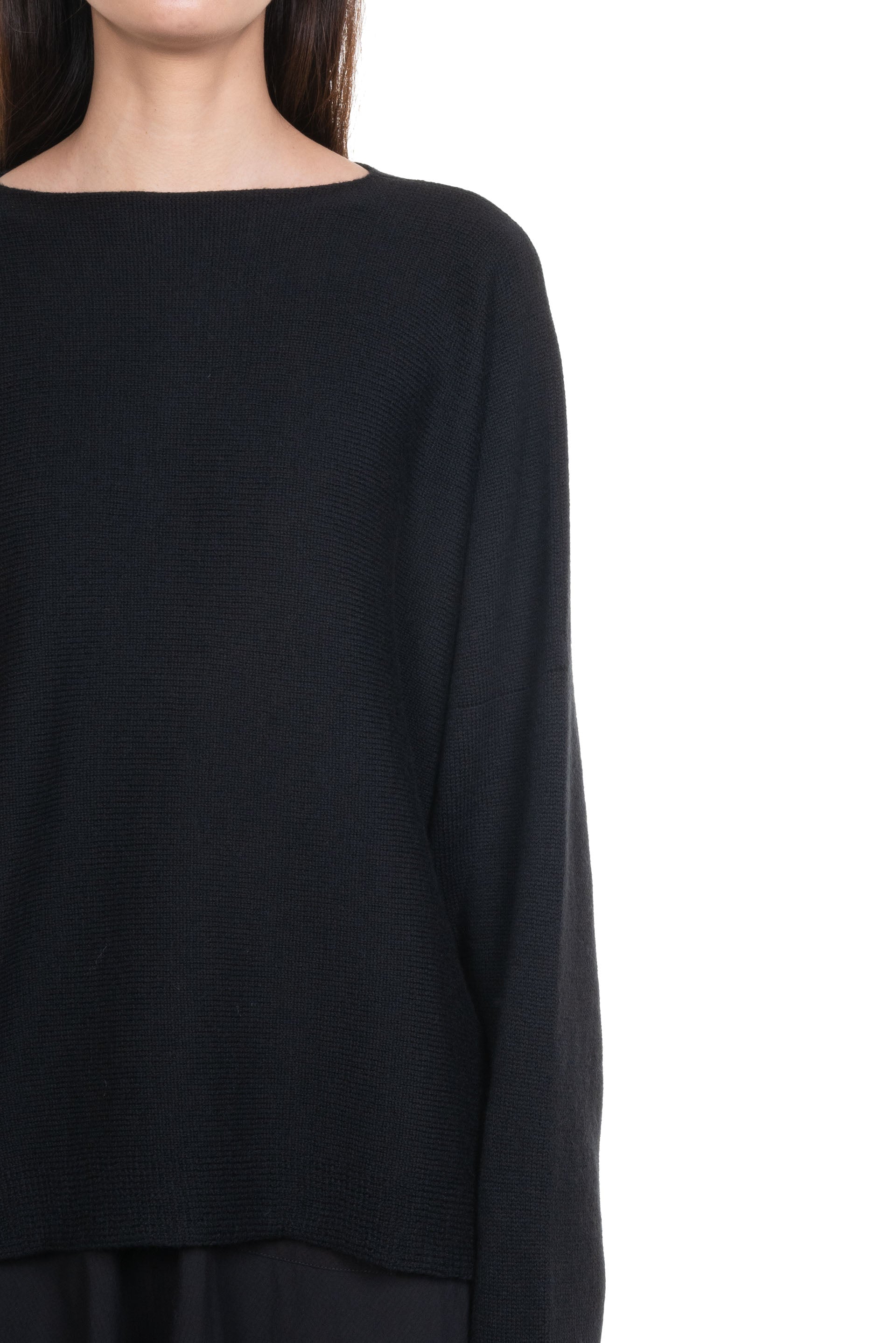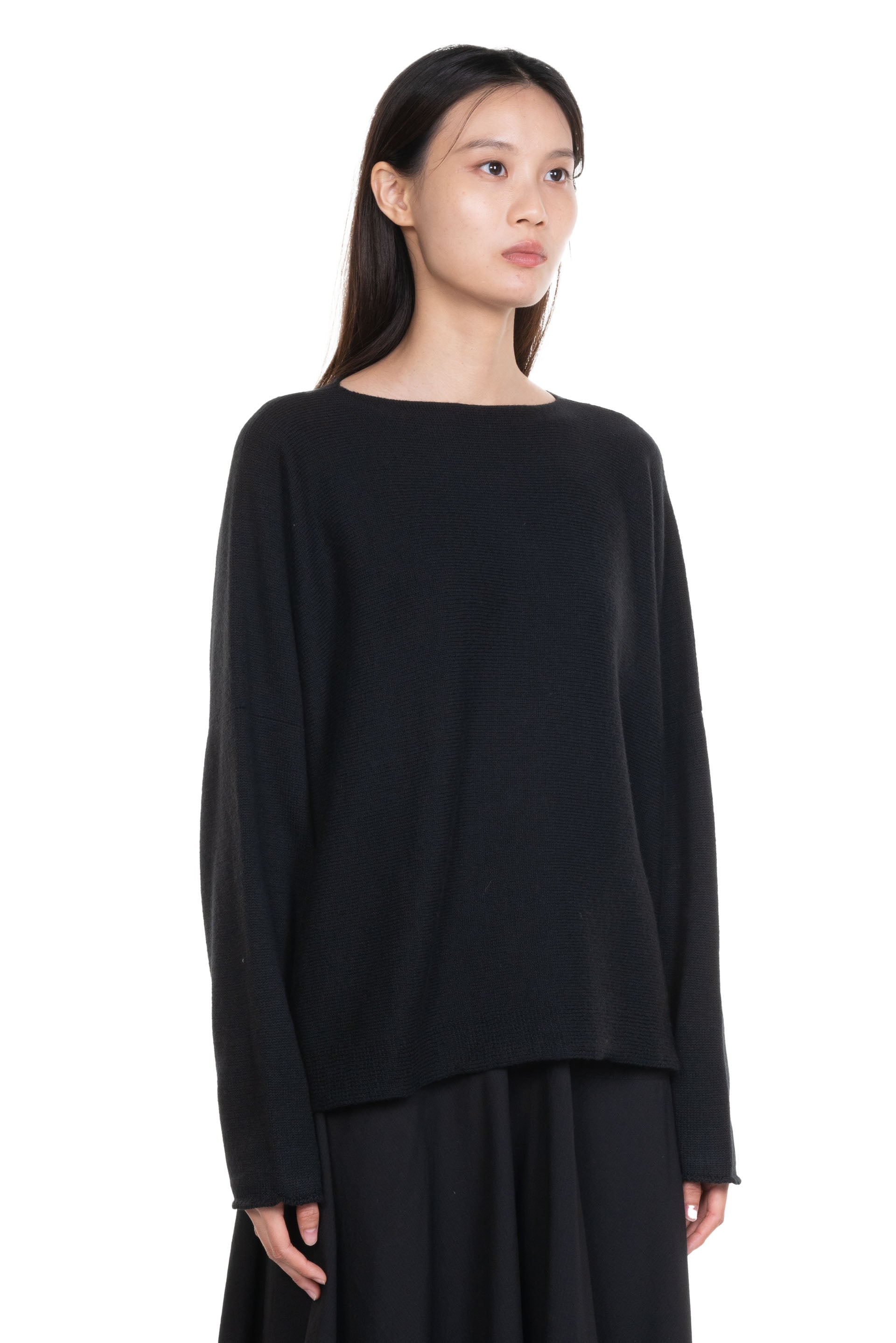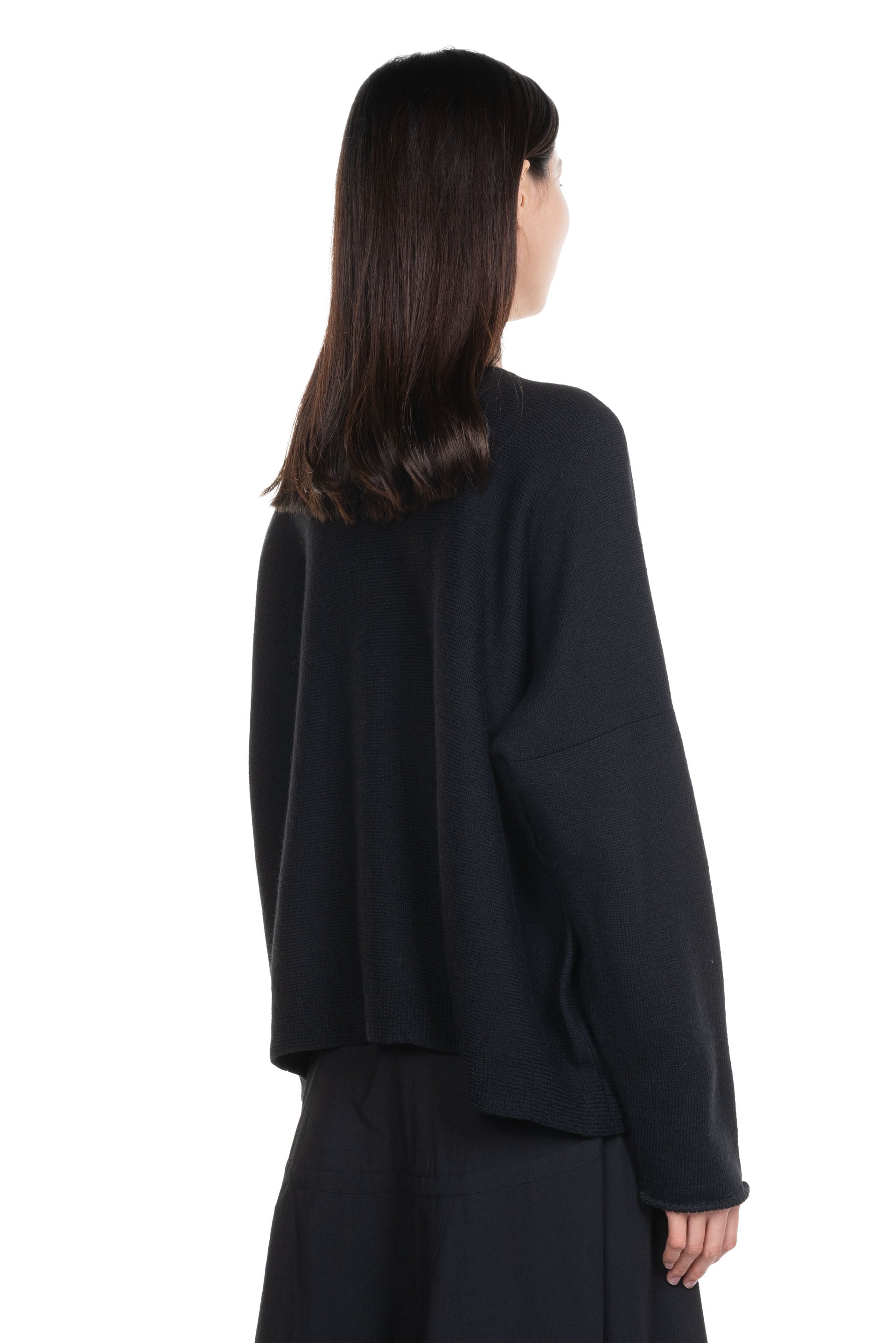 Lightweight unisex jumper knitted in a fine 8 gauge structure and is unusually knitted from side to side. The Crofter has a wide boxy shape with a slash neck and features delicate cast off cuffs and a moss stitch finish at the hem.