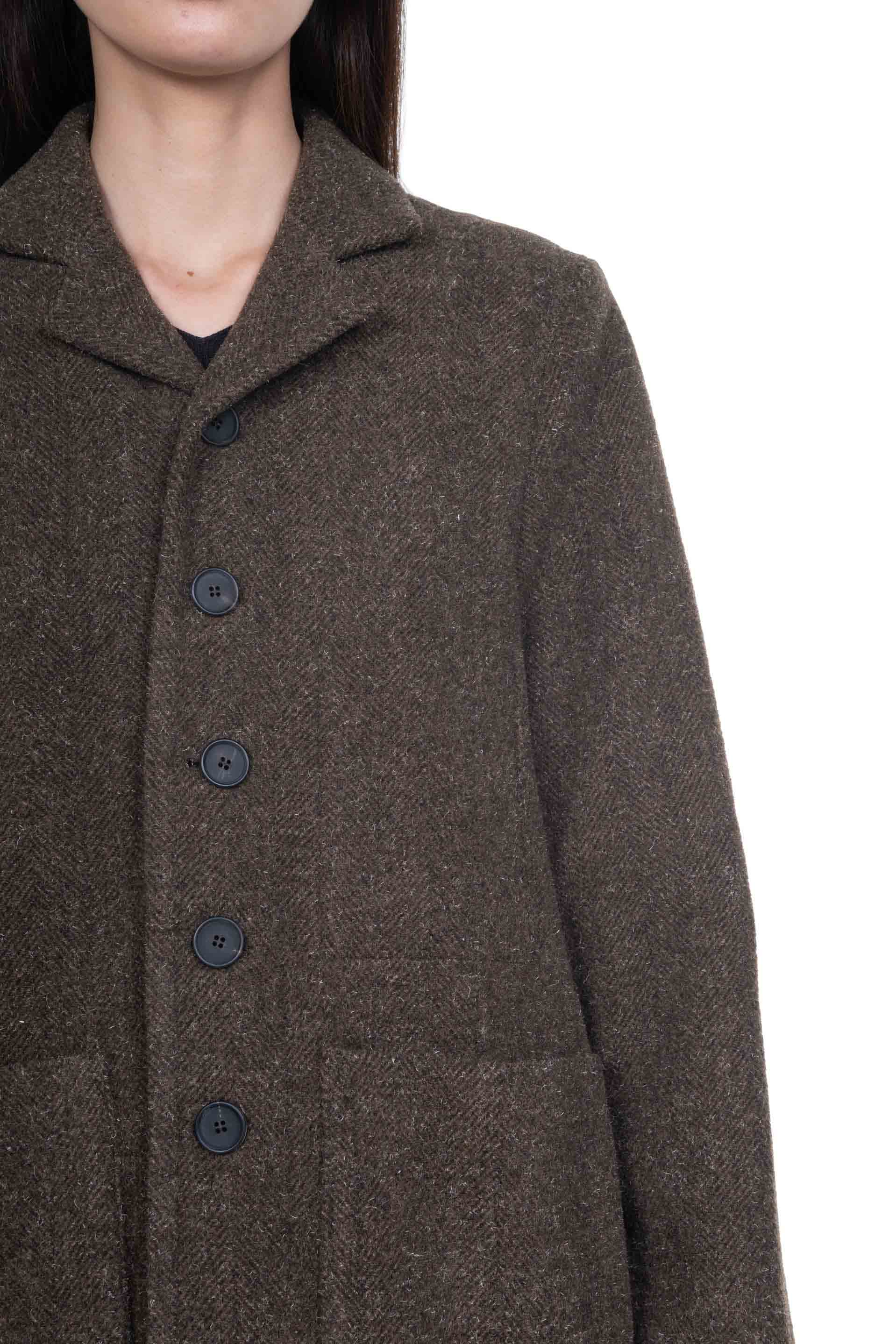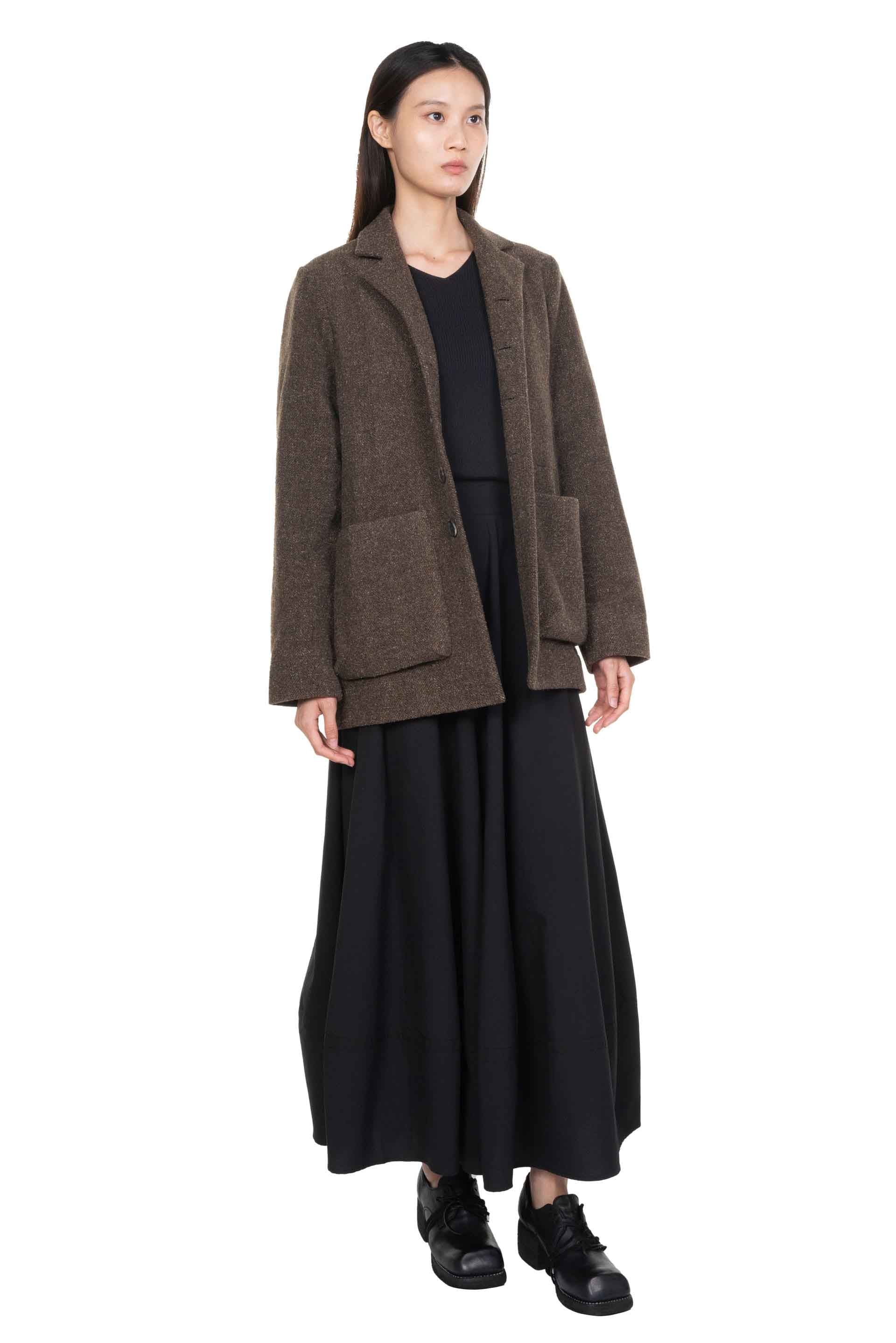 Toogood signature Photographer Jacket is made in a modern Japanese wool suiting with a fine twill construction. The rich earthy tones are the natural colour of the fibre and the texture nods to traditional tweeds and wools. This is a slim-fitting jacket with a revere collar and single vent in the back. Two sculptural stand-out pockets adorn the front.