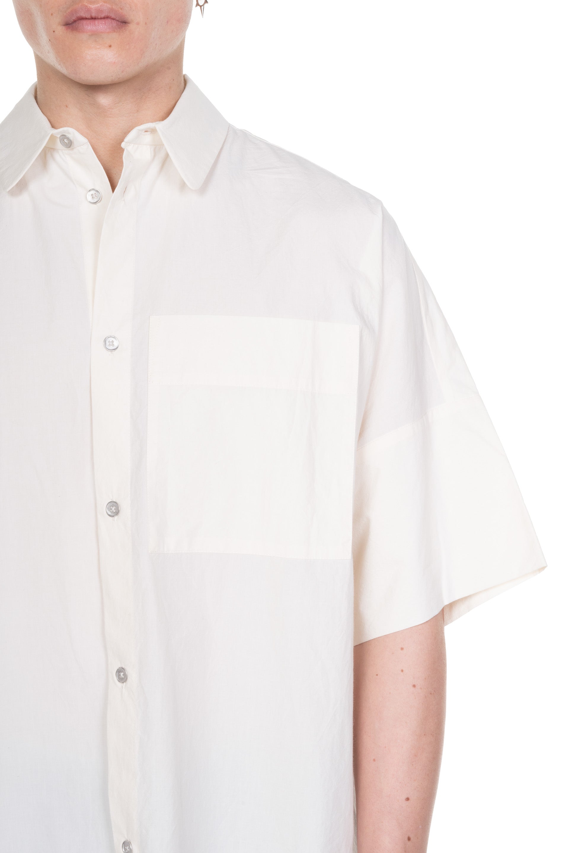 Shirt is made of lightweight textured cotton, a crisp cotton shirting that holds the shape of garments while being comfortable to wear.