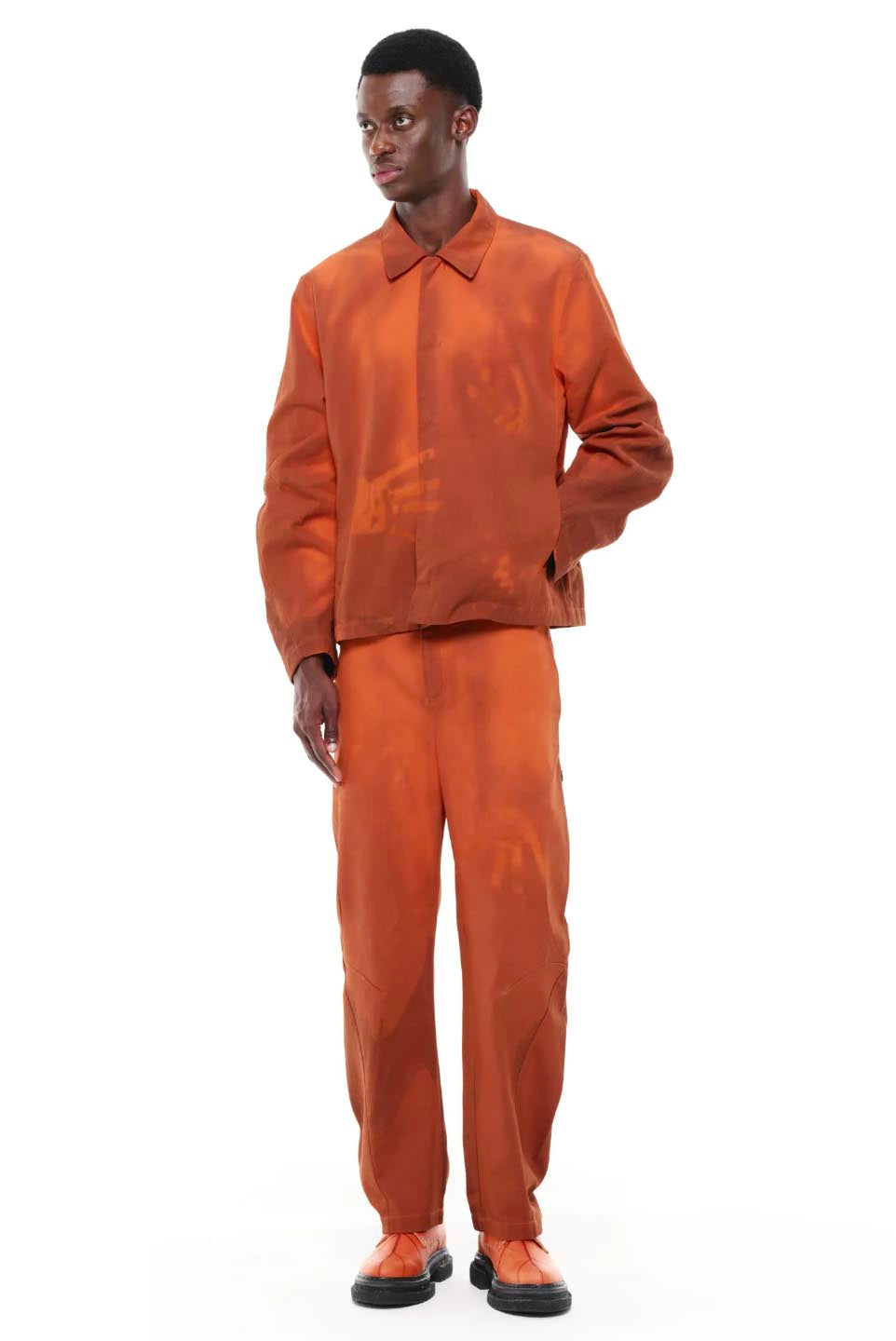 Andrade presents a Japanese avant-garde style combined with looks that are fit for rainforest excursions, tinged with tailoring cues and contrasted with technical touches as seen with the Thermo S Tech Jacket Orange.