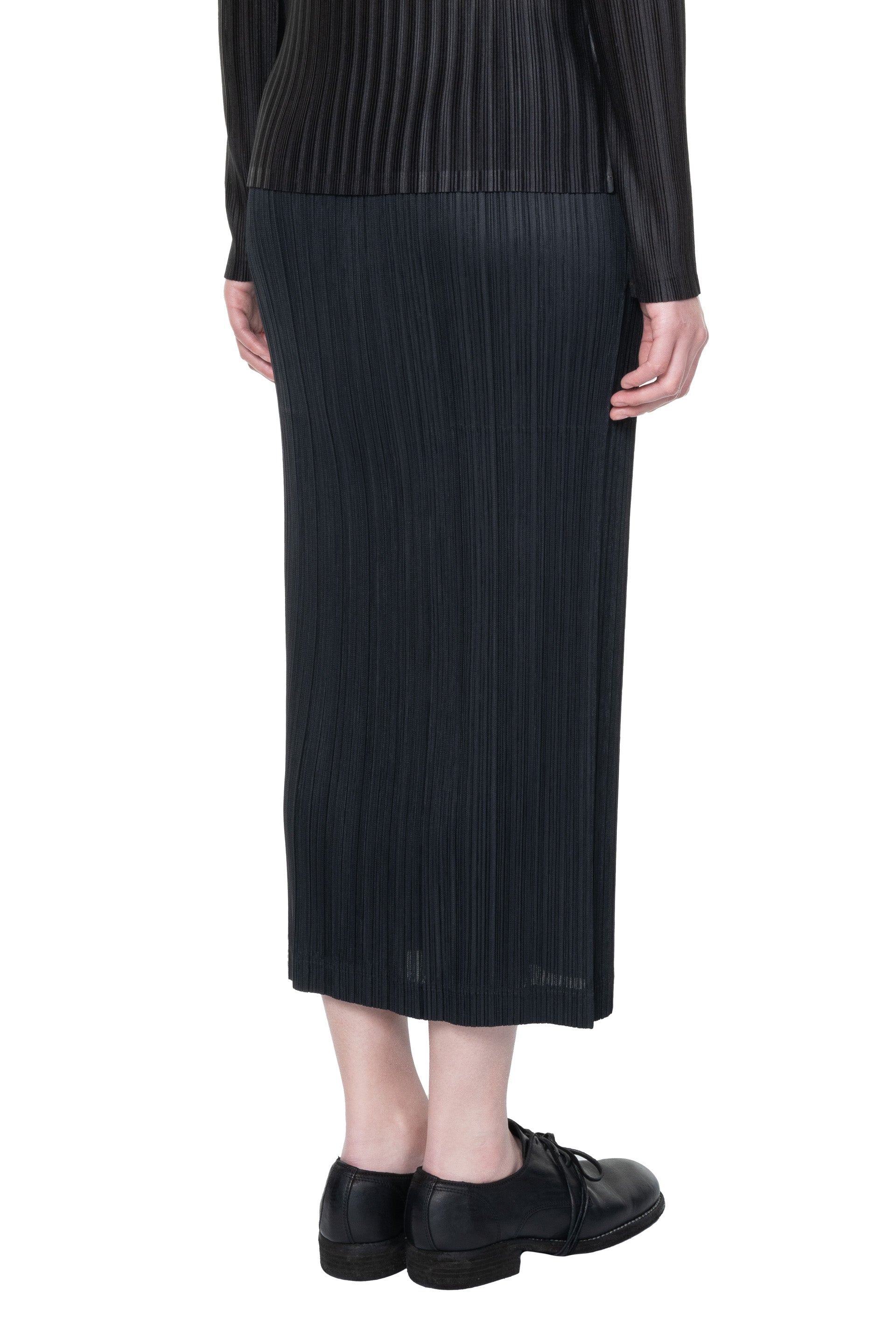 Pleats Please is crafted from a single thread, then creases are added after the clothes have been sewn into shape offering a combination of convenience, comfort and coolness. Pleats Please designs are simple with a strong silhouette as seen with the Thicker Bottoms 1 Skirt Black.