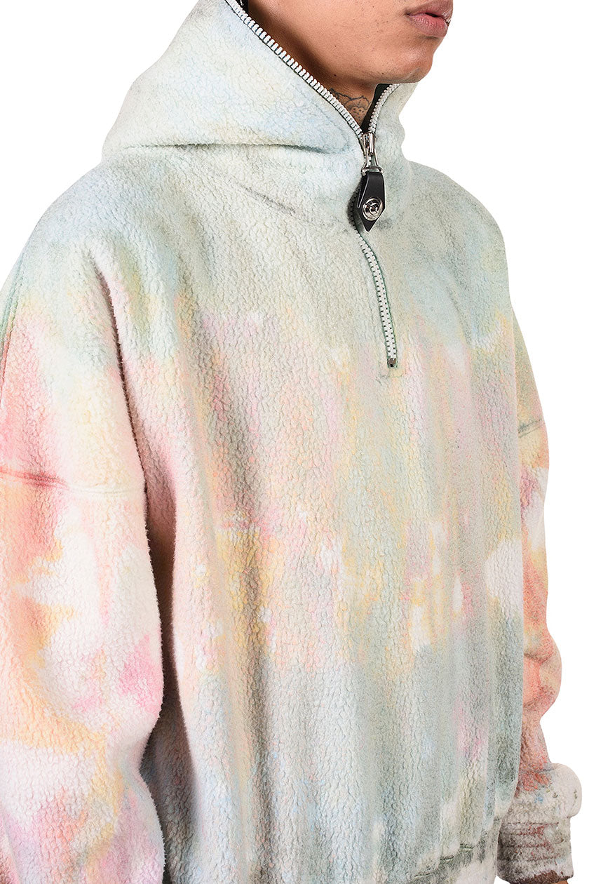 We11done merges late 1990s and early 2000s aesthetics creating a feeling of futurity. Functional, sportive, and sleek, We11done’s versatile designs refine classic elements into contemporary lifestyle pieces as seen with the Tie Dye Half Zip Fleece Hoodie.