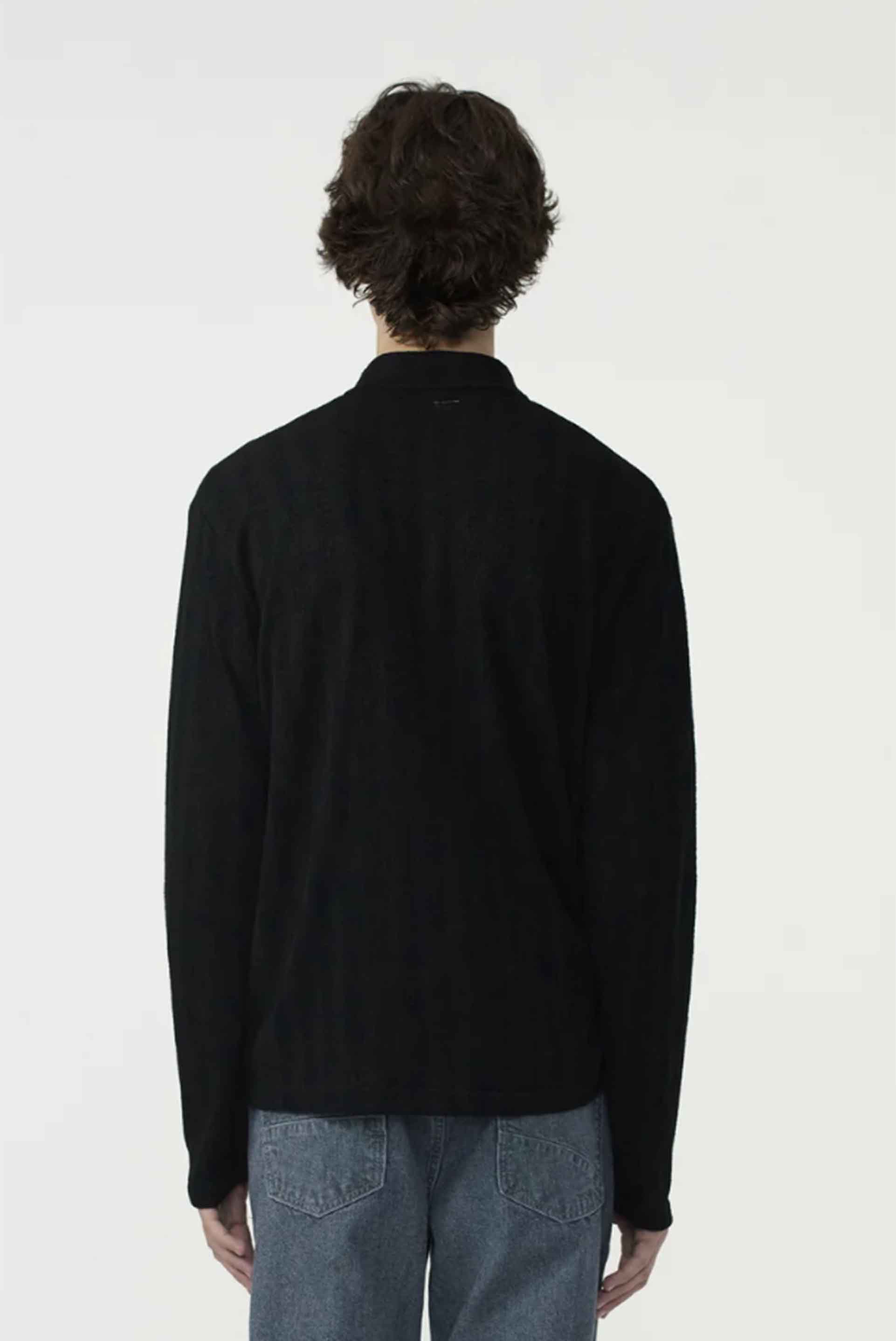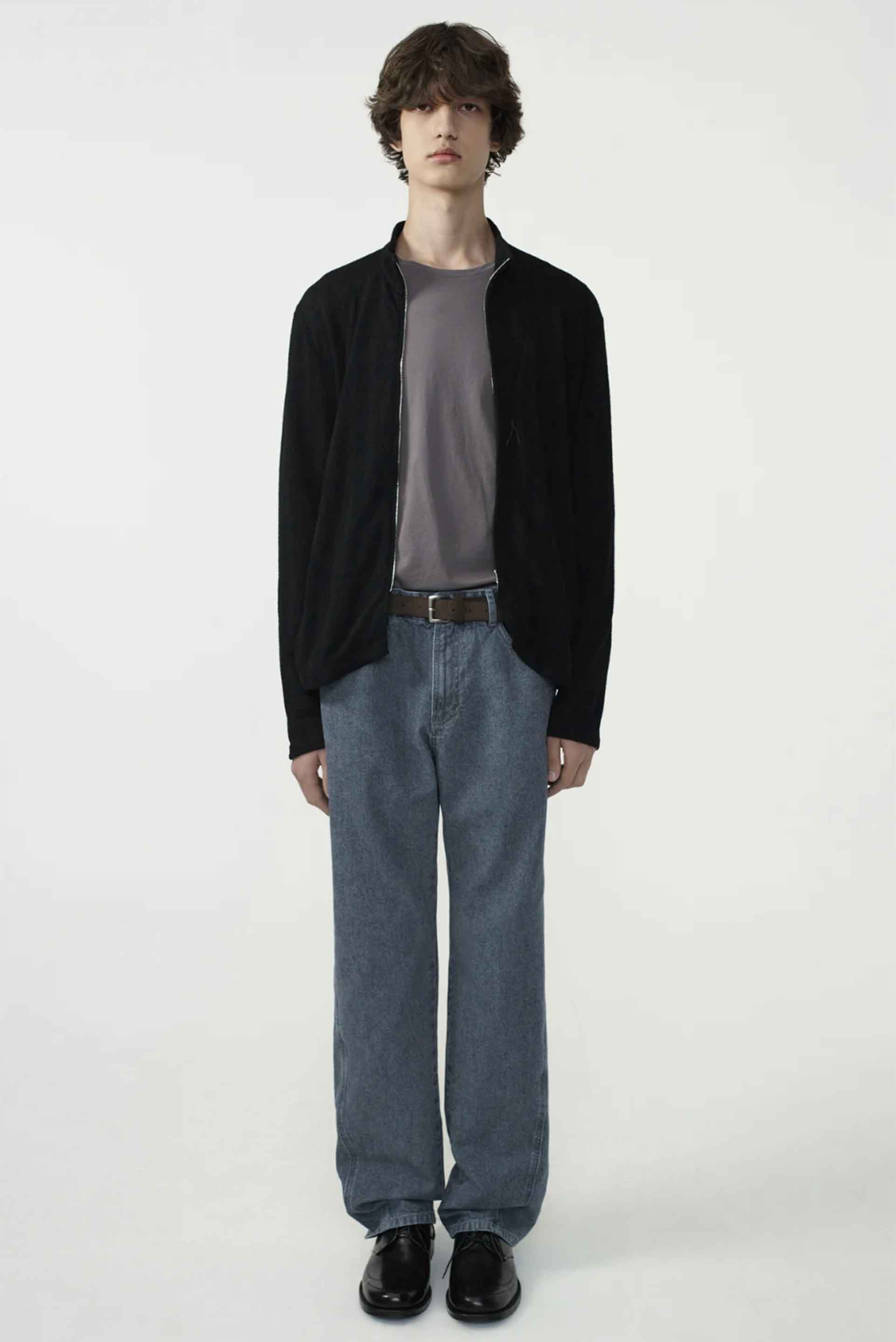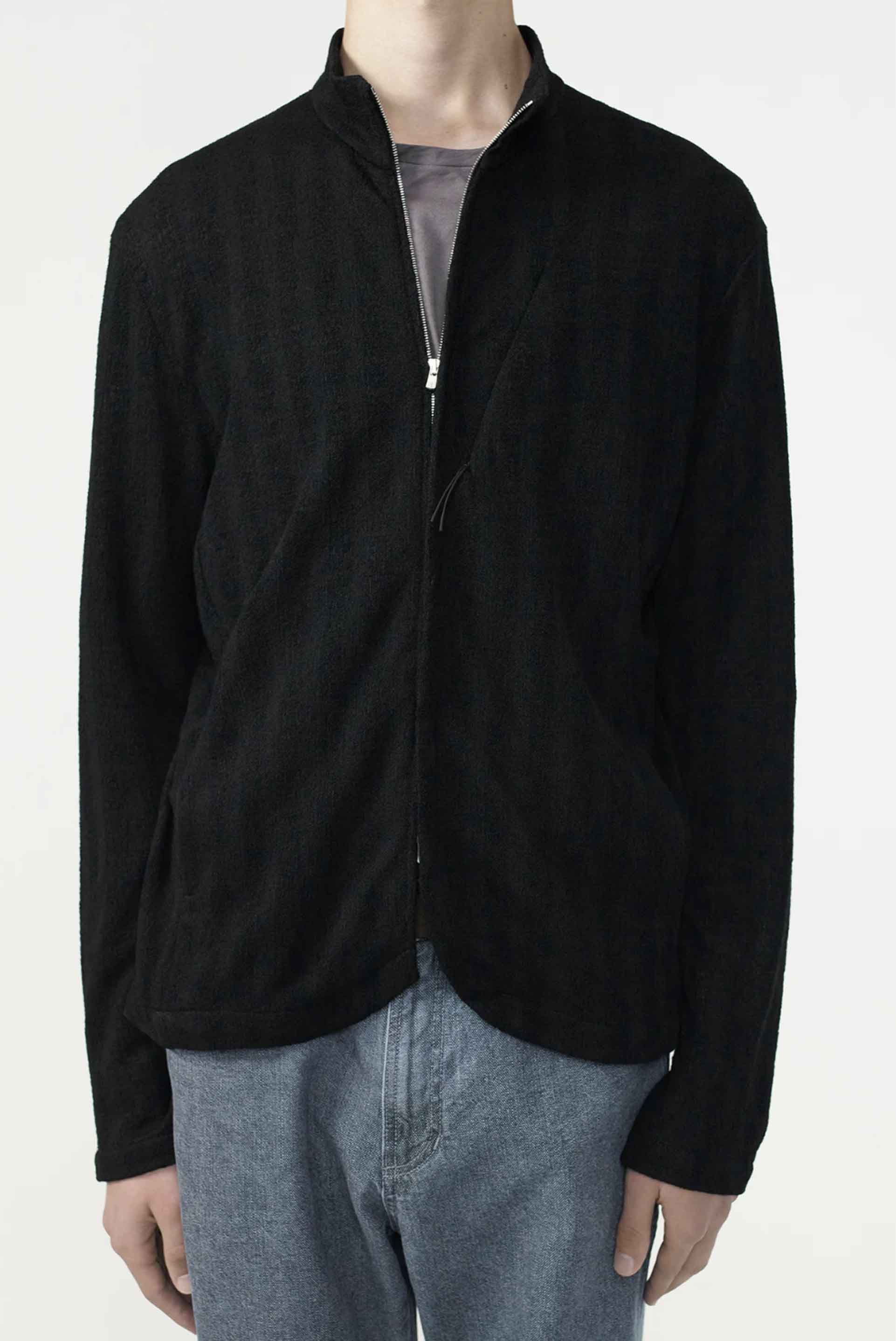 Soft, breathable fabric. Stand collar style. Asymmetric front flap. Diagonal zip pocket on chest. Two way YKK EXCELLA® zip closure. Slim fit. Fabric from Japan.