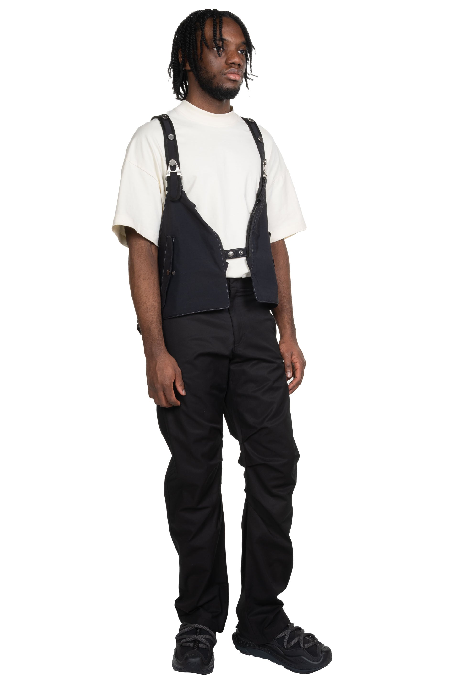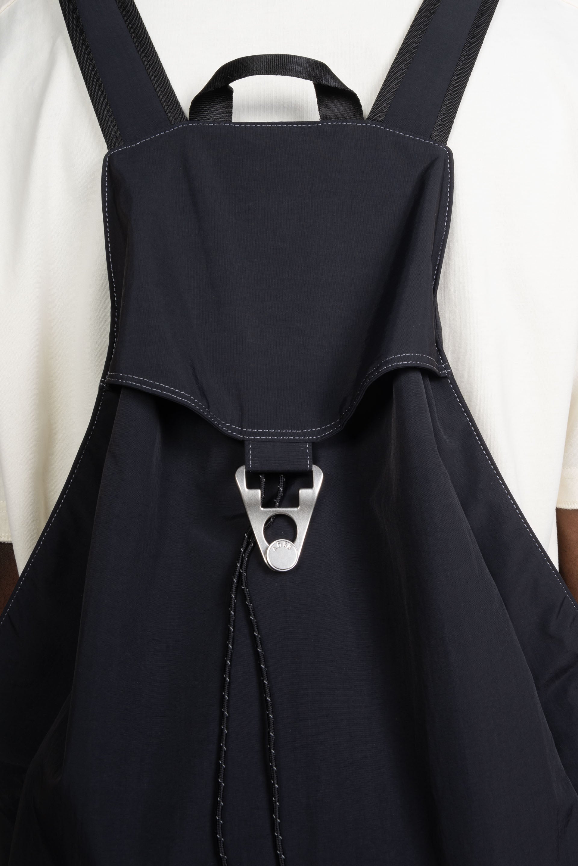 Andersson Bell Triangolo Vest Backpack. Combination Design of Vest and Backpack. Triangular buckle with ADSB ANDERSSON BELL logo engraving. Easy-access storage with side zipper on vest body. Can be worn in multiple ways.