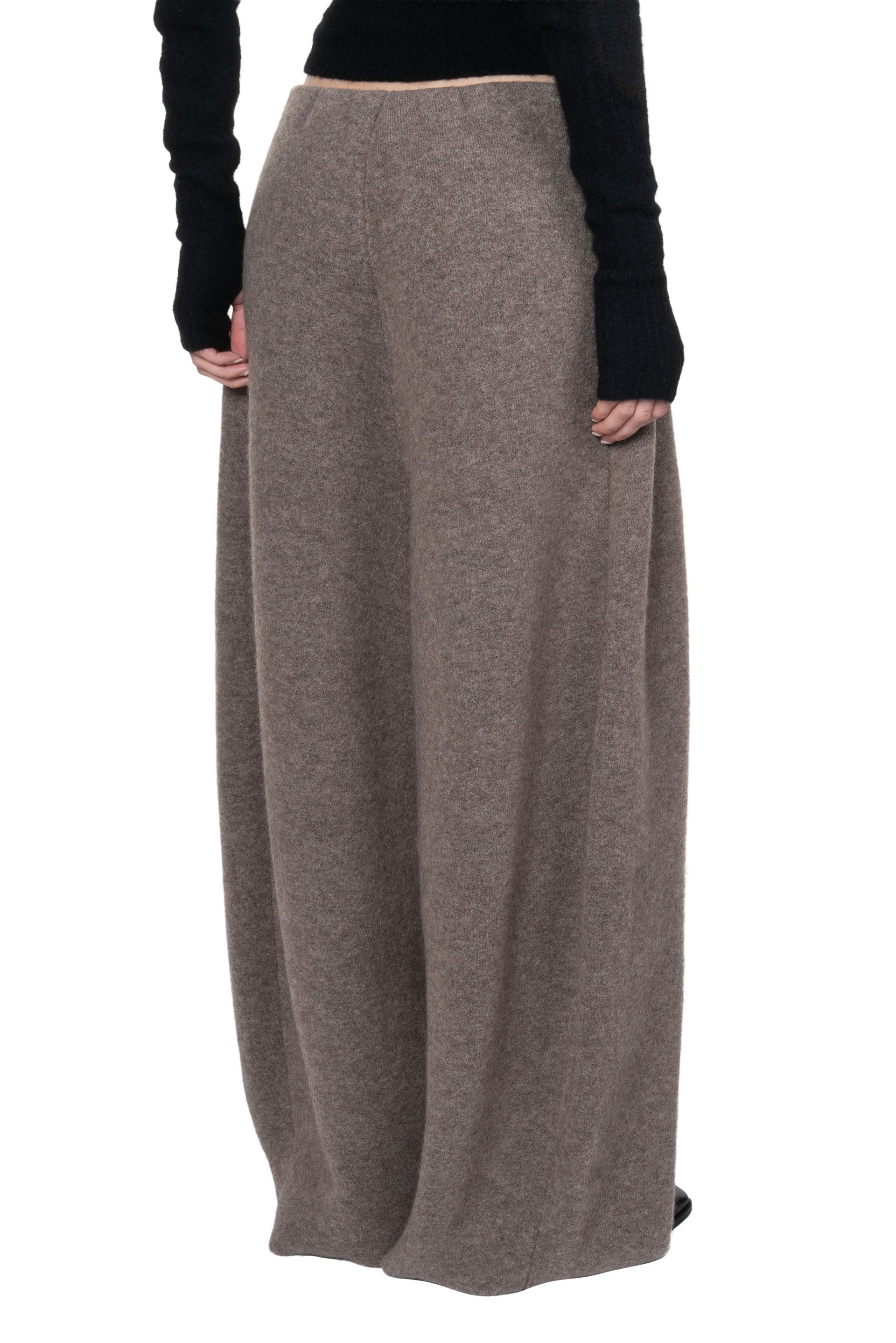Taupe Yak wool Trousers from Boboutic. Elastic waist. Wide fit. Signature Yak mix. Soft textural fabric. Lightweight.