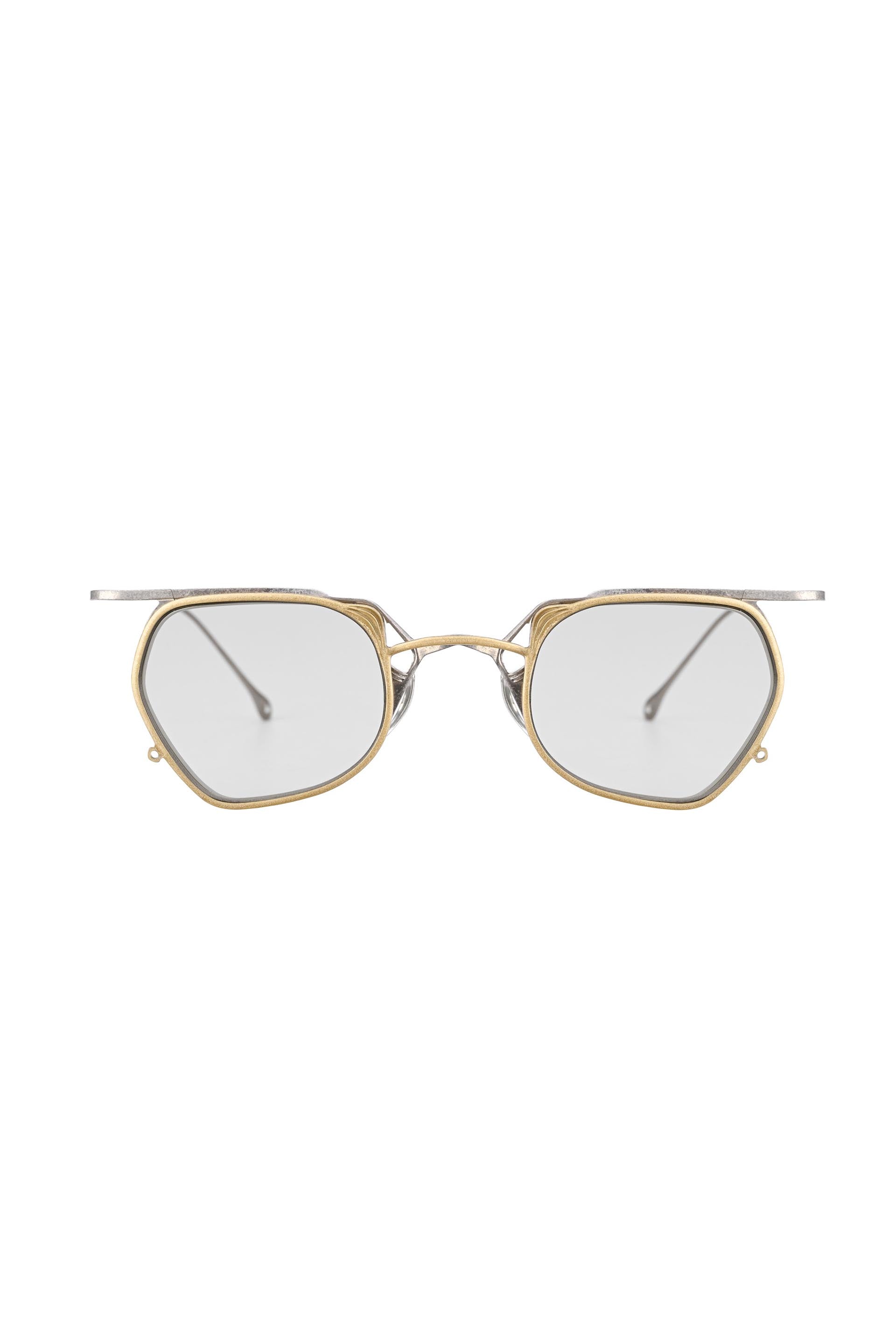 The RG1999TVA by The Viridi Anne x Rigards is a square spectacle characterised by a Titanium finish. These glasses are accompanied by a magnetic round clip in antique gold cup treatment that compliments the frame's simplicity, acting as an artfully crafted shield toward the exterior world.