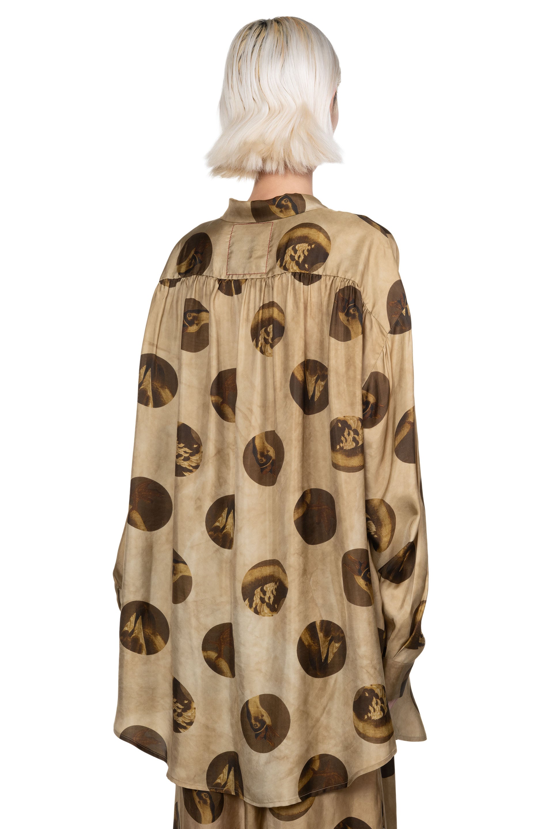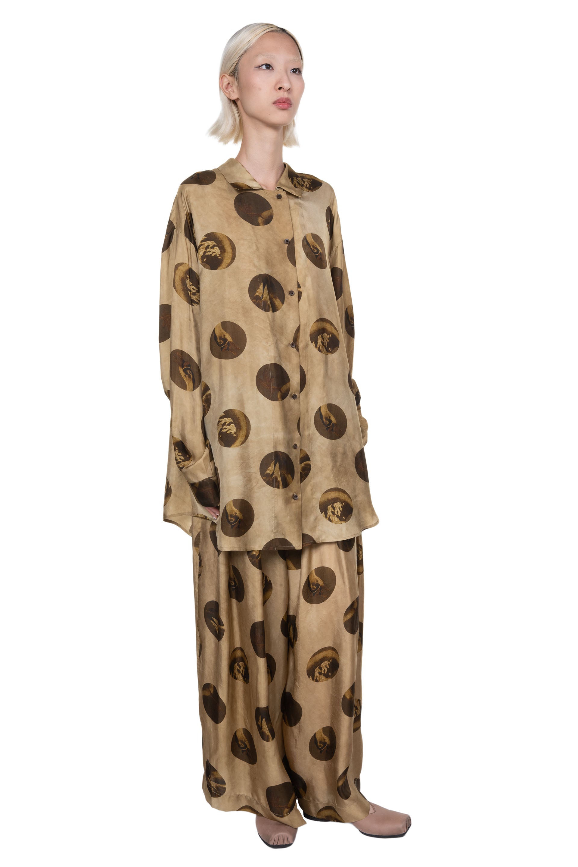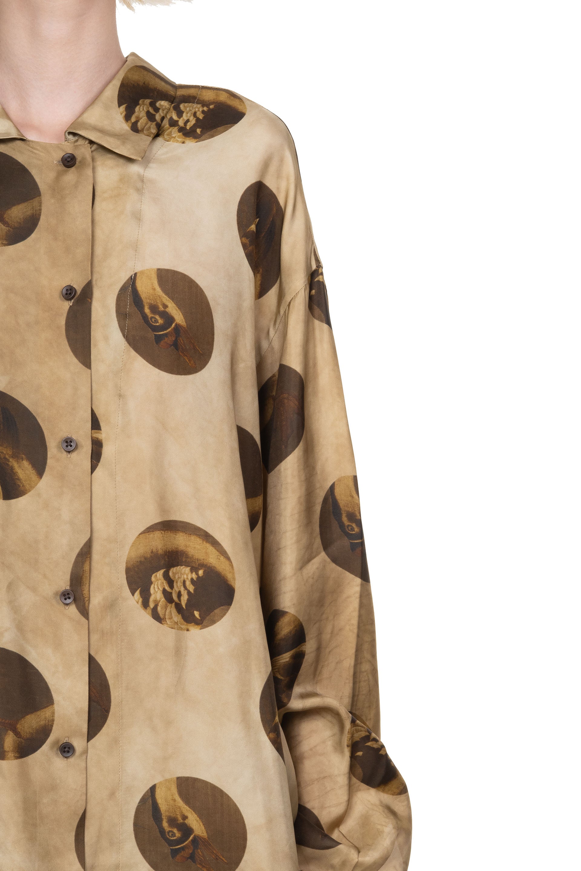 UMA WANG printed shirt. Long sleeves. Button closure at front. Button closure at cuffs. Regular collar. Seasonal print throughout. Soft silk and elastane fabric.