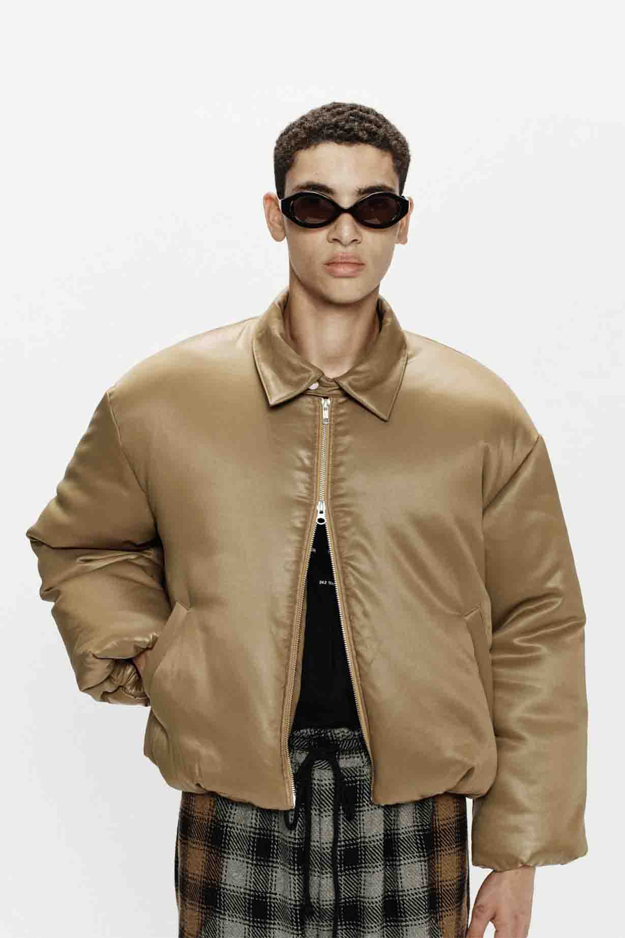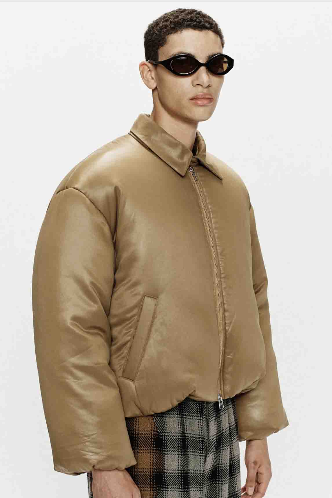 Founded in 2010 by childhood friends Melvin Tanaya and Lyna Ty, Song for the Mute is all about choosing materials carefully. The duo meticulously develops, samples, and selects fabrics in collaboration with artisanal Italian and Japanese mills before patterning their intimate, story-driven collections as seen with the Unisex Puffer Jacket Camel.