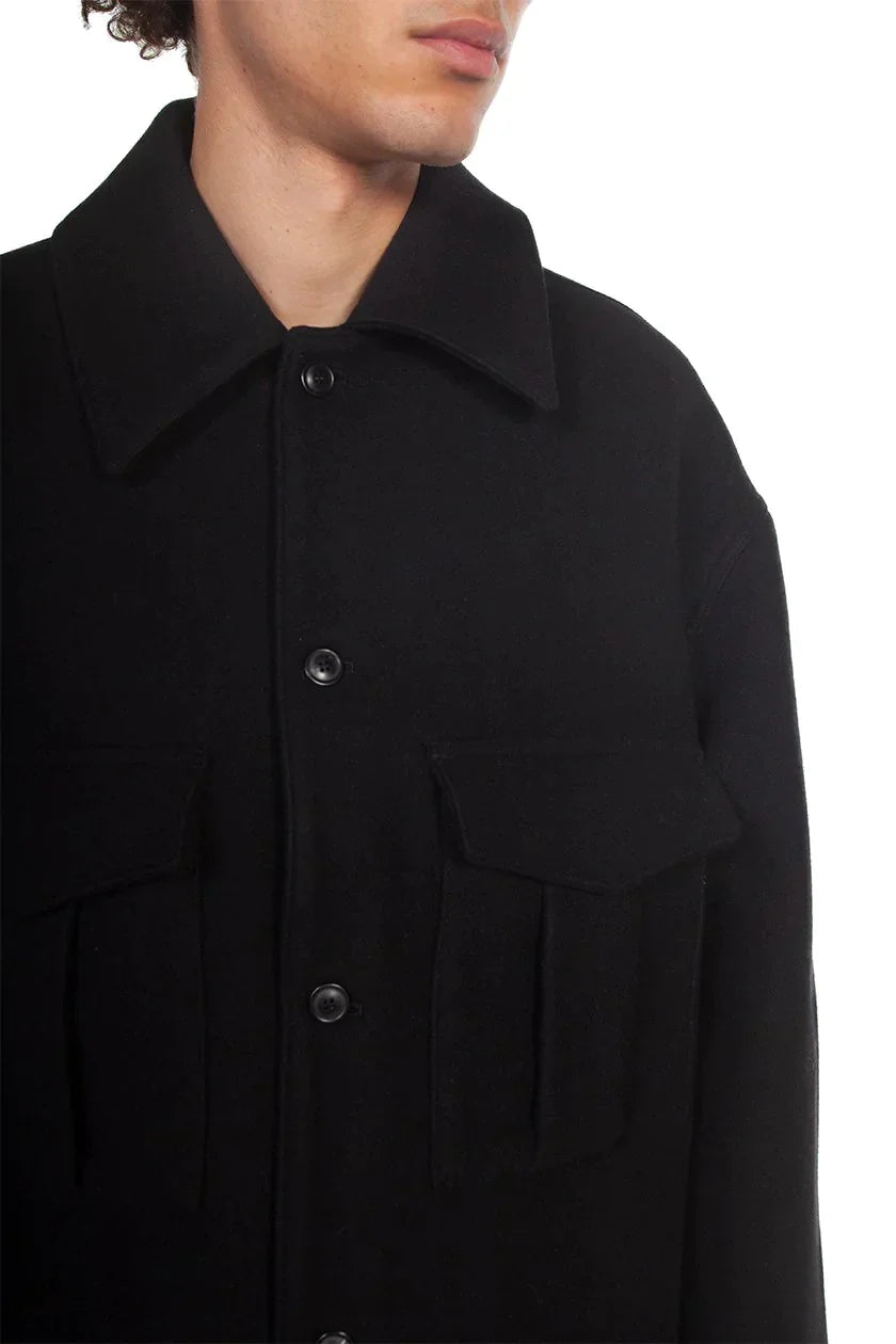 Horn buttons. Front pockets. Relaxed fit. Dropped shoulders. Fits true to size.