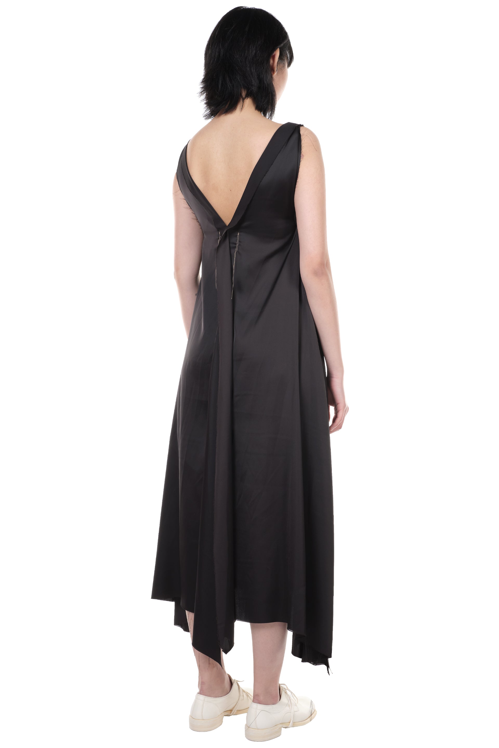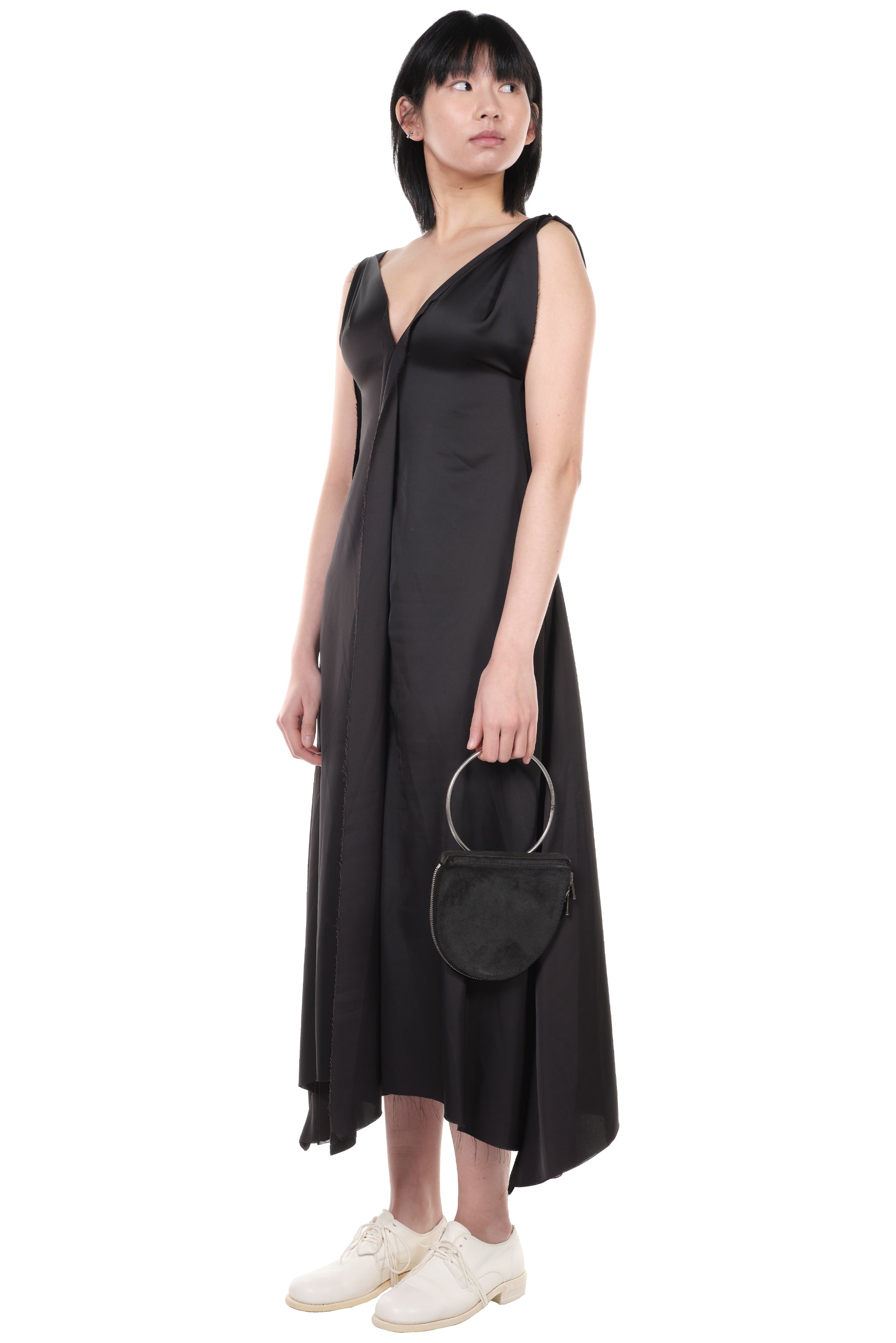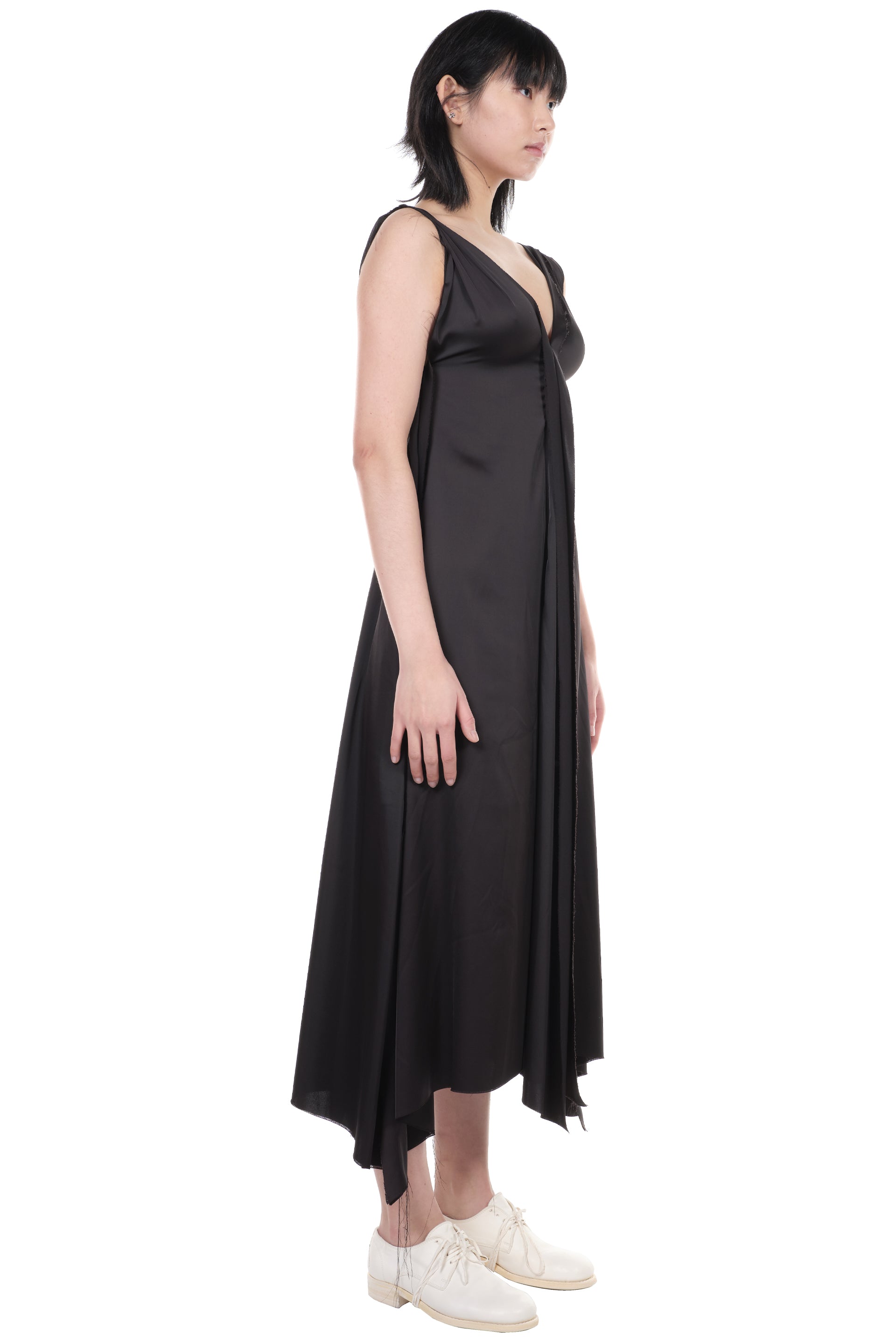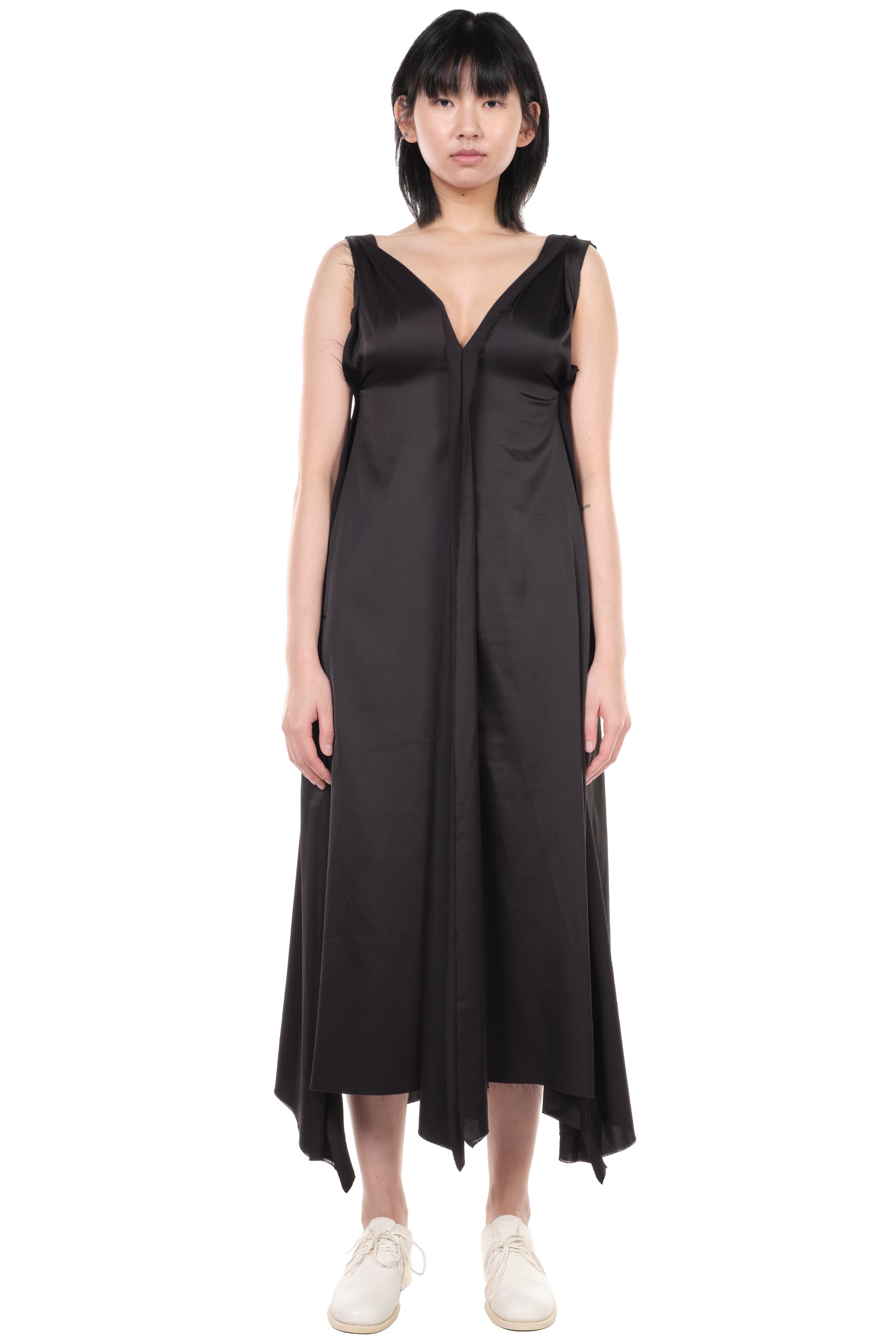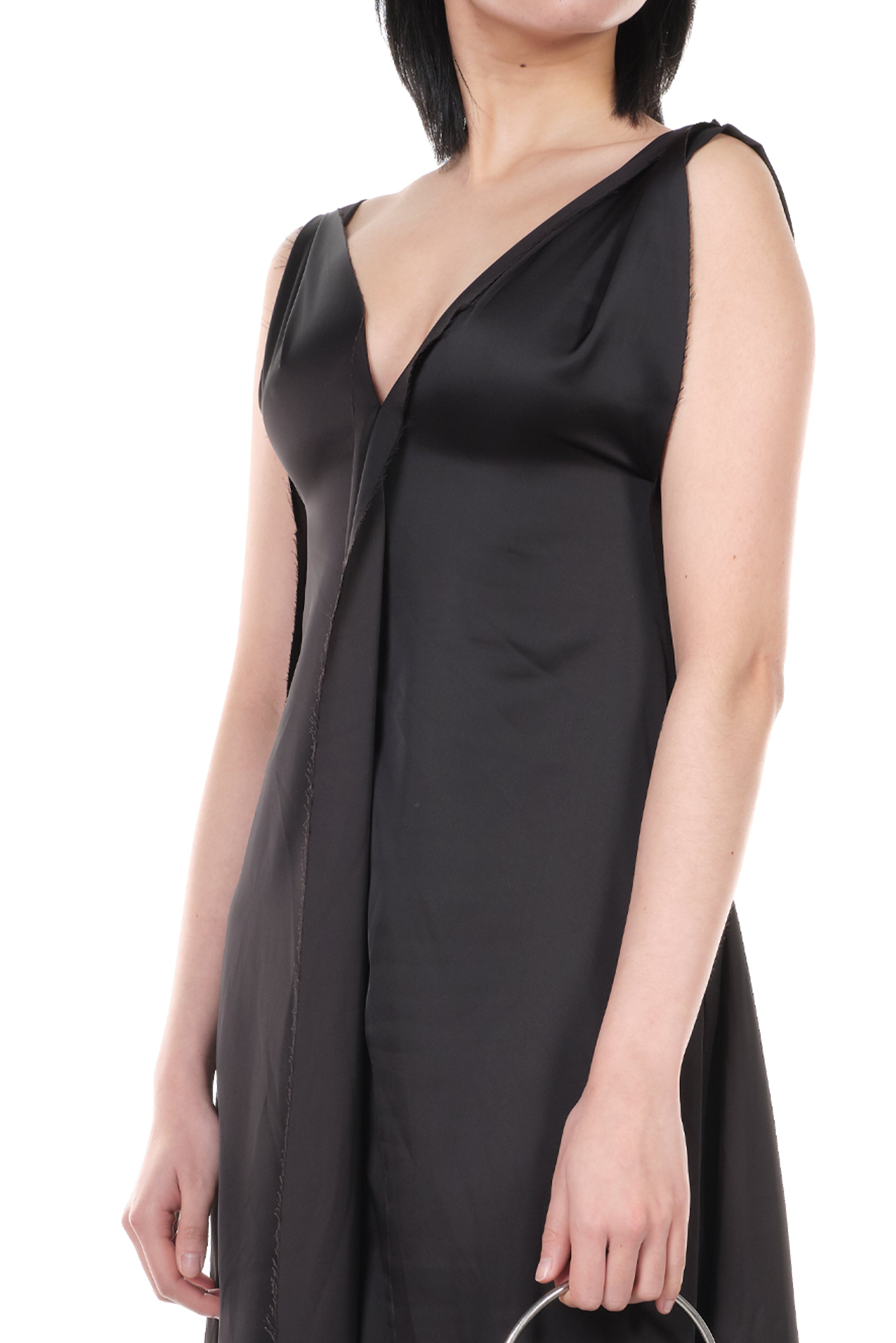 V-Neck Black Dress from Peng Tai. Two shoulder straps. Brand stitching at back. Soft fabric.