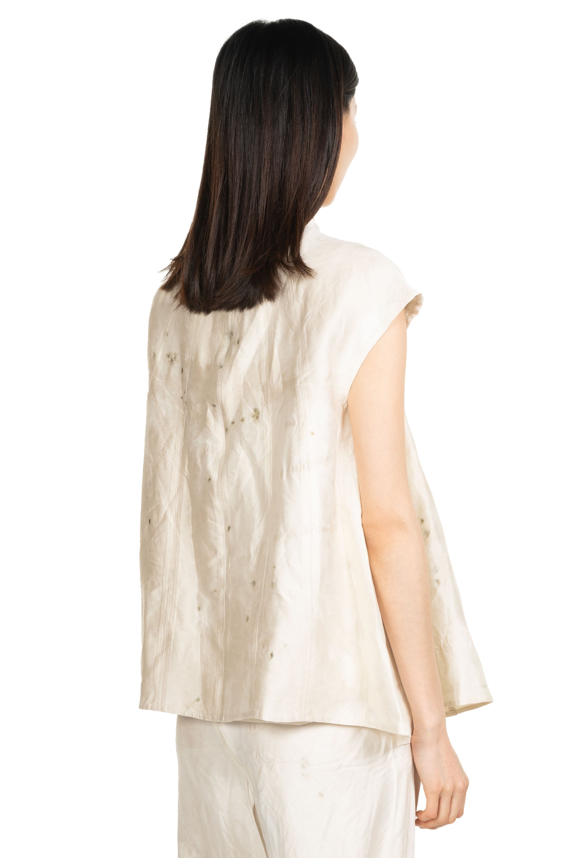 Mute Dance Vest Hoary. Sleeveless, Signature dyed finish. Soft silky fabric.