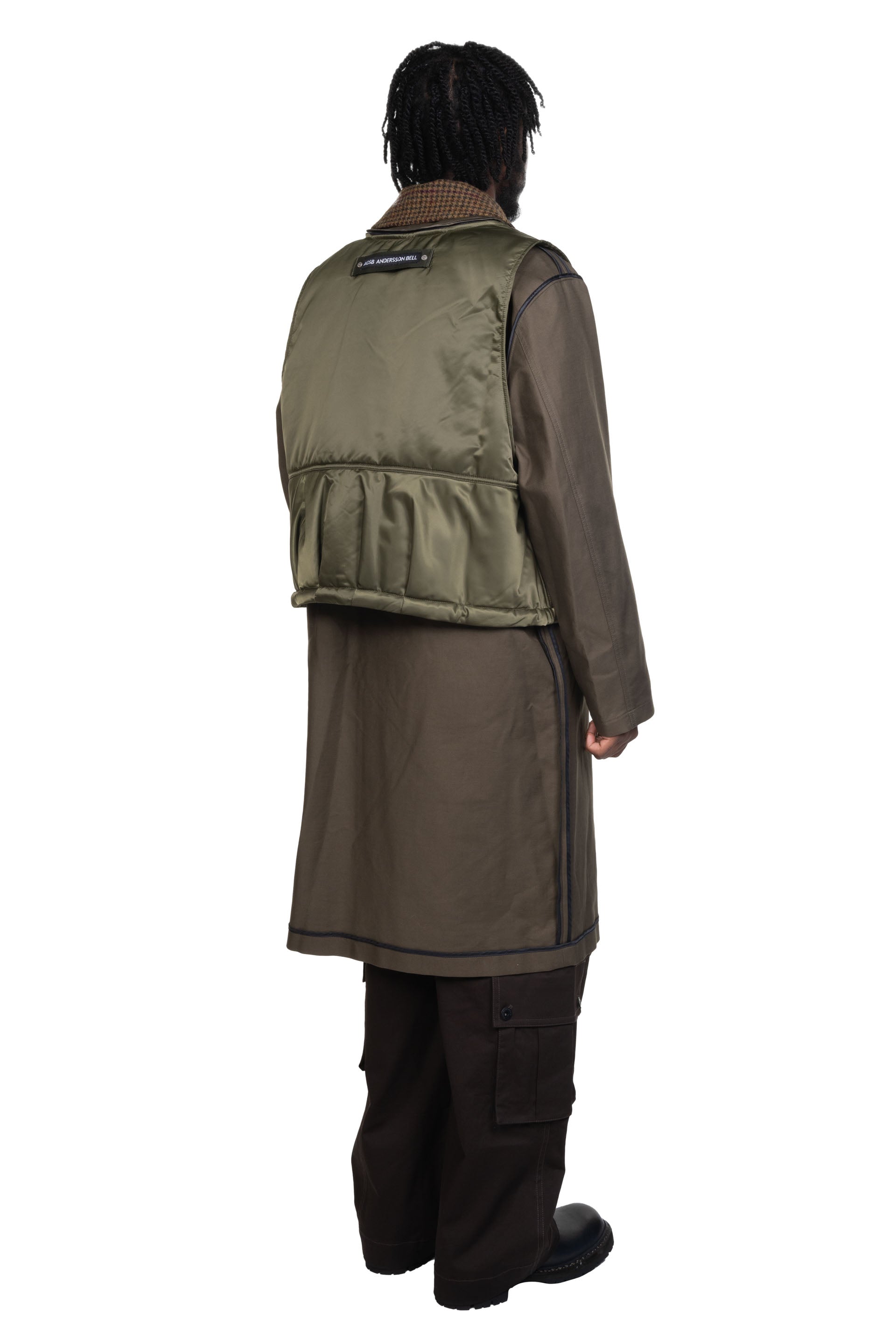 Long sleeves. Button closure at front. Two side pockets. Inside pocket. Button at cuffs. Detachable multi pocket vest. Multi fabric design throughout. Slightly padded shoulders. inside out design. Signature details throughout. Regular fit. Lightweight.