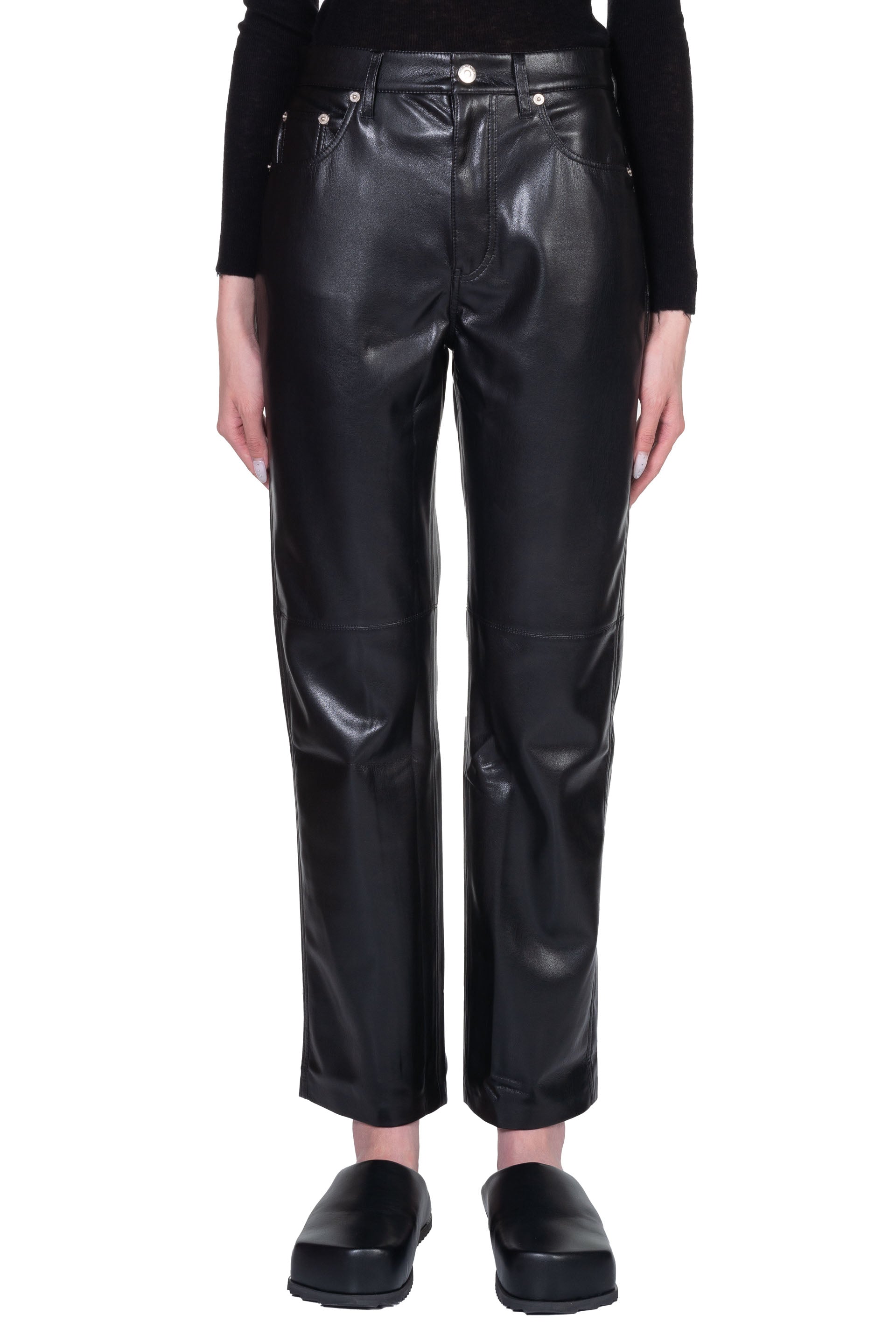 They're made from signature vegan leather for a high-rise, straight-leg silhouette, and finished with cropped hems that kick out subtly.
