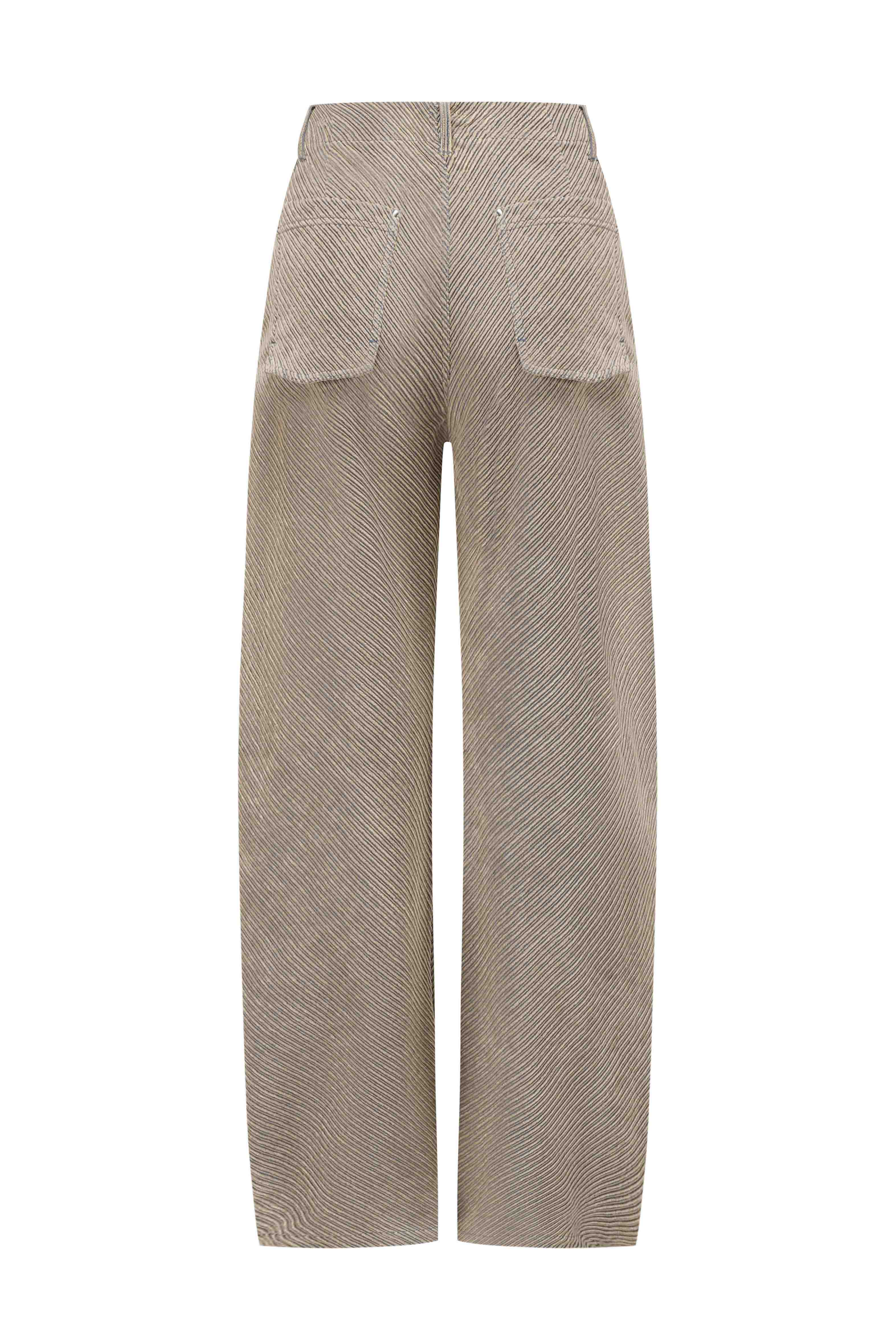 OUDE WAAG strikes a balance between Asian aesthetics and Western cutting. It is at the heart of designer’s philosophy: celebrating the power of women, yet simultaneously critiquing the ongoing objectification and idealisation of the body as you can see in the Oude Waag AW25 collection with the Wale Corduroy Oversized Pants Beige.