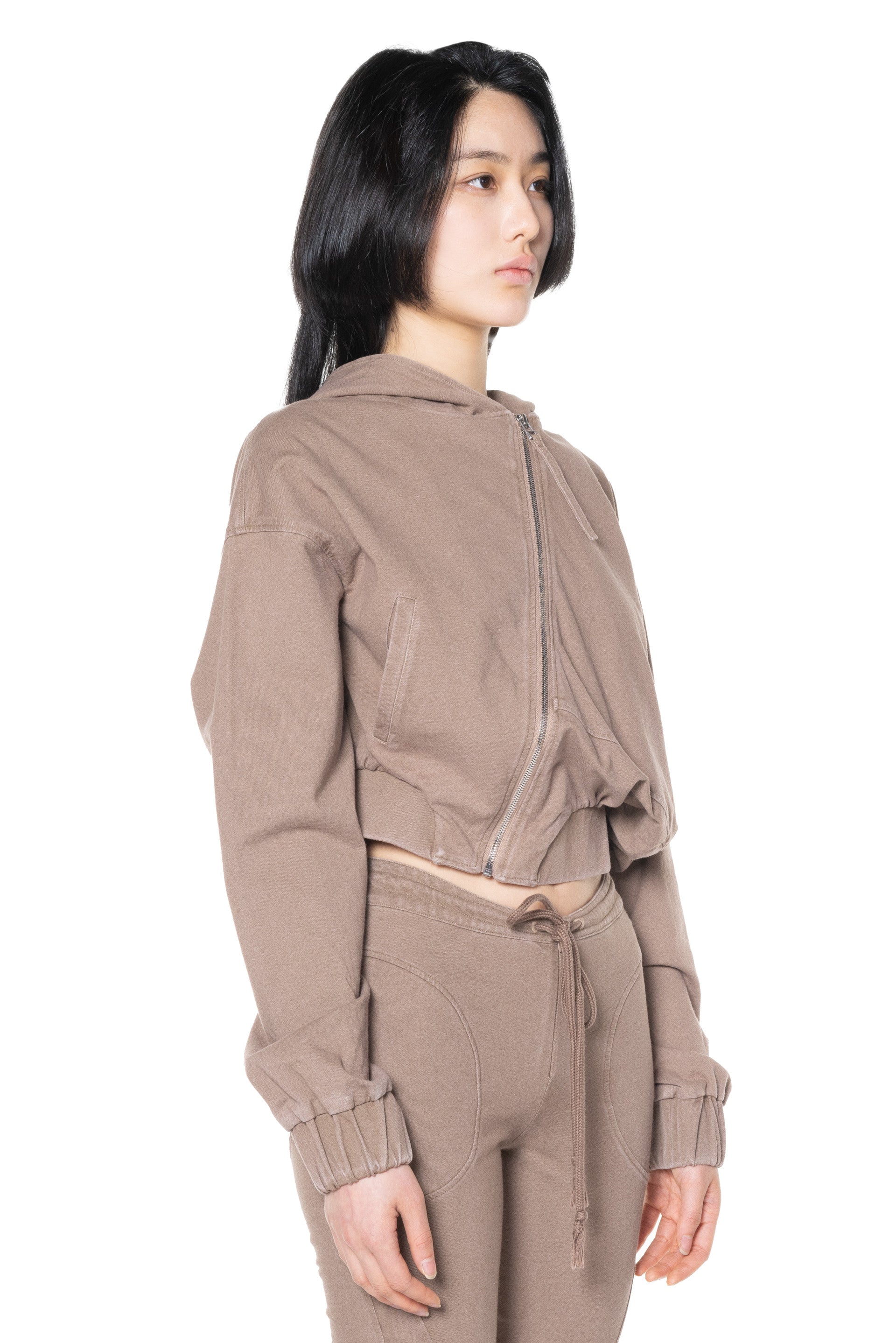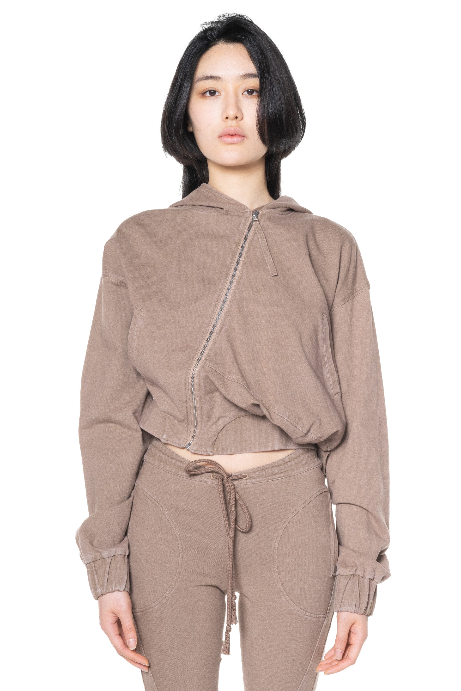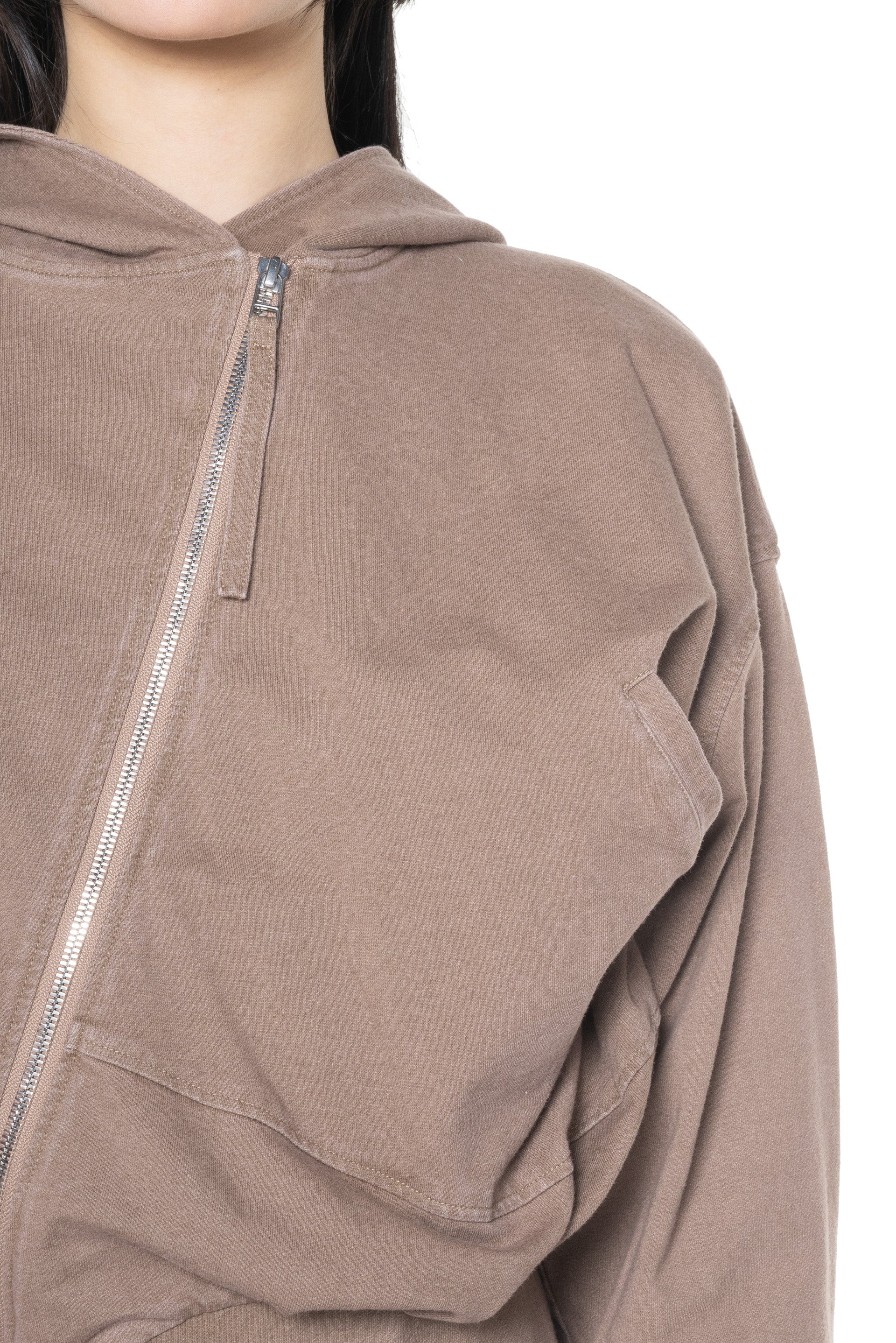 OUDE WAAG strikes a balance between Asian aesthetics and Western cutting. It is at the heart of designer’s philosophy: celebrating the power of women, yet simultaneously critiquing the ongoing objectification and idealisation of the body as you can see with the Washed Asymmetric Hoodie Brown.