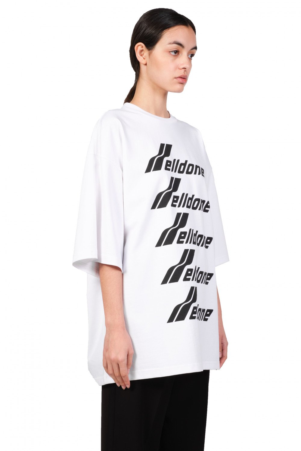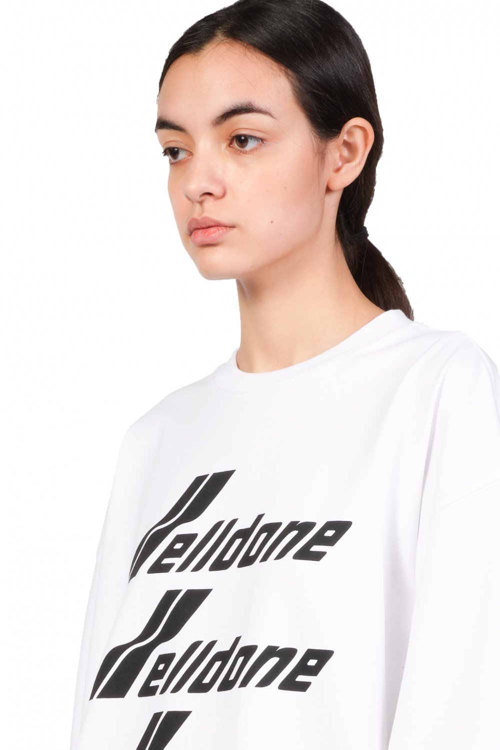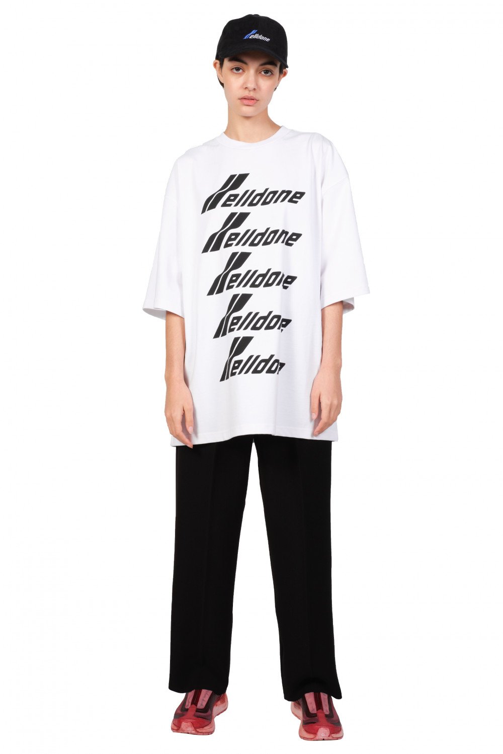 A collection of athleisure and streetwear-inspired silhouettes, merging loose-fitting styles with late 1990’s and early 2000’s refinement and understated sophistication as seen in the We11Done White Front Logo T-shirt.