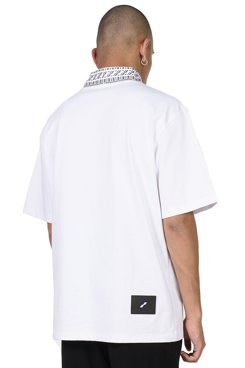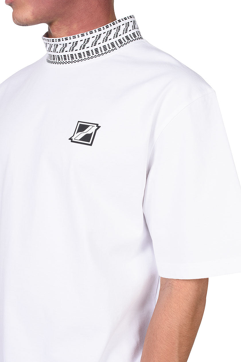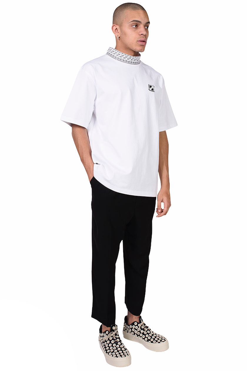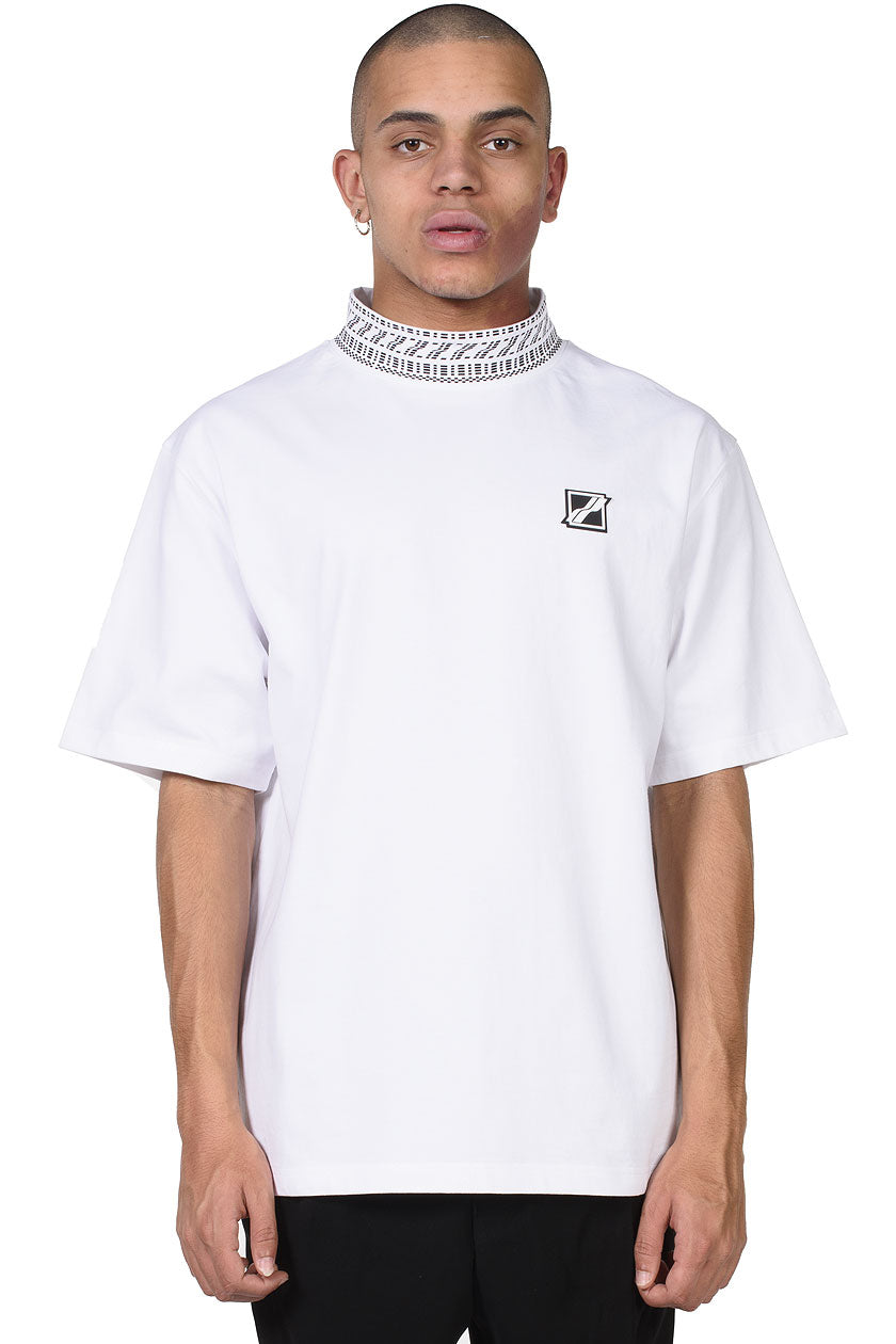 We11done merges late 1990s and early 2000s aesthetics creating a feeling of futurity. Functional, sportive, and sleek, We11done’s versatile designs refine classic elements into contemporary lifestyle pieces as seen with the White relaxed fit cotton short sleeve T-shirt. Features a jacquard mock neck. Rubber logo patch at chest and along back hem. Finished with cuffs and tonal stitching. Relaxed Fit.