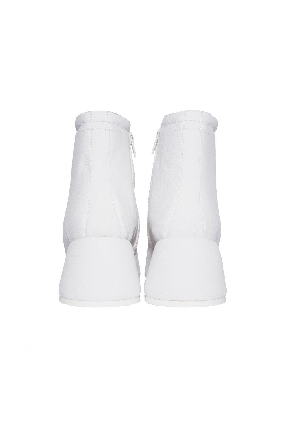 MM6 is known for its sporty ready-to-wear and off-beat accessories, more casual, street-inspired take on the Maison's intellectual approach to luxury as seen in the MM6 White Padded Boot.