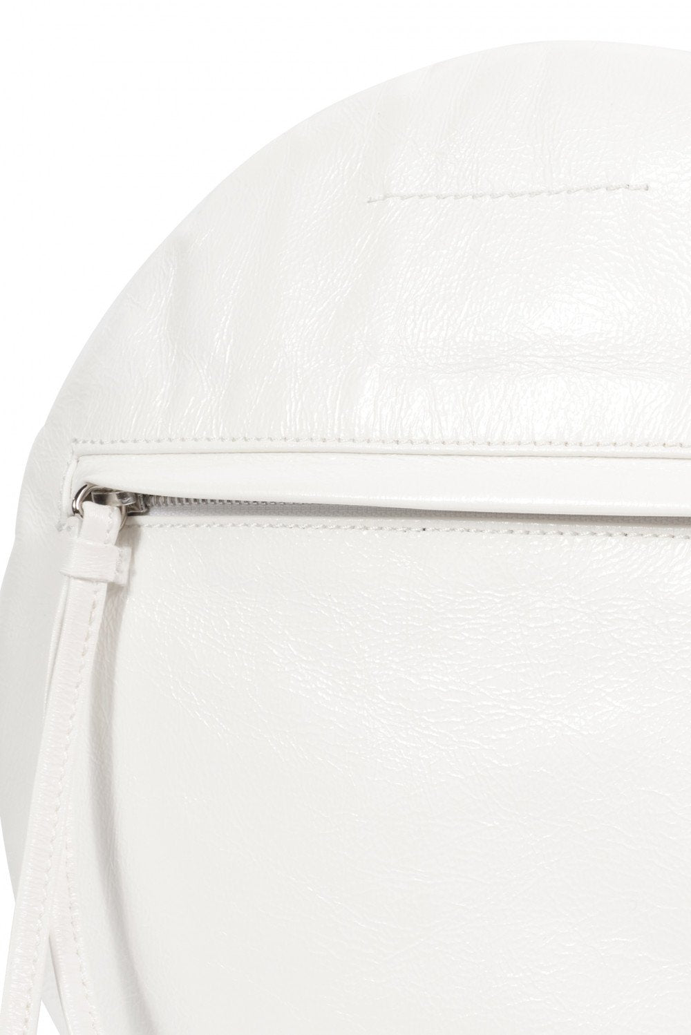 MM6 is known for its sporty ready-to-wear and off-beat accessories, more casual, street-inspired take on the Maison's intellectual approach to luxury as seen in the MM6 White Round Clutch Bag.