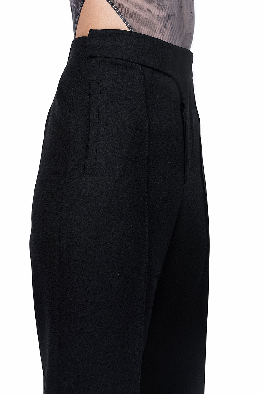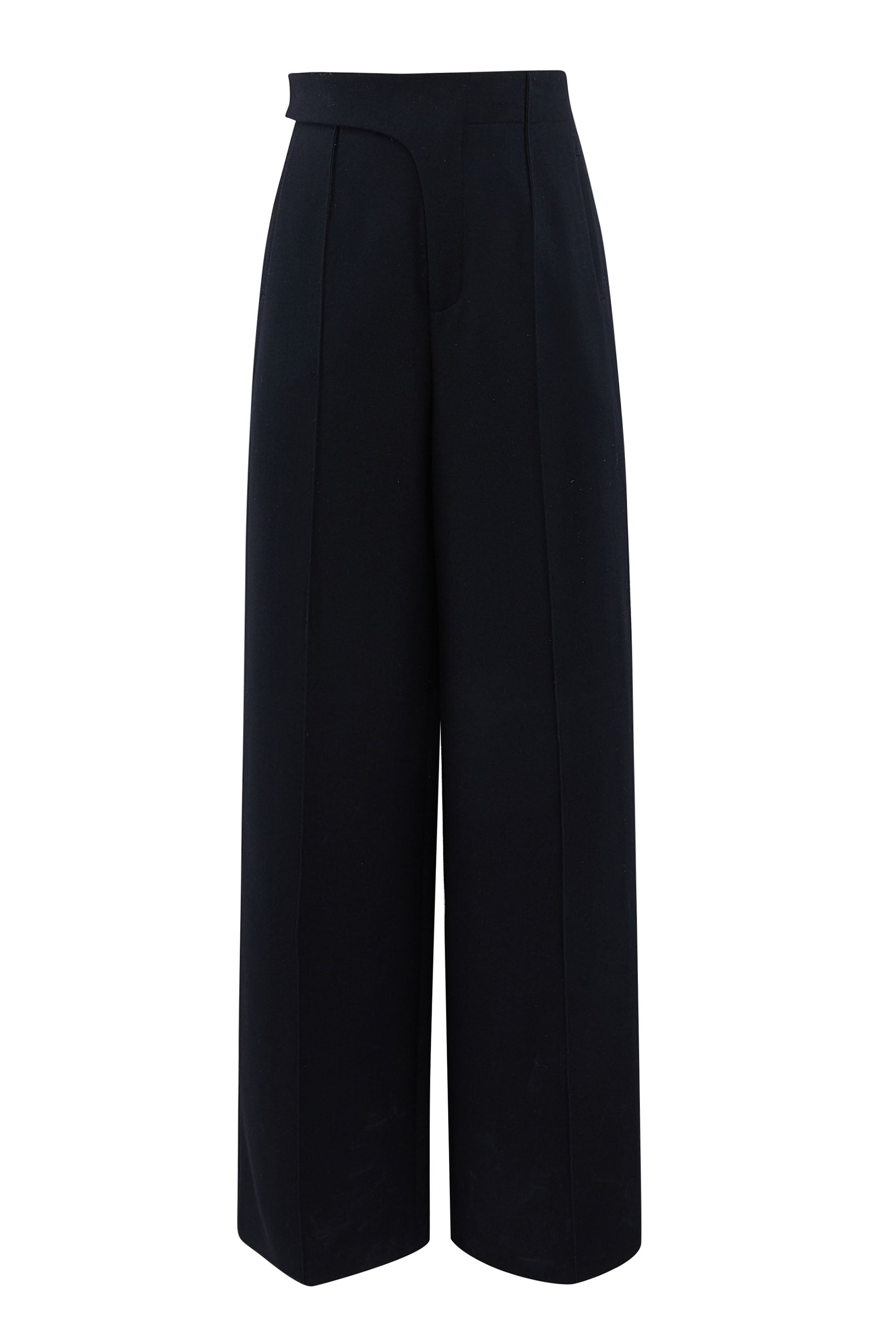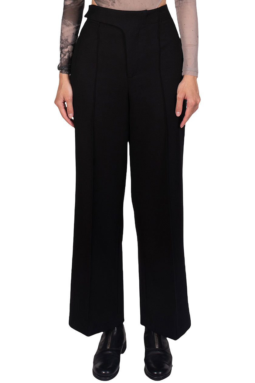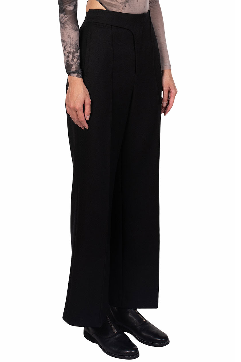Black Double-faced Wool Wide-leg Trousers from OUDE WAAG. Soft and light fabric. Wide leg.