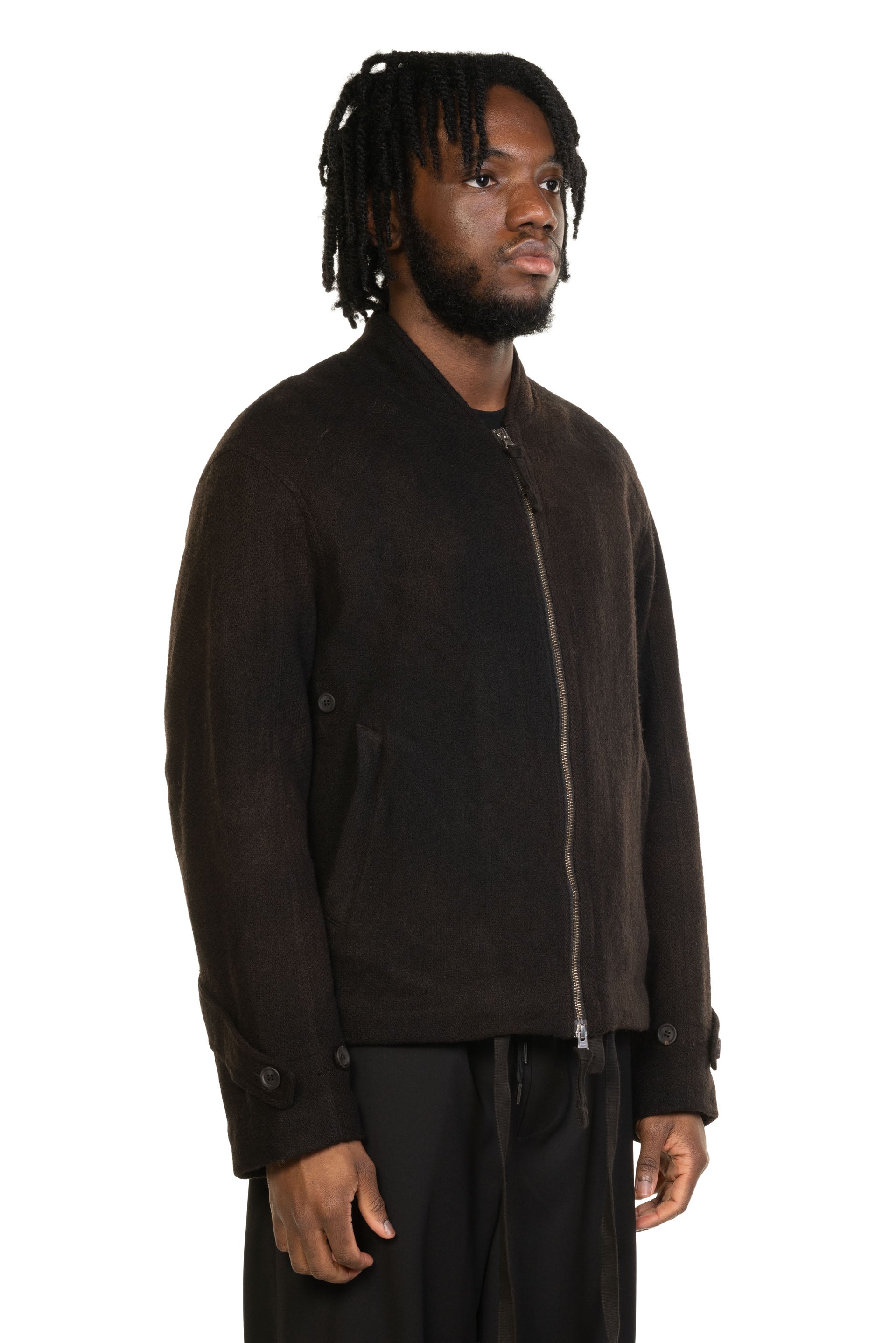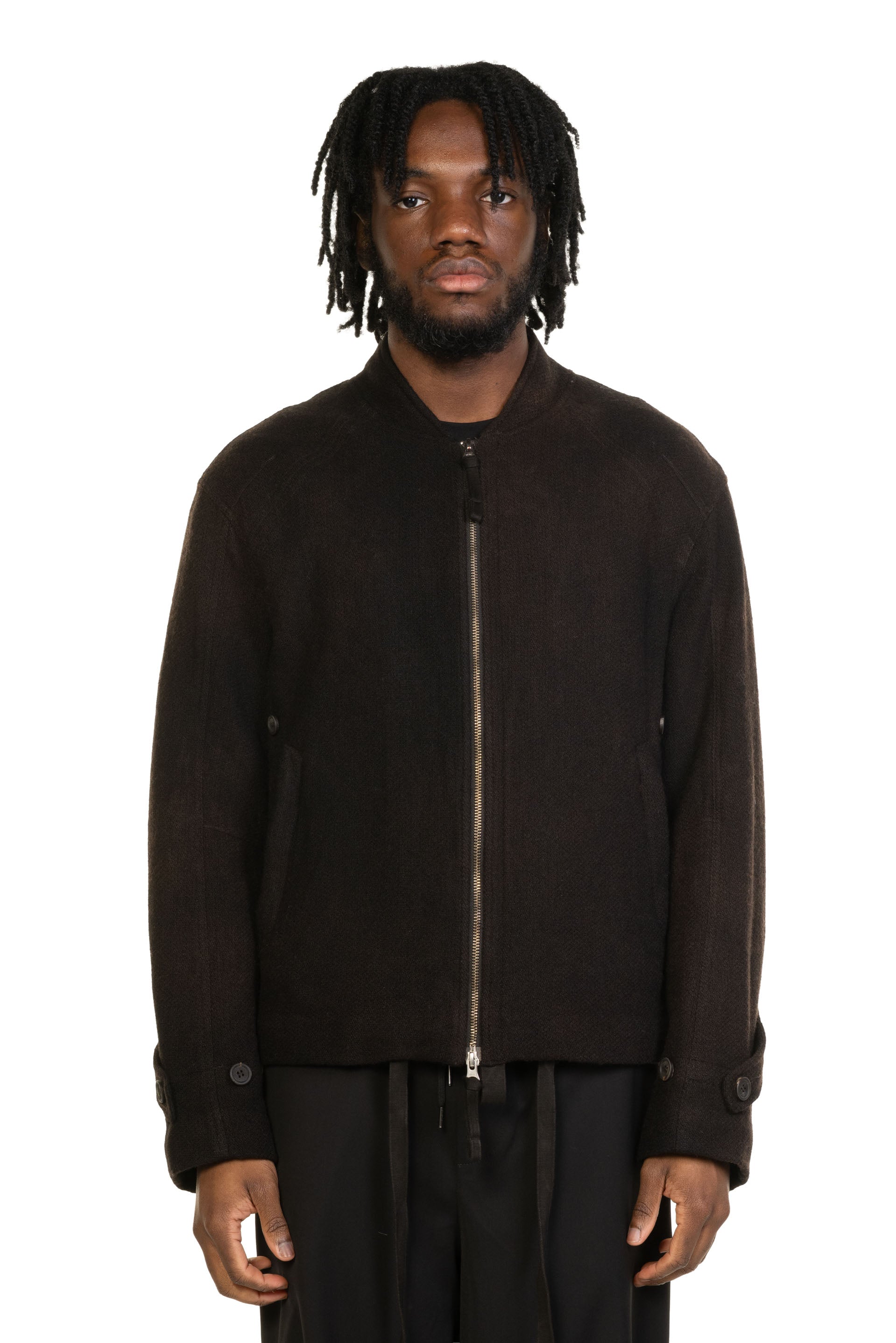 Attempt Wool Flight Jacket Brown. Wool flight jacket. Long sleeves. Regular collar. Two side pocket.