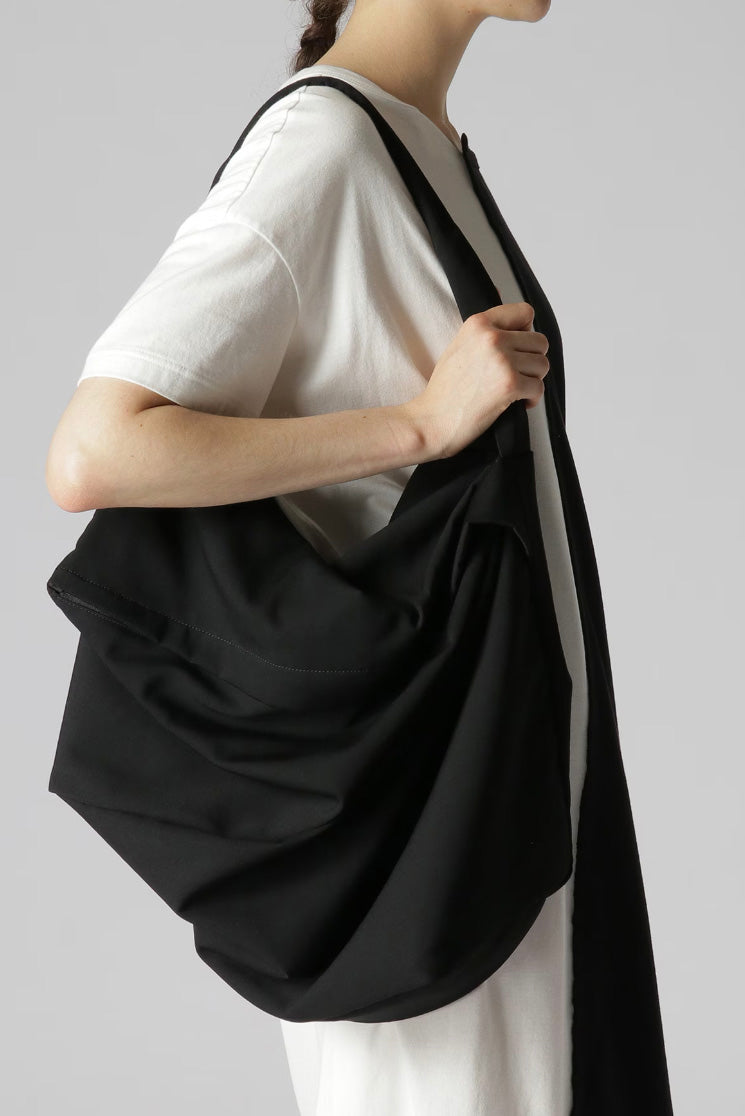 Y's polyhedral bag is made of the signature wool gabardine. The fabric is lightly wrinkled and crinkled during the finishing process to create the original texture of wool. The pattern of the combined polyhedrons is beautifully shaped and conforms to the body, making this item easy to match with any styling.