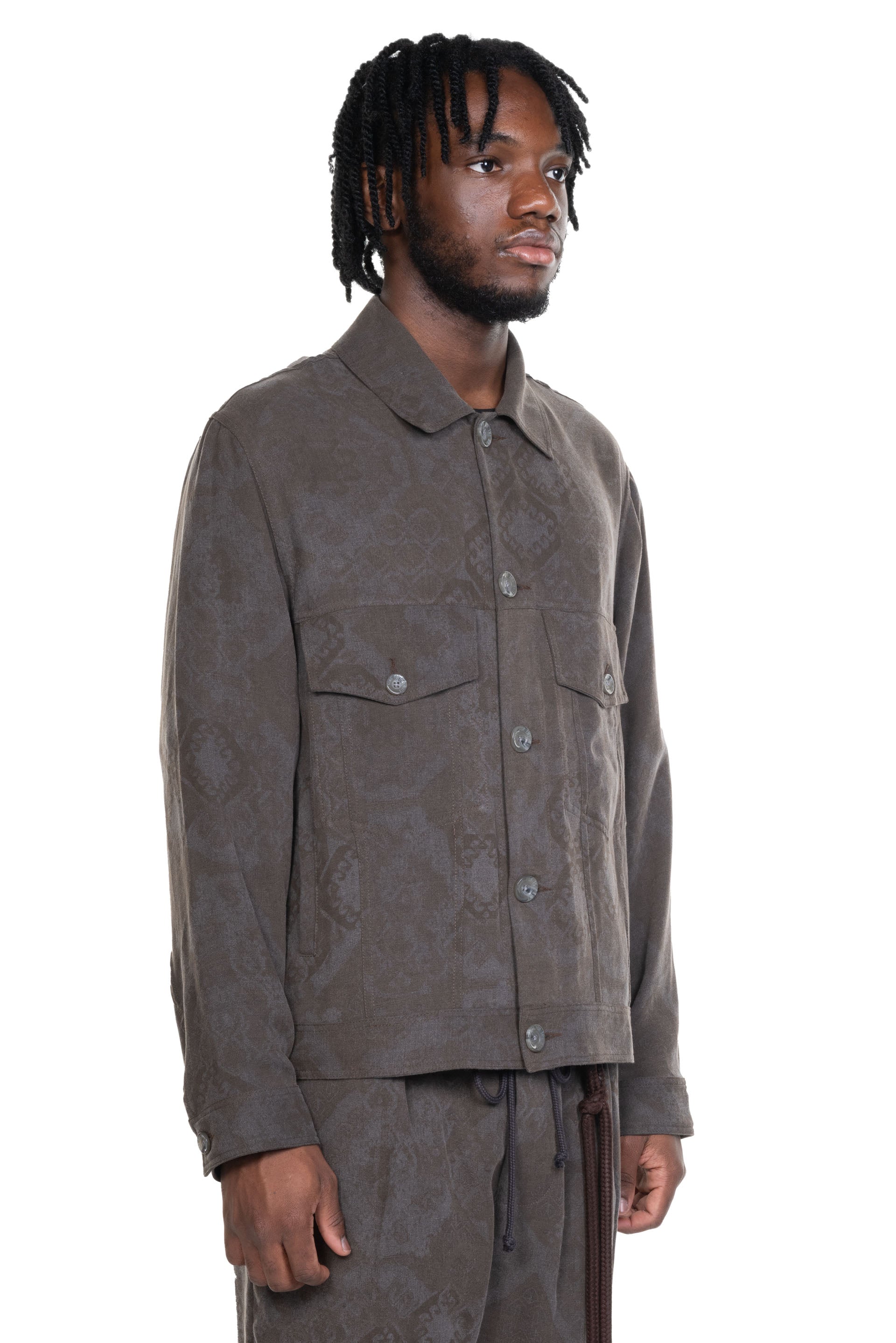 Founded in 2010 by childhood friends Melvin Tanaya and Lyna Ty, Song for the Mute is all about choosing materials carefully. The duo meticulously develops, samples, and selects fabrics in collaboration with artisanal Italian and Japanese mills before patterning their intimate, story-driven collections as seen with the Worker Jacket Taupe.