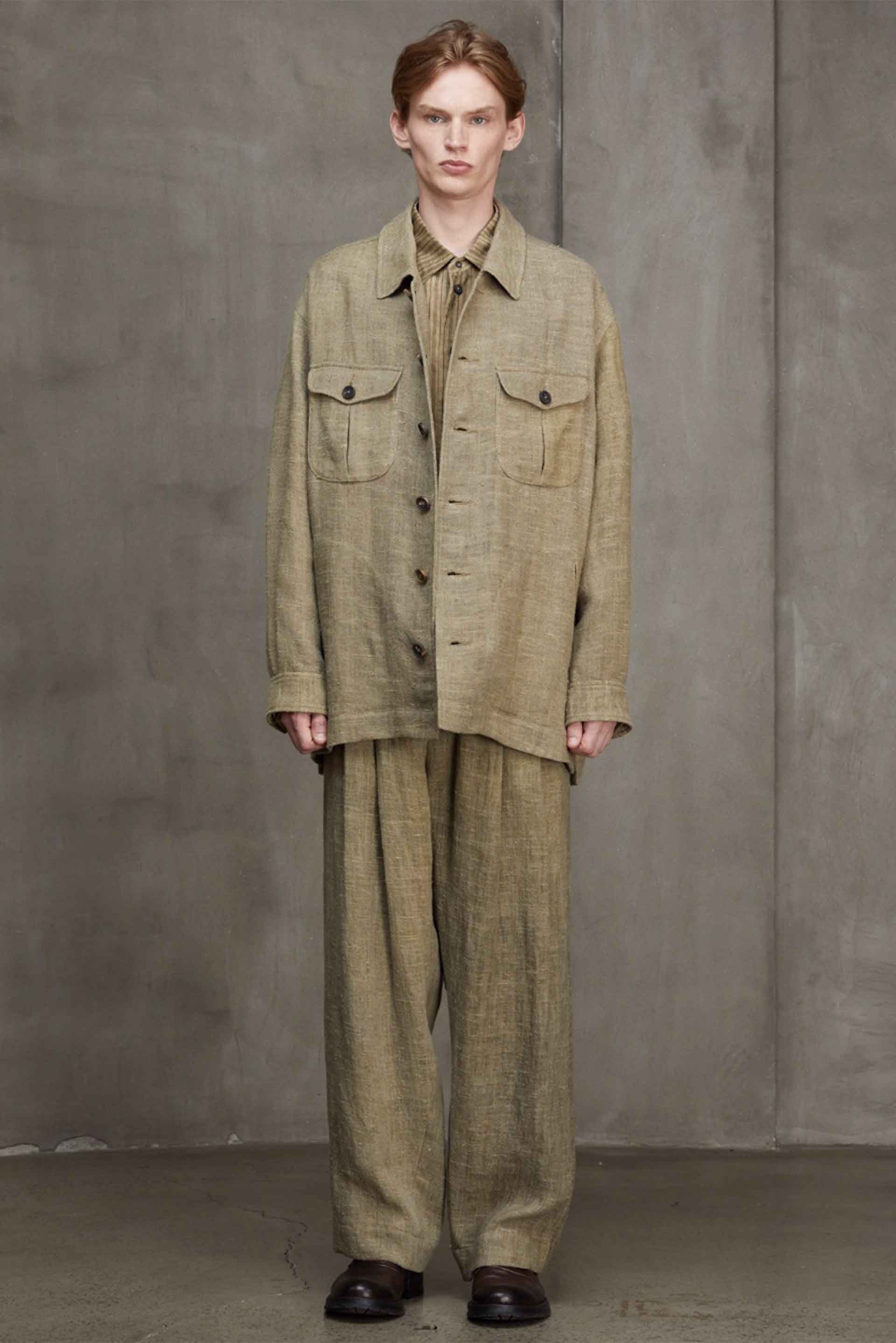 Referencing both century old Chinese and European silhouettes Ziggy Chen is a brand that is carving its own path within the industry as seen with the Workers Shirt Faded Olive. Ziggy Chen Interlude III capsule collection offers in between seasons fabric inspired by Ziggy Chen personal archives.