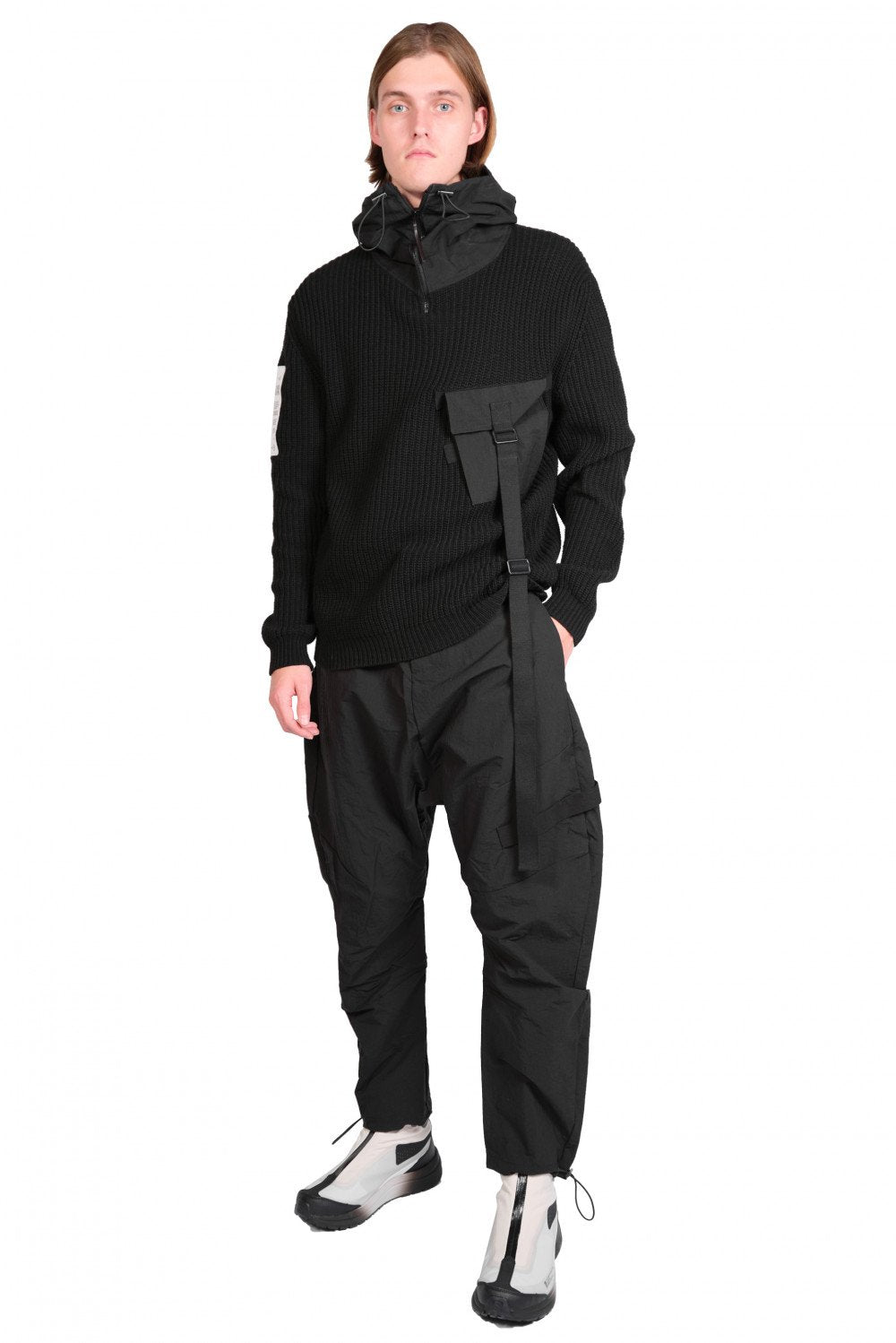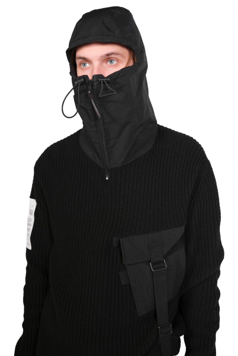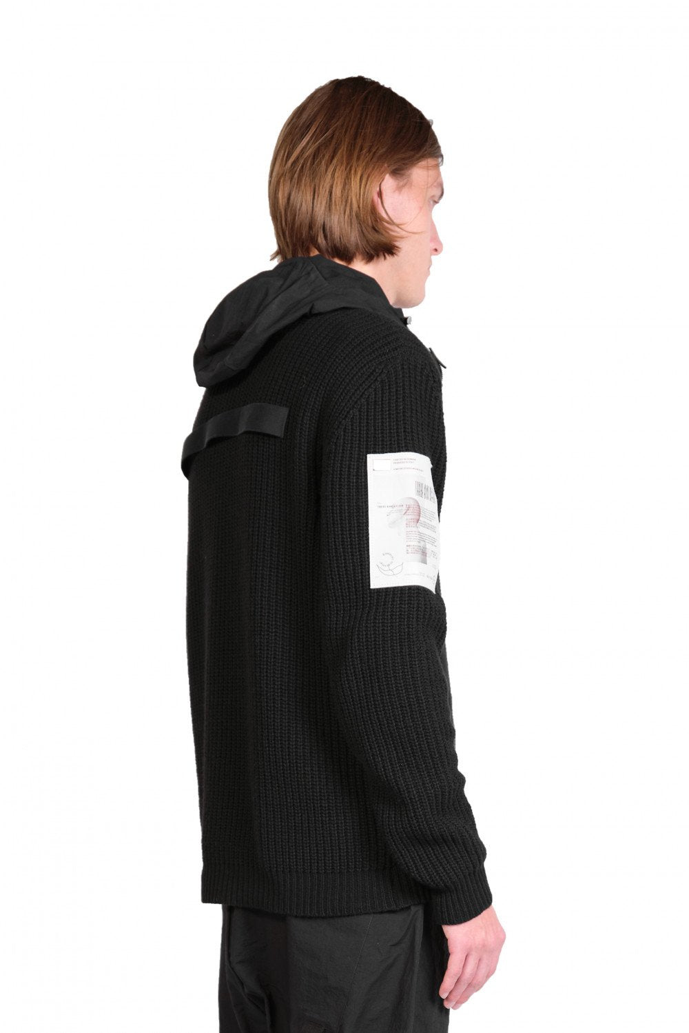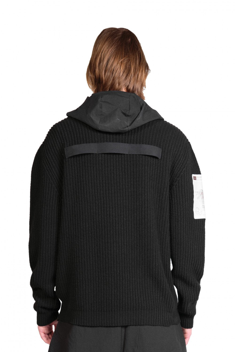 KN3_MAGLIE rib knit with woven hoodie detail in black UNI.