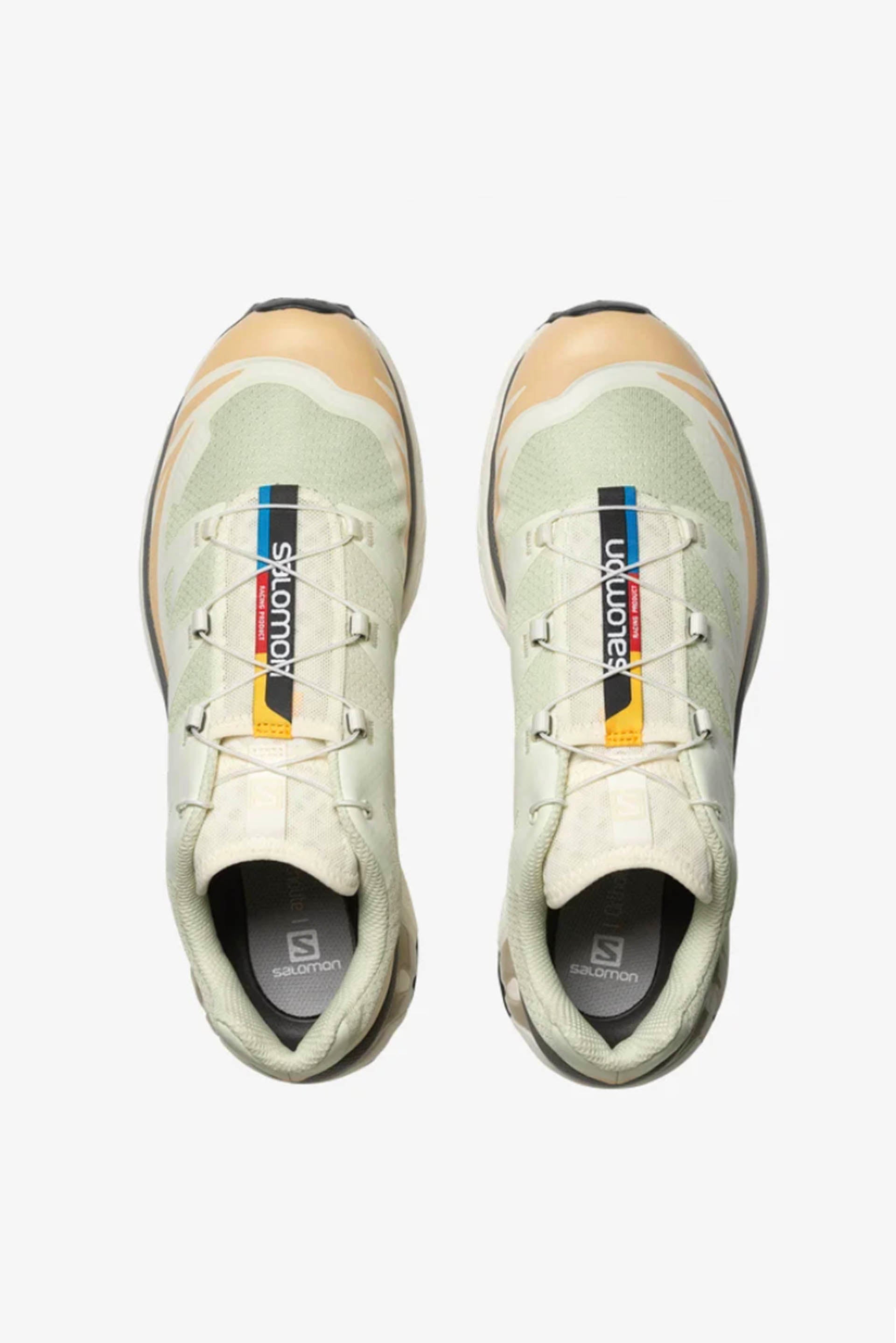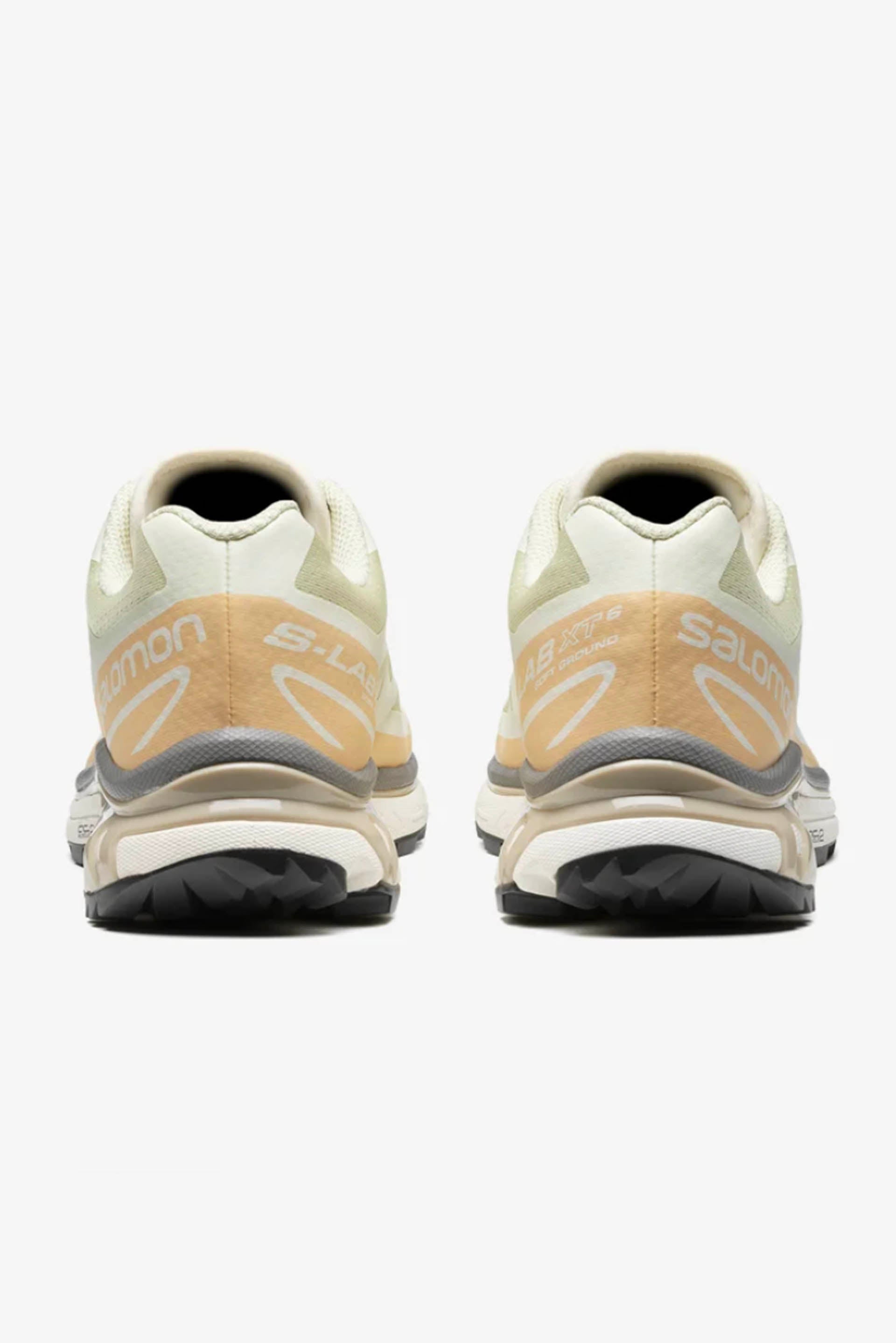 Salomon shoes seamlessly combine sports shoe technologies with modern city style. Performance-inspired design with style from the heart of the city. As well as appealing to outdoor adventurers, their hiking boots and runners are suited to make a bold fashion statement as the brand has delved into high-end fashion in recent years as seen with the XT-6 Aloe Wash / Hazelnut / Feather Gray.