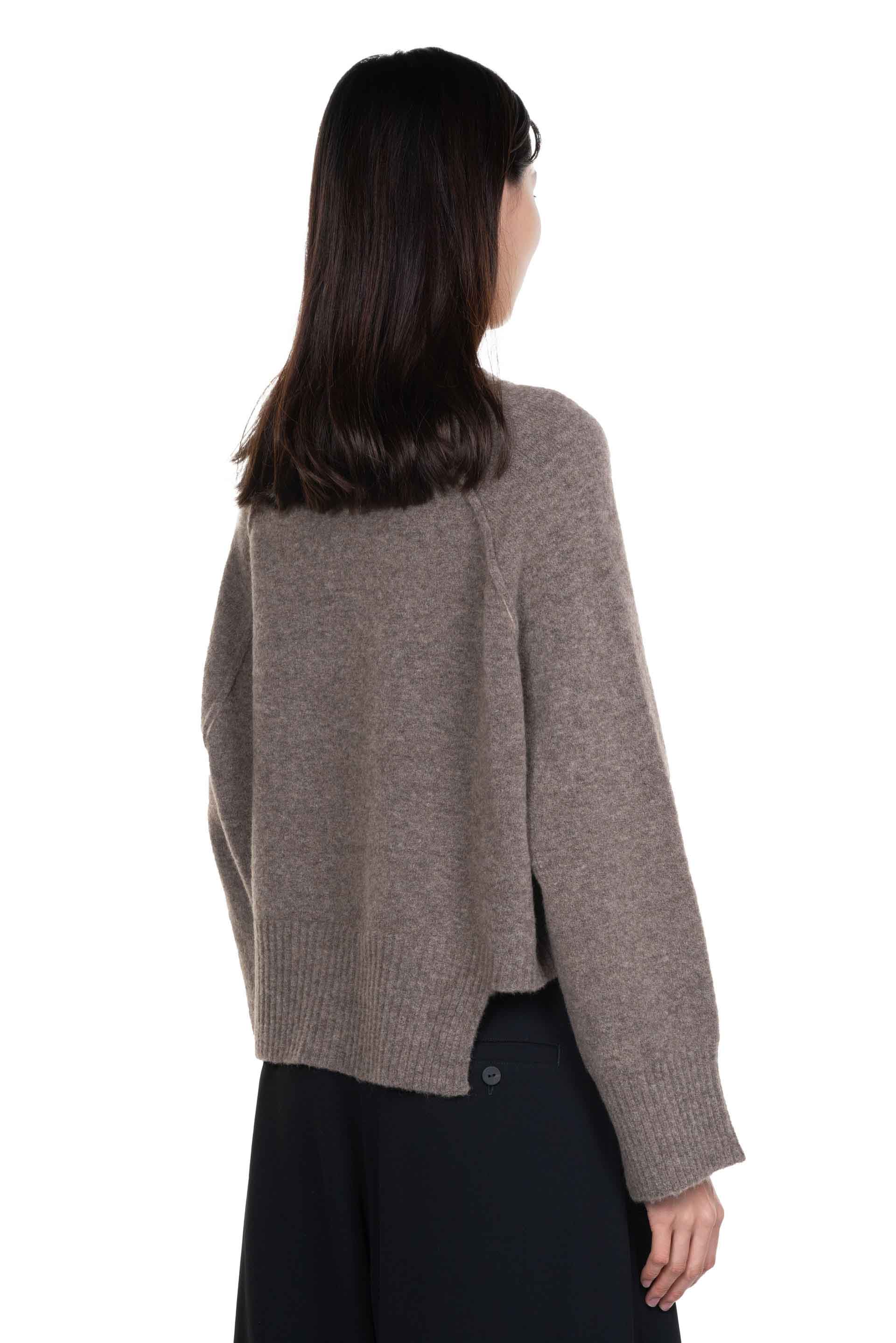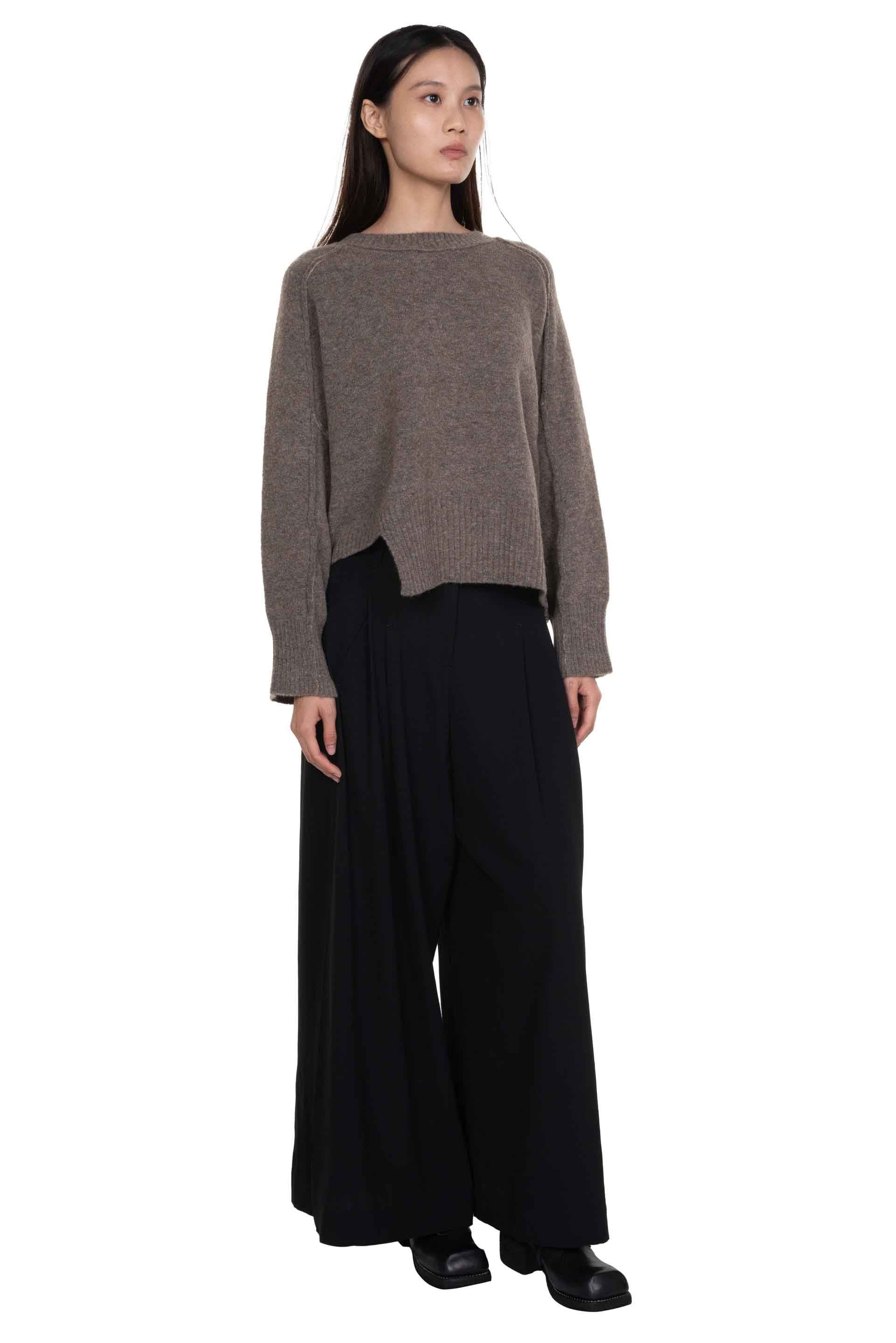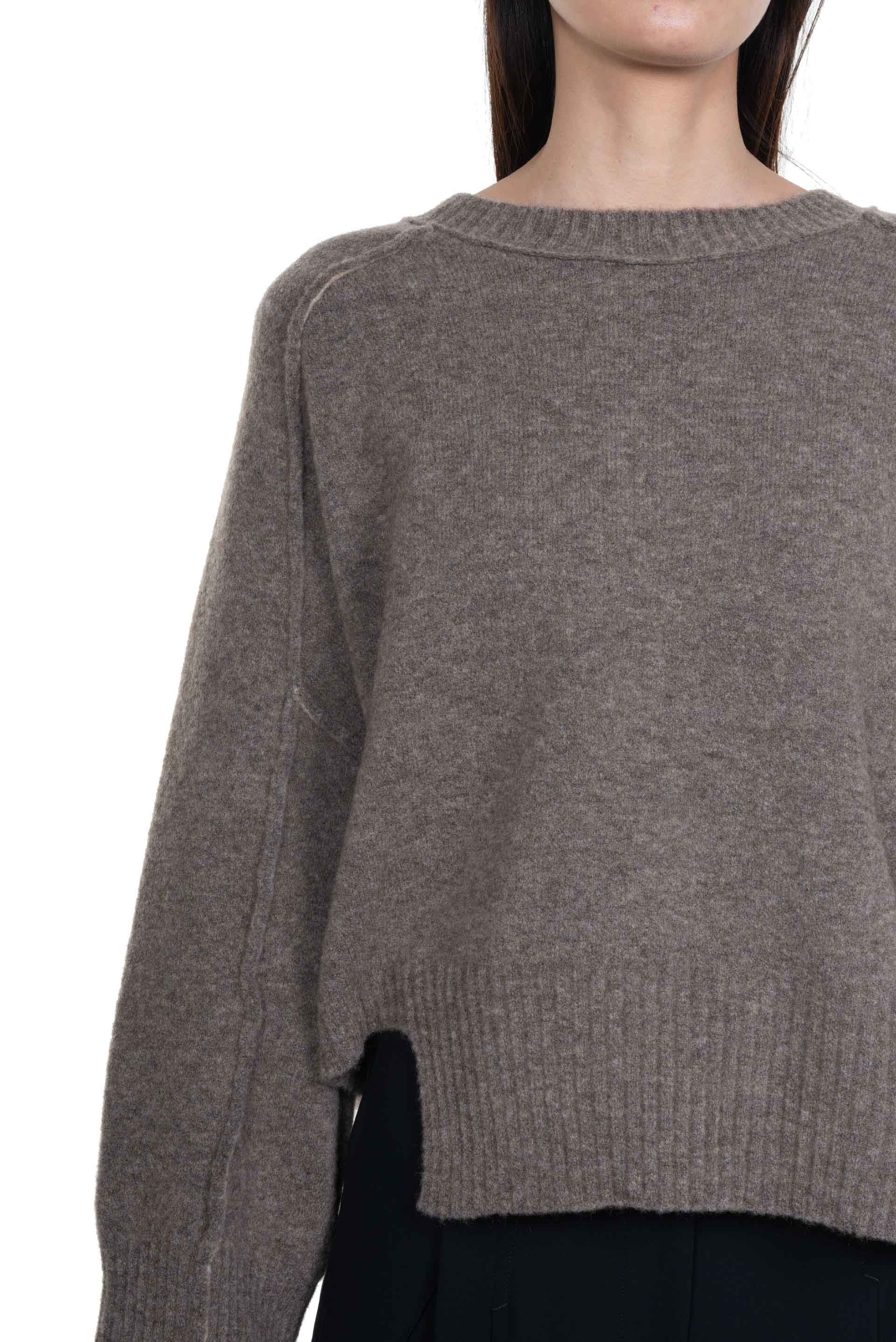 Taupe Crewneck from Isabel Benenato in Taupe. Long sleeves. Round neck. Boxy fit. Soft and light Yak knit. Slit at side.