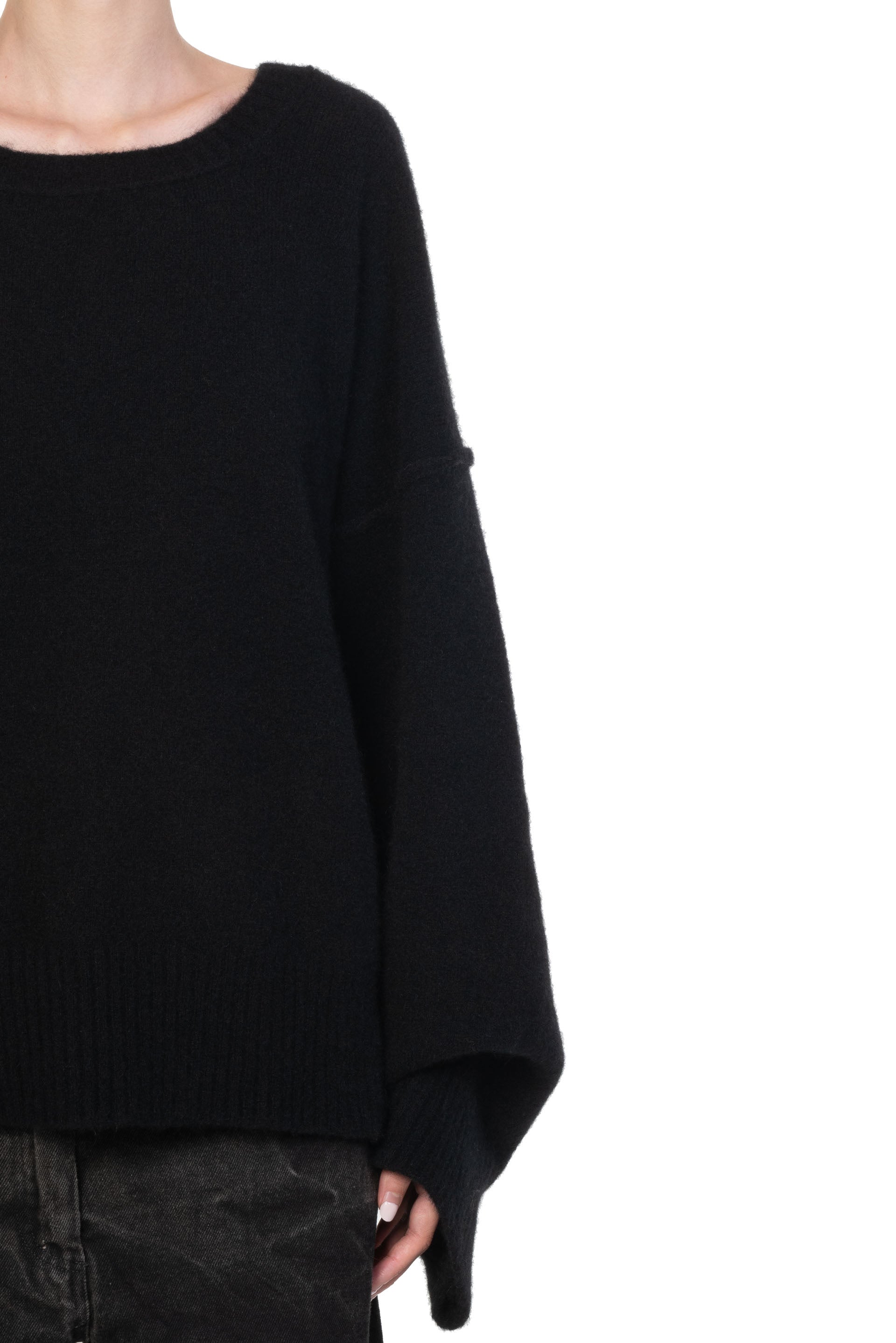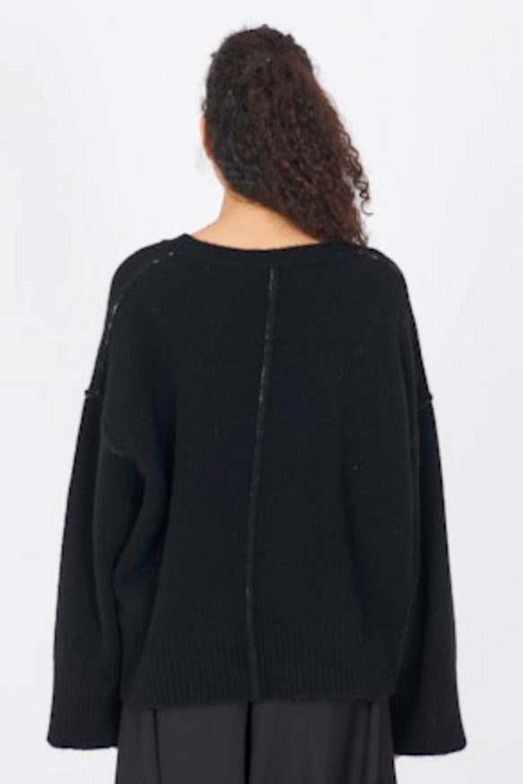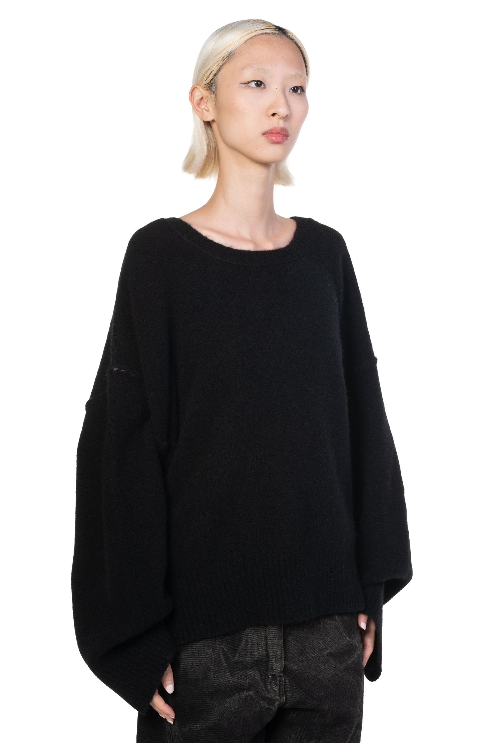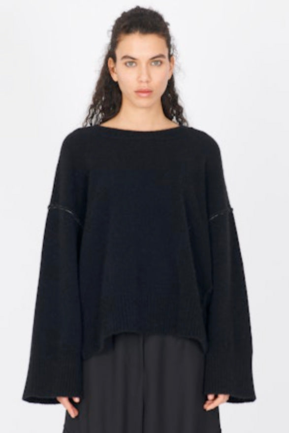 Isabel Benenato is committed to sustainability and makes every effort to minimise its environmental footprint. All of the collection are manufactured in Italy with the intention to save and support her local community. Her design is based on an imperfect perfection that encompasses the human being itself as seen with Yak Boxy Sweater Black.
