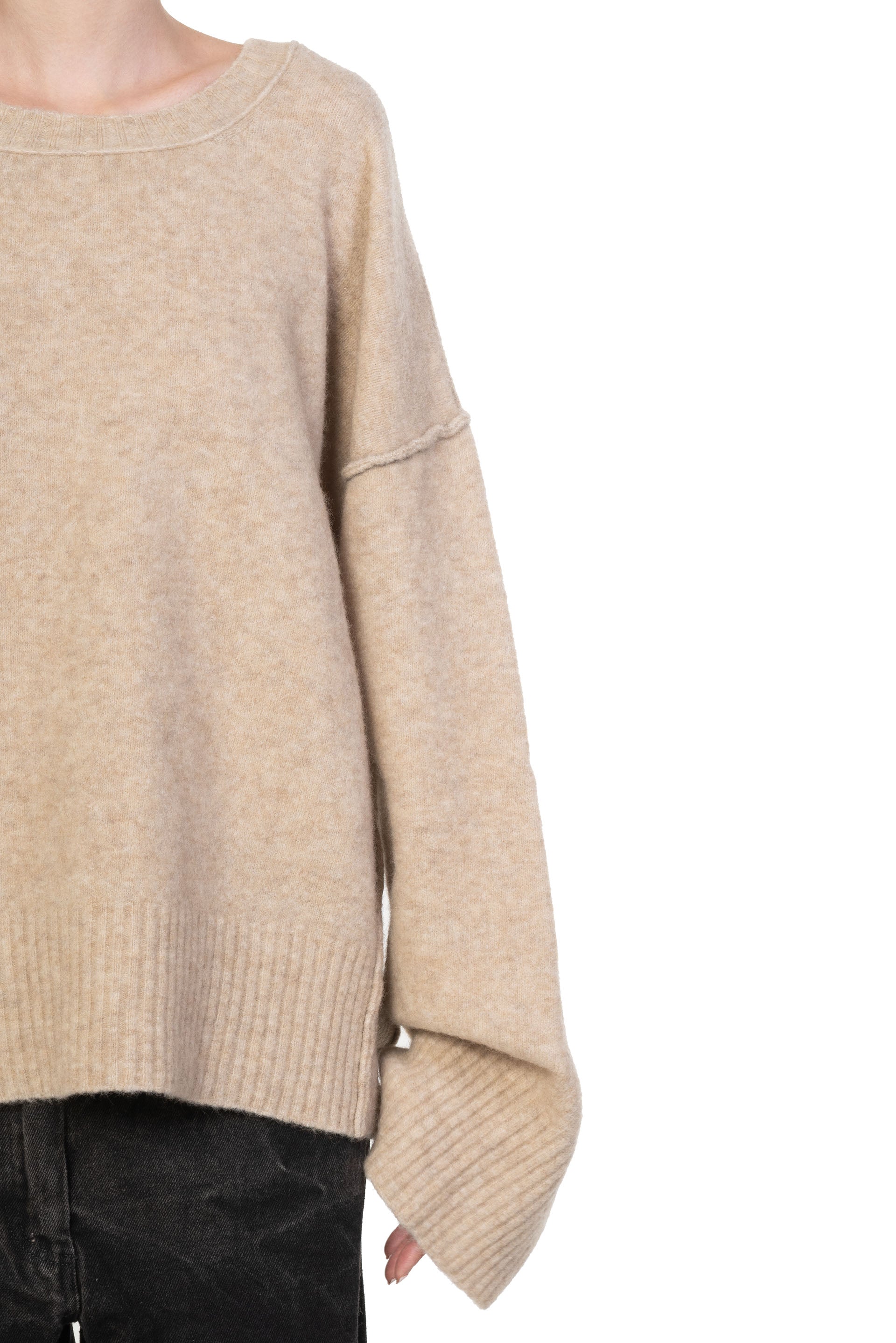 Isabel Benenato is committed to sustainability and makes every effort to minimise its environmental footprint. All of the collection are manufactured in Italy with the intention to save and support her local community. Her design is based on an imperfect perfection that encompasses the human being itself as seen with Yak Boxy Sweater Natural.