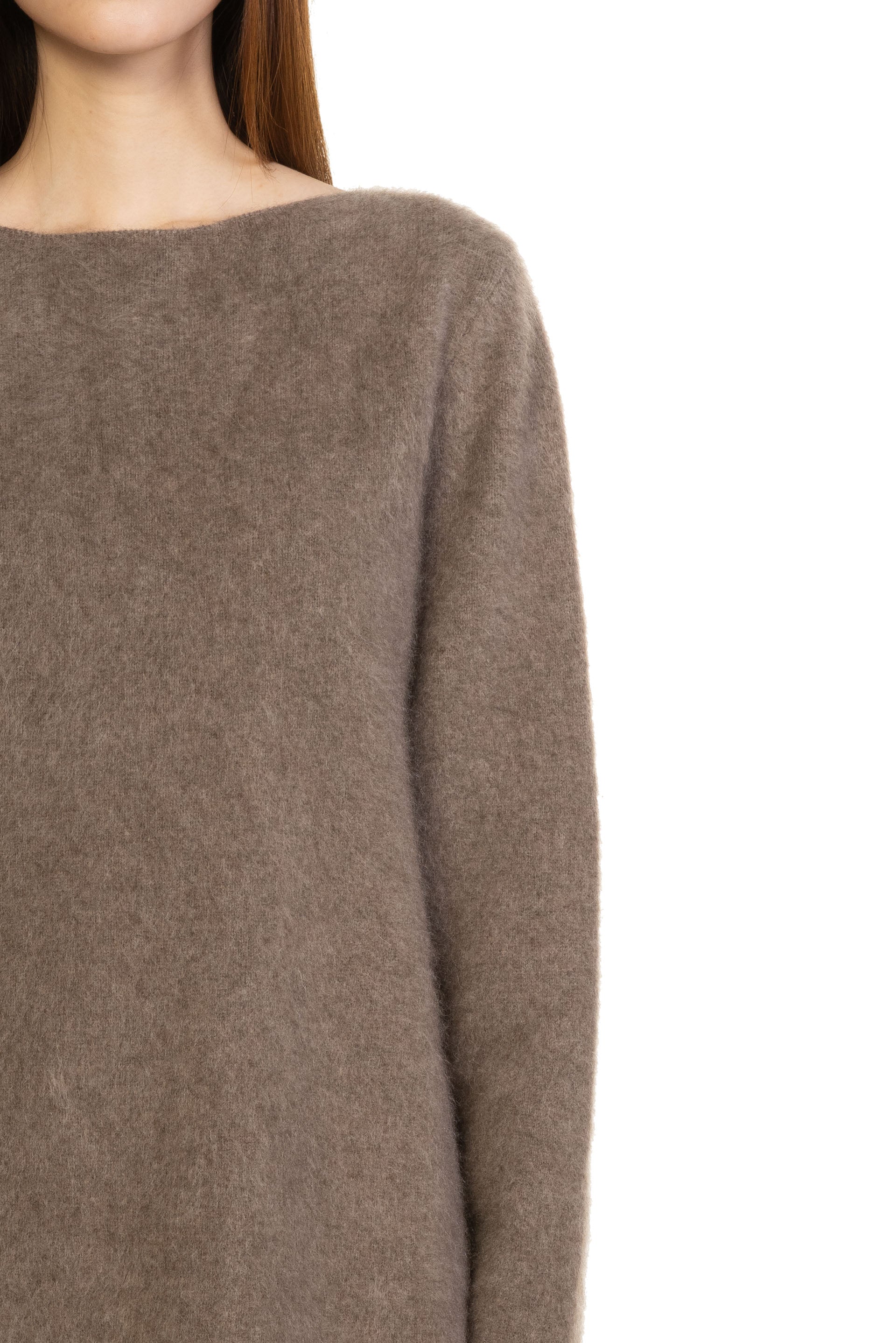 Swaying/knit Yak Fleece Pullover in Grey Brown. Long sleeves. Scoop neck. Relaxed fit with slightly dropped shoulders. Soft yak fabric.
