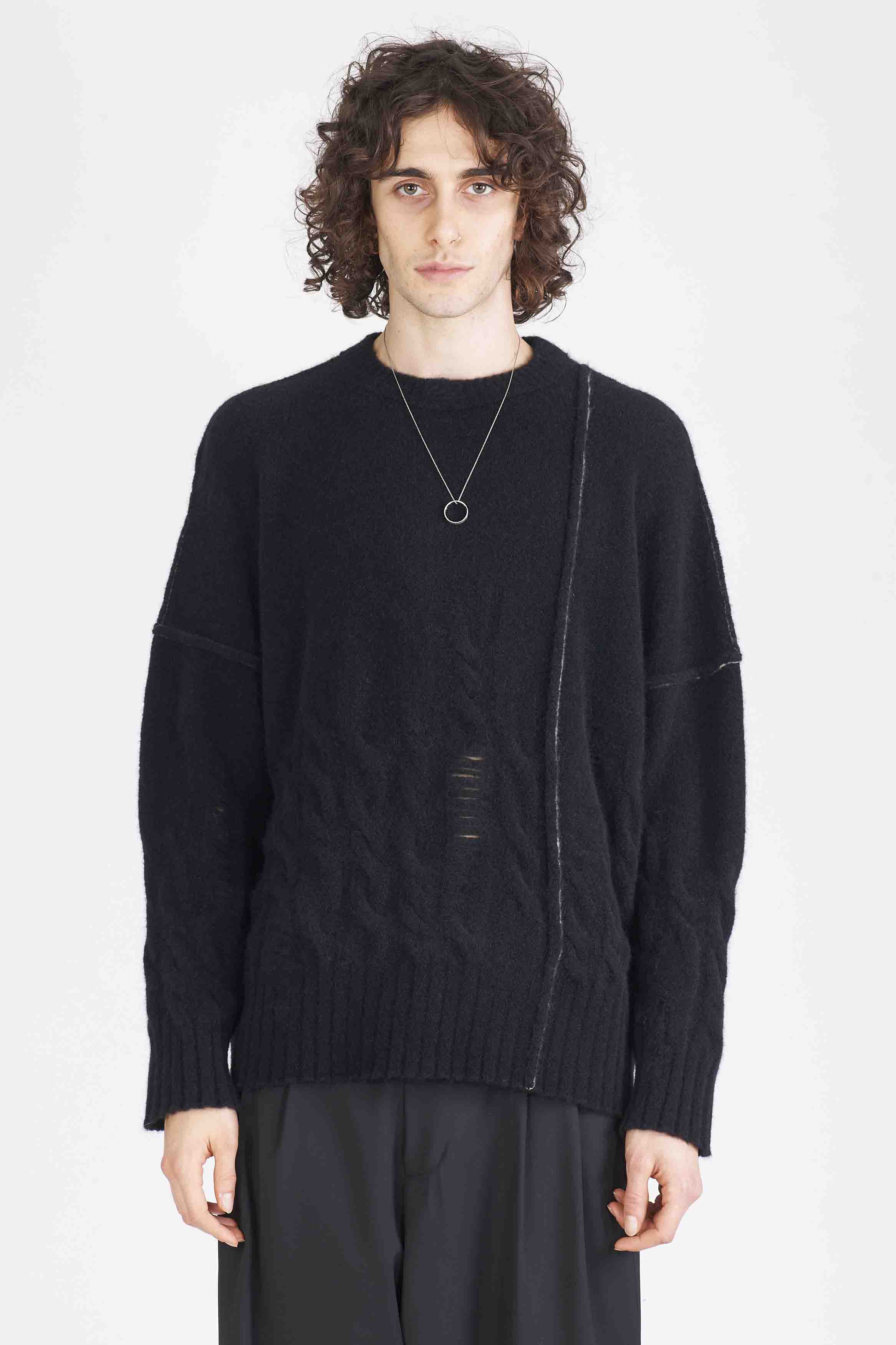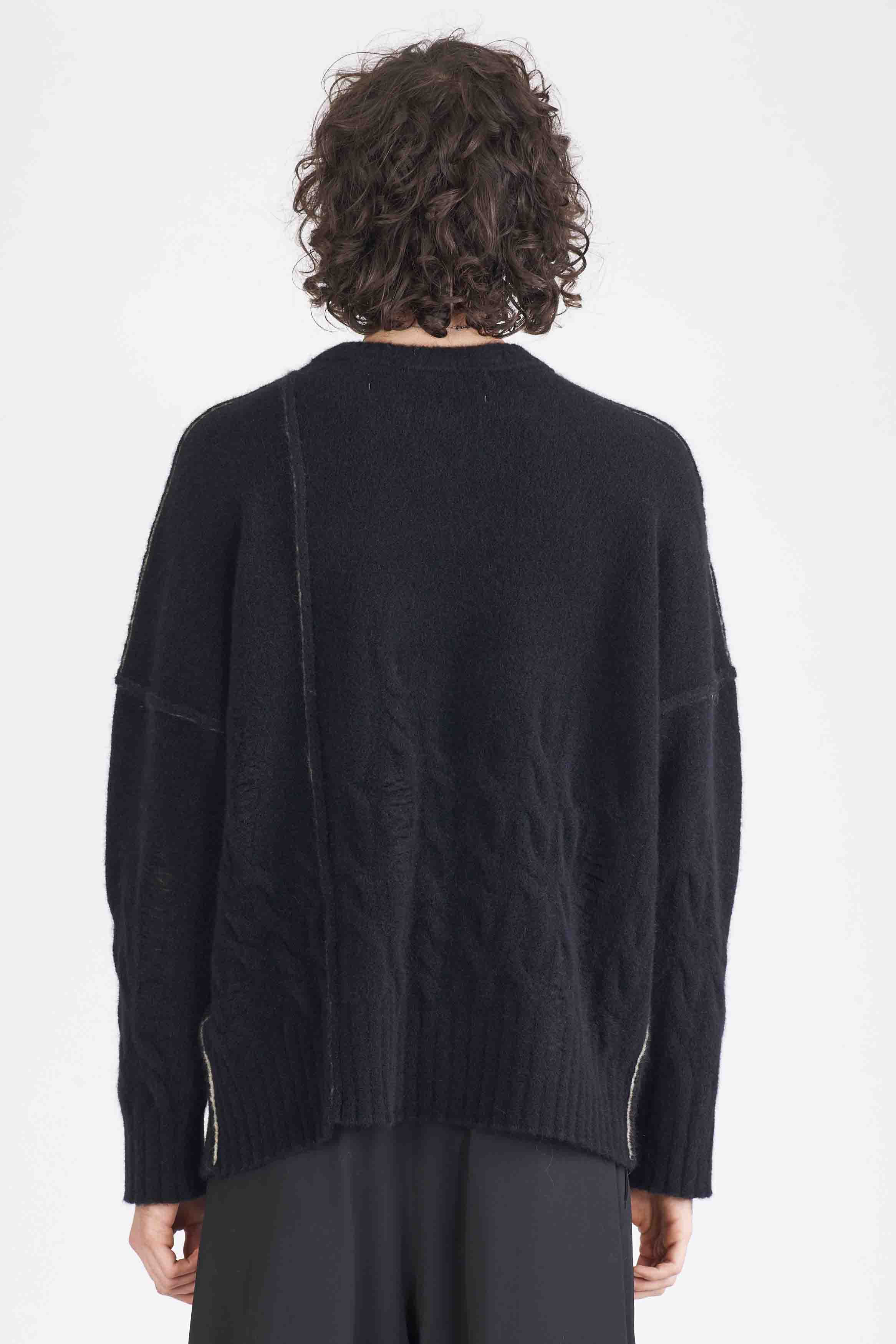 Signature Crewneck knitwear from Isabel Benenato. Long sleeves. Round neck. Boxy fit. Soft and Light knit. Signature Contrast seams detailing throughout. Distressed details throughout.