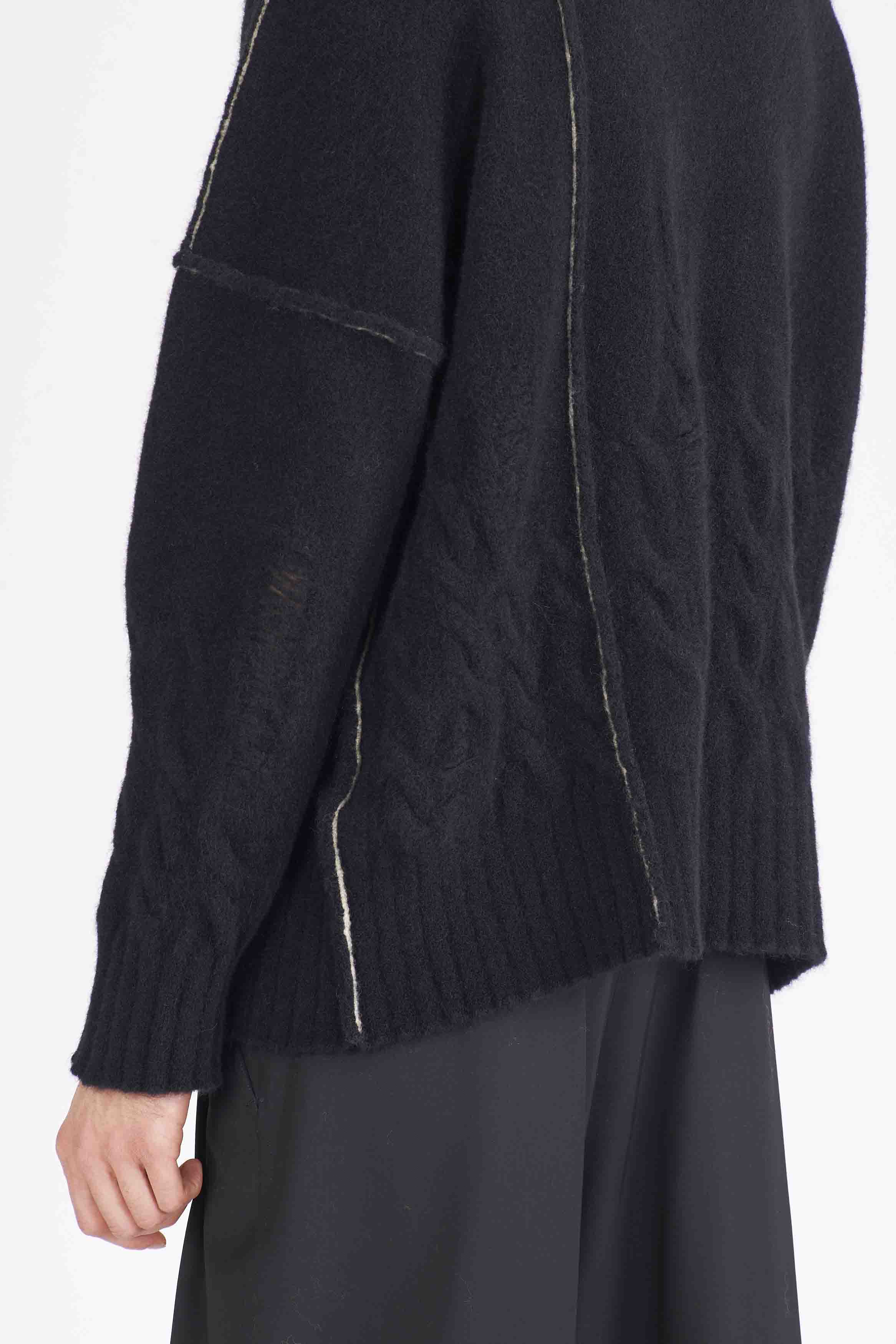 Isabel Benenato is committed to sustainability and makes every effort to minimise its environmental footprint. All of the collection are manufactured in Italy with the intention to save and support her local community. Her design is based on an imperfect perfection that encompasses the human being itself as seen with the Yak Oversized Contrast Stitching Sweater.