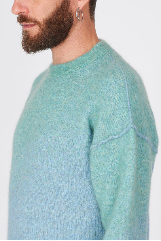 Isabel Benenato is committed to sustainability and makes every effort to minimise its environmental footprint. All of the collection are manufactured in Italy with the intention to save and support her local community. Her design is based on an imperfect perfection that encompasses the human being itself as seen with the Yak Round Neck Jumper Degrade Colour Turquoise.
