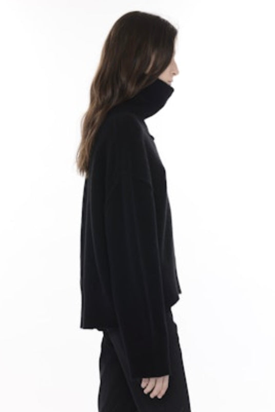 Isabel Benenato is committed to sustainability and makes every effort to minimise its environmental footprint. All of the collection are manufactured in Italy with the intention to save and support her local community. Her design is based on an imperfect perfection that encompasses the human being itself as seen with Yak Turtle Neck Knit Black.