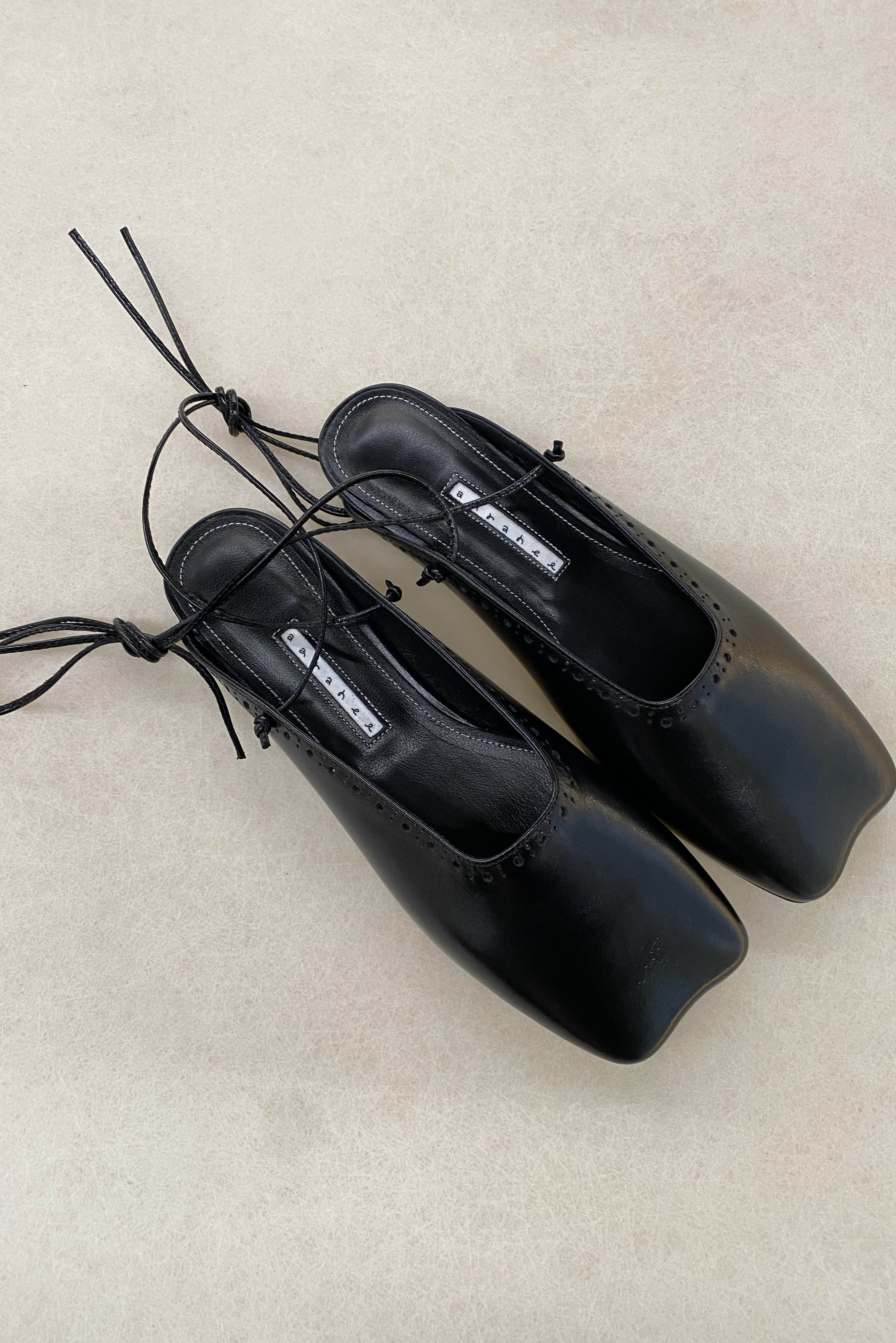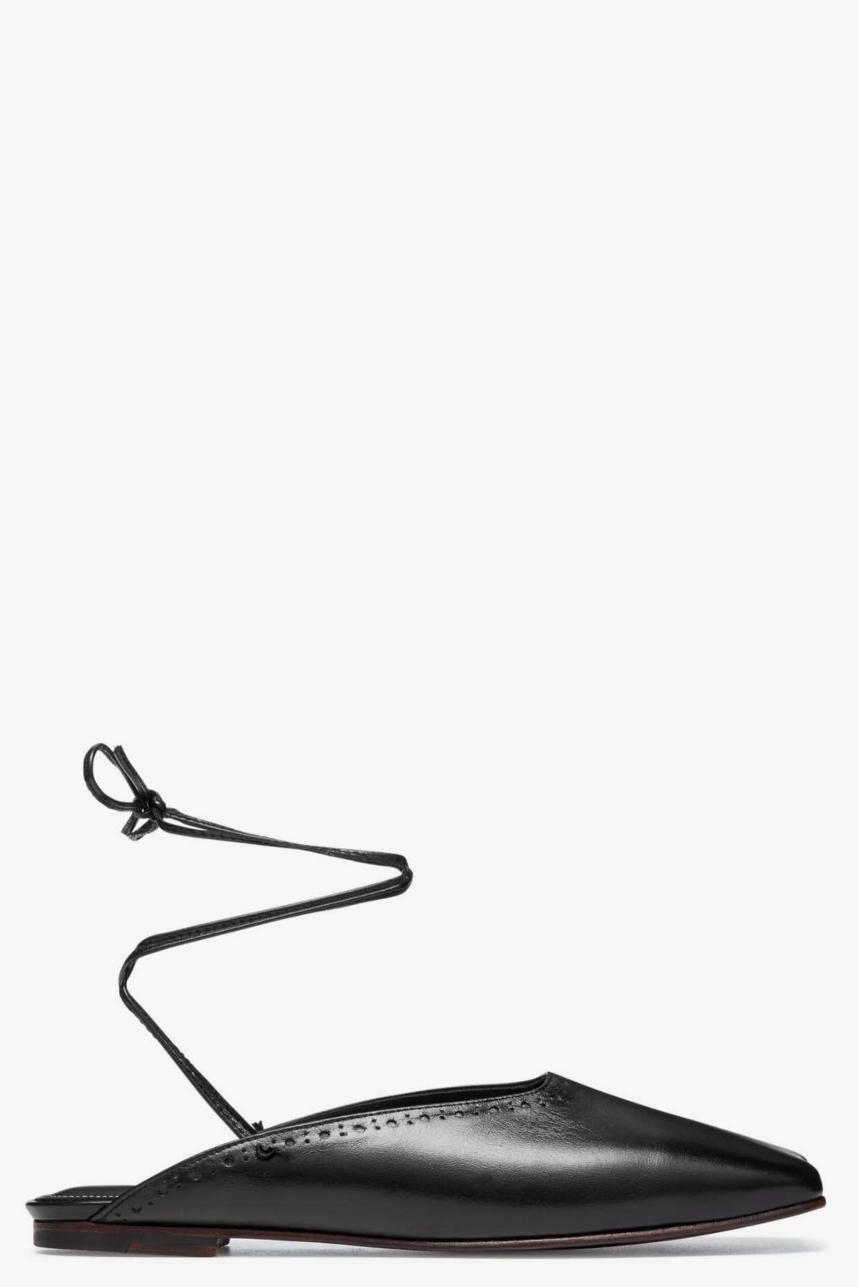 aarahee flat slides shoes. Flat mule silhouette. Brogue detailing. Detachable ankle straps.