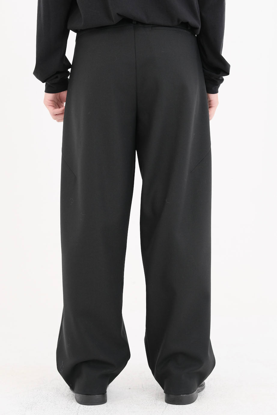 ATTEMPT reconstructs different styles and elements to create a new aesthetic system. By taking a more experimental approach to creation and production, which involves an understanding of the past and the current form of society, Attempt is creating an aesthetic form that is anchored in the present but different from it. It must ultimately be a product that cannot be defined as seen with the Zip Pocket Trousers Black.