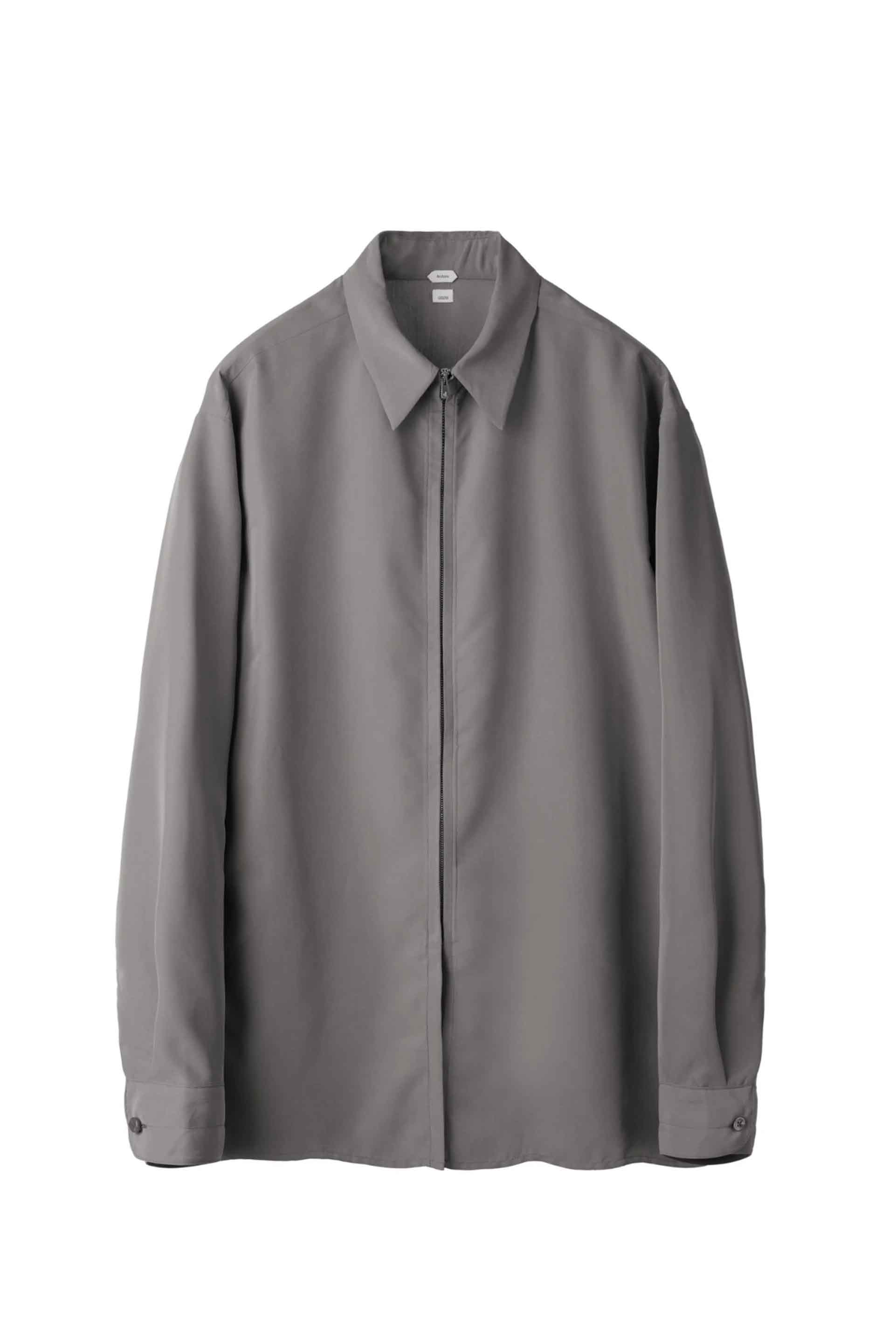 Soft, smooth texture. Standard straight collar. Hidden YKK EXCELLA® zip slider on front. Button closure on cuffs. Standard fit. Button from Japan. Fabric from South Korea.