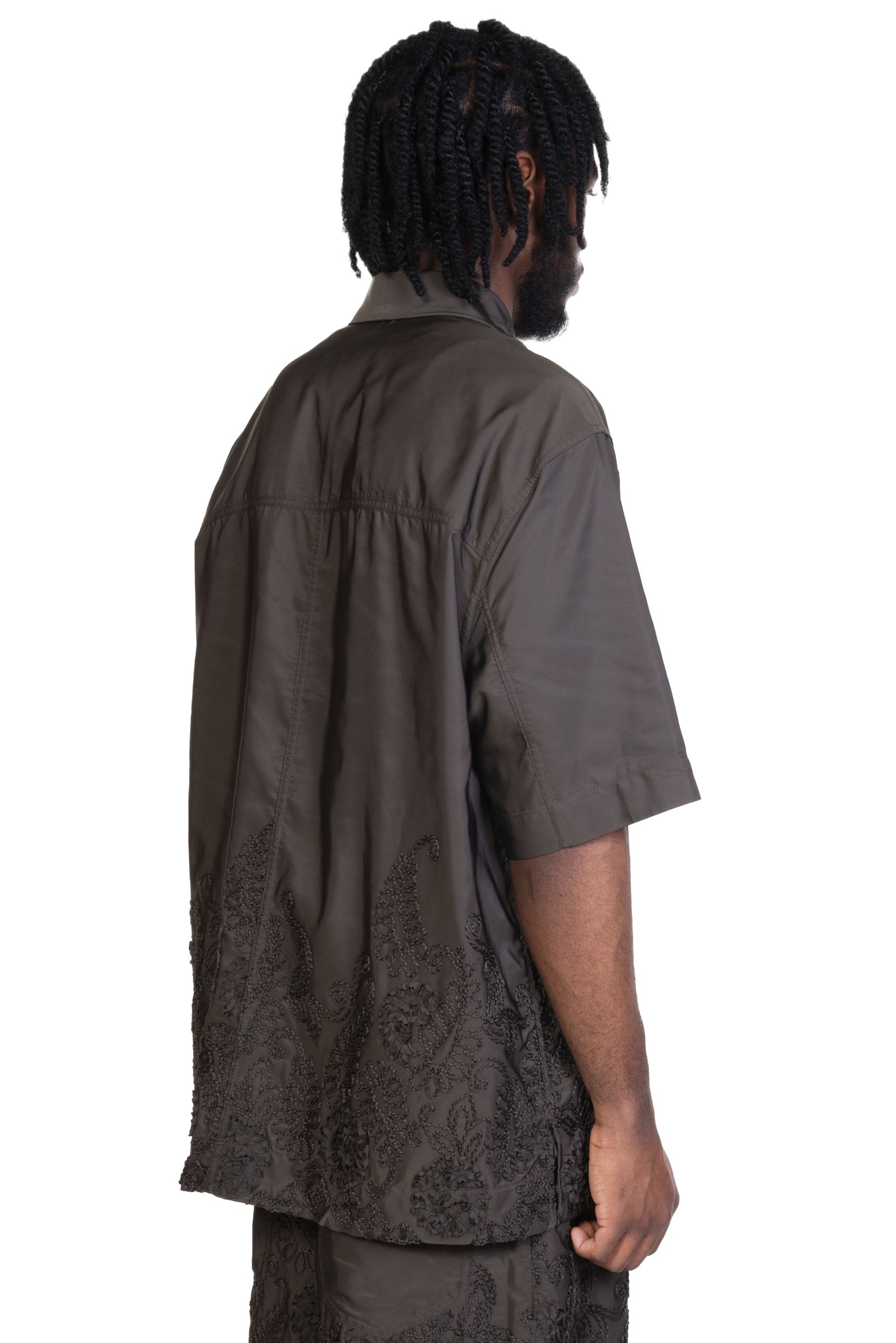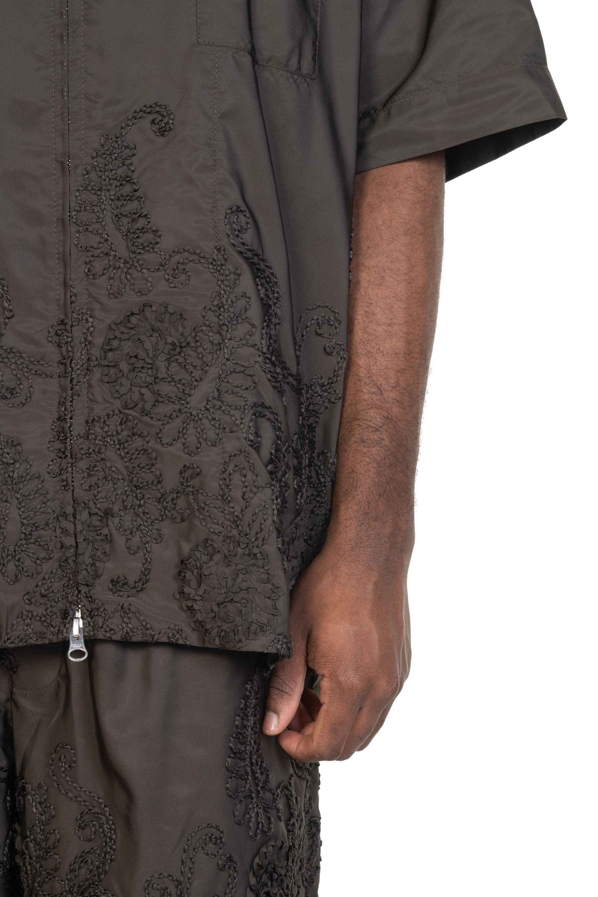 Song for the Mute short sleeves shirt. Front zip closure. Double zip. Regular collar. Pocket at chest. Seasonal embroideries details throughout. Lightweight and comfortable. Boxy fit.